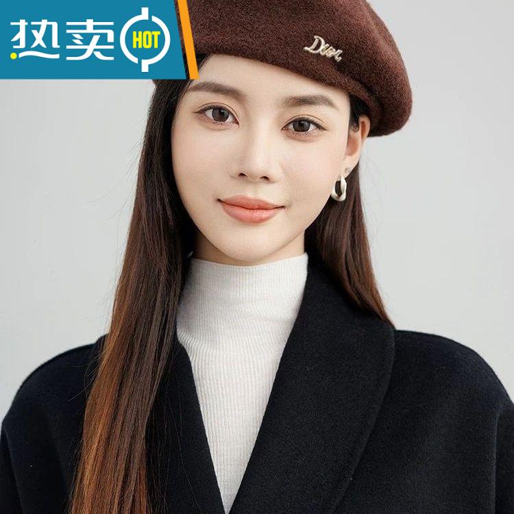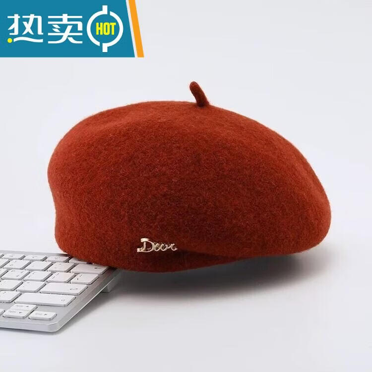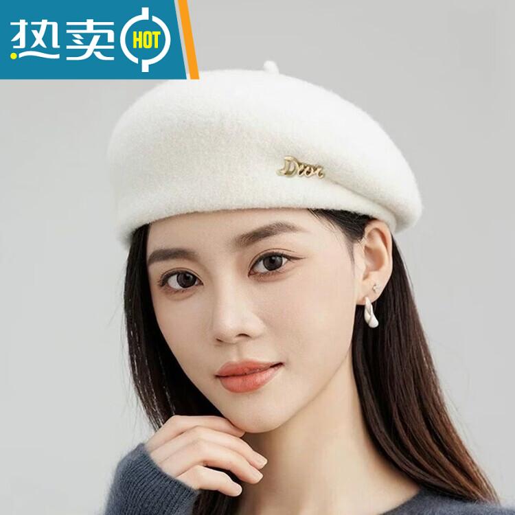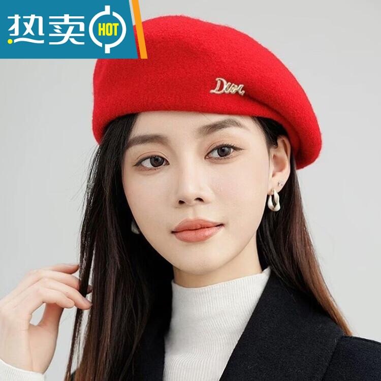 Yusenyi beret women's hat women's fashionable style wool blended white and temperament autumn and winter style beret for women Mao Bei big red one size 55-58