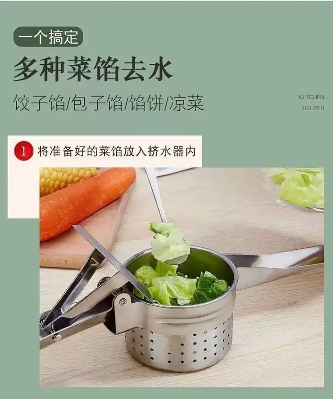Yusenyi Vegetable Water Squeezer Stainless Steel Household Juicer Squeezing Juice Vegetable Machine Dehydrated Dumpling Stuffing Manual Vegetable Water God Stuffing All-steel thickened version (diameter 9cm) only with holes on the bottom