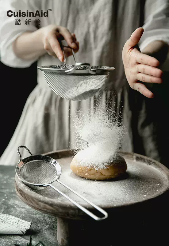 Yusenyi Flour Xinyi Japanese-style overall 304 stainless steel handheld tea set Cool sieving thickened 30 mesh sieve powdered sugar sieve 14cm large sieve