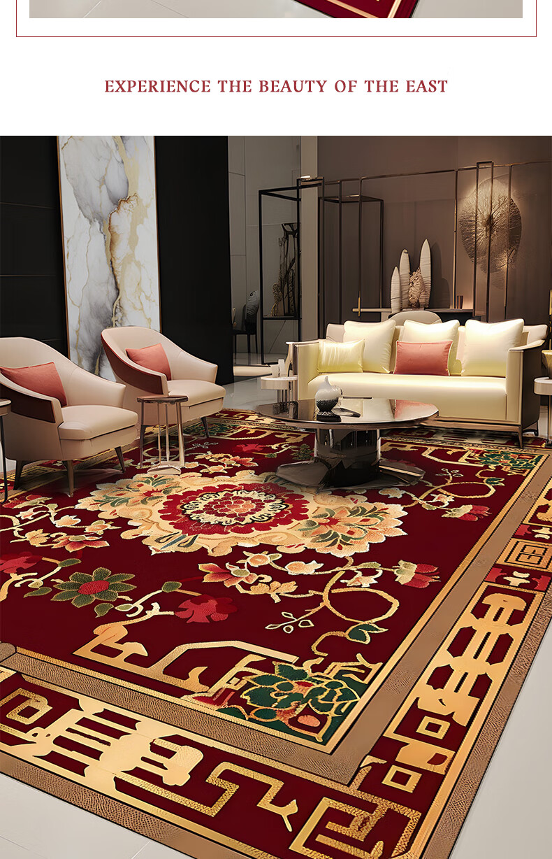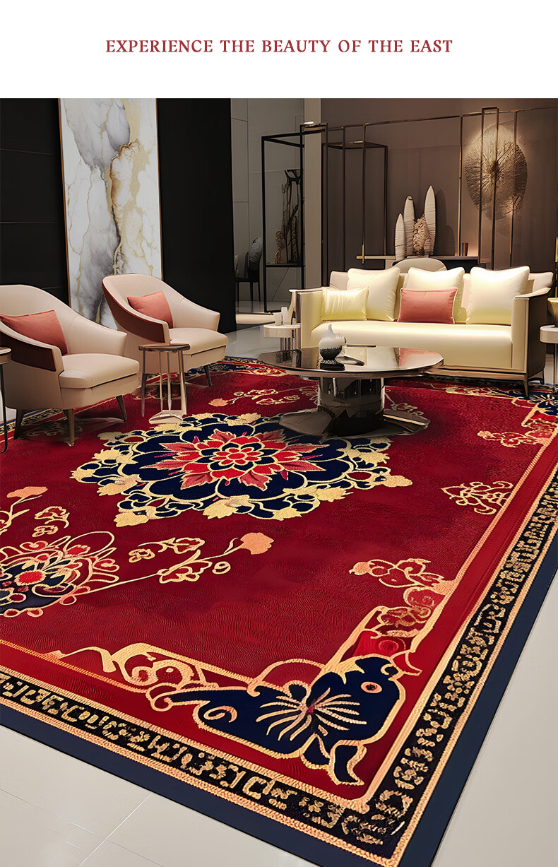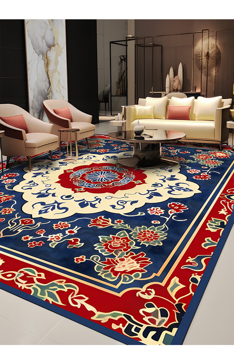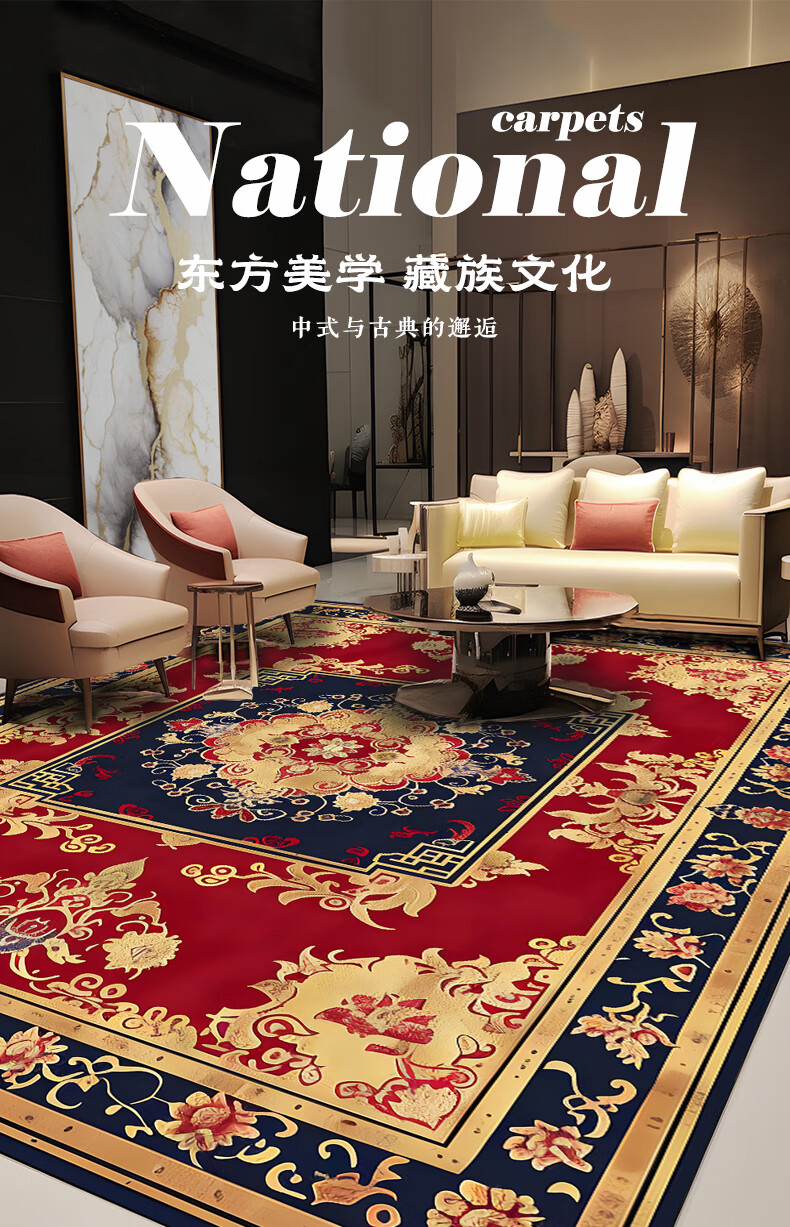 Junyuexi Tibetan carpet living room ethnic style Tibetan coffee table carpet Chinese style villa carpet large area full bedroom floor mat Tibetan carpet-02 300cm*500cm (crystal velvet)