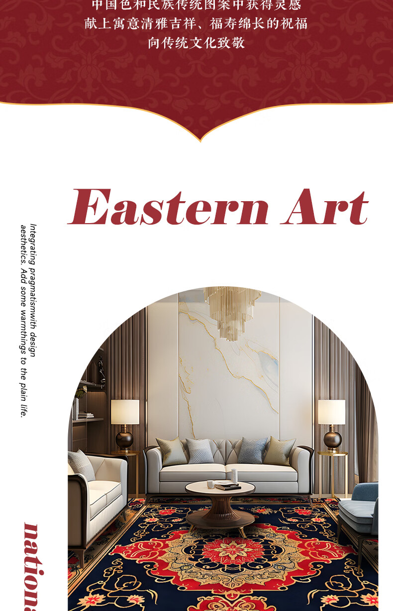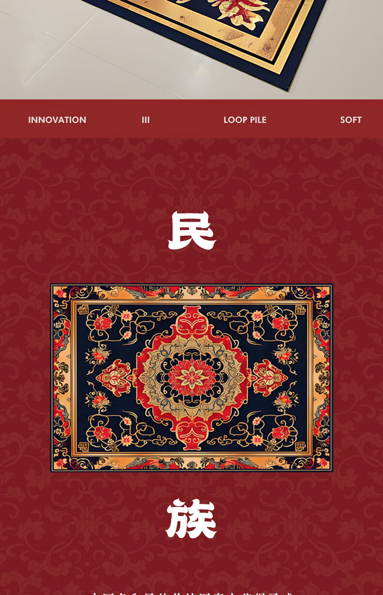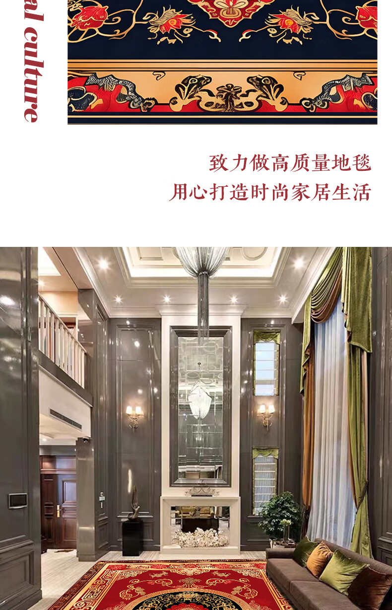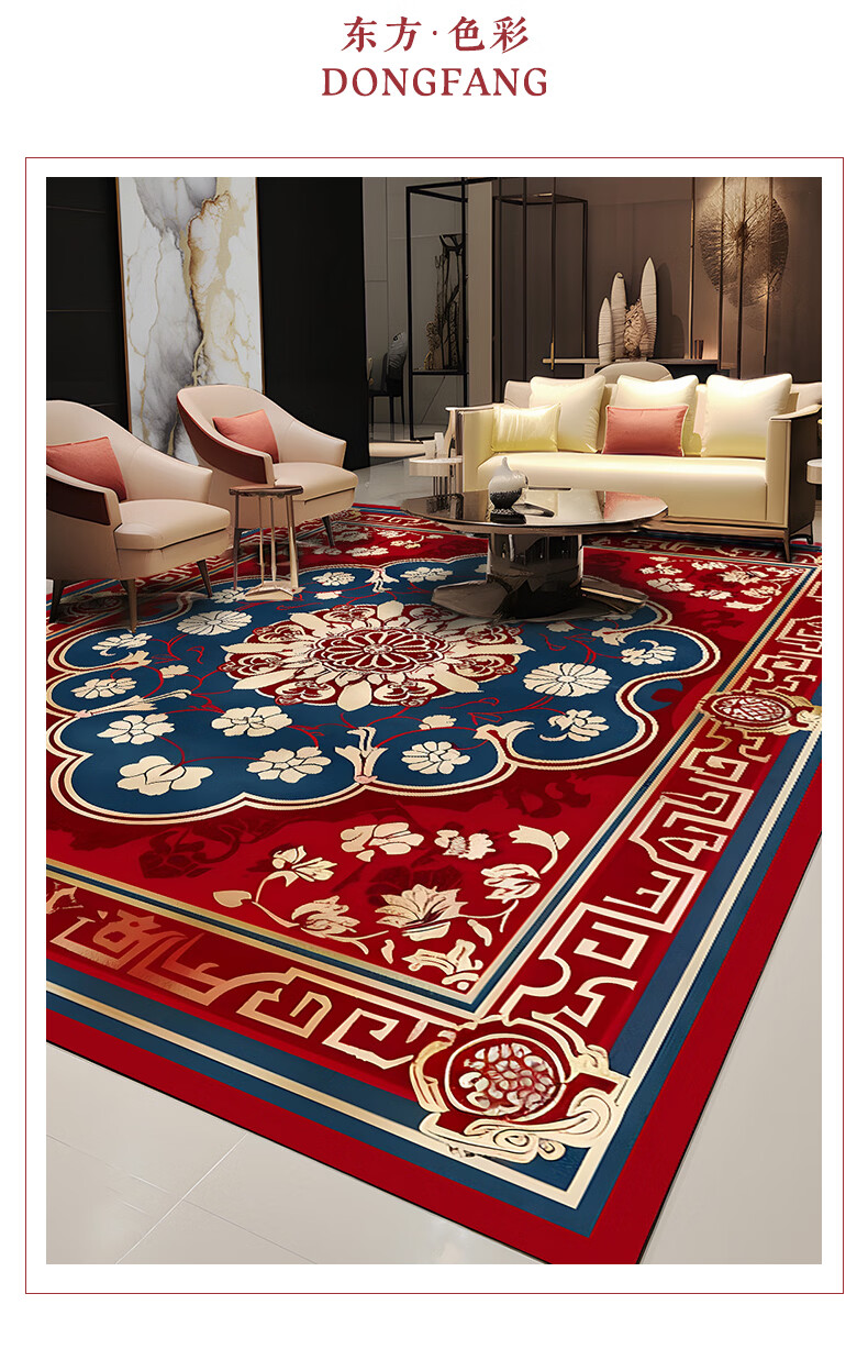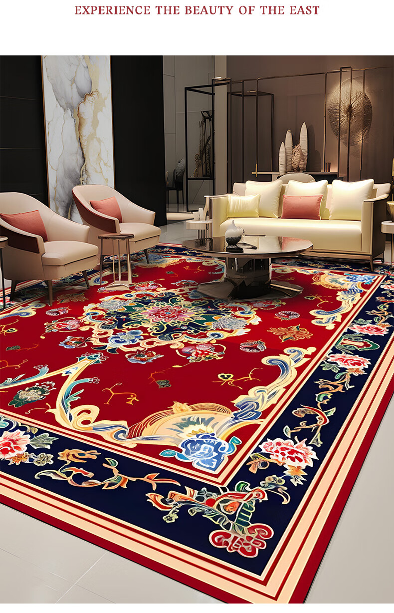 Junyuexi Tibetan carpet living room ethnic style Tibetan coffee table carpet Chinese style villa carpet large area full bedroom floor mat Tibetan carpet-02 300cm*500cm (crystal velvet)