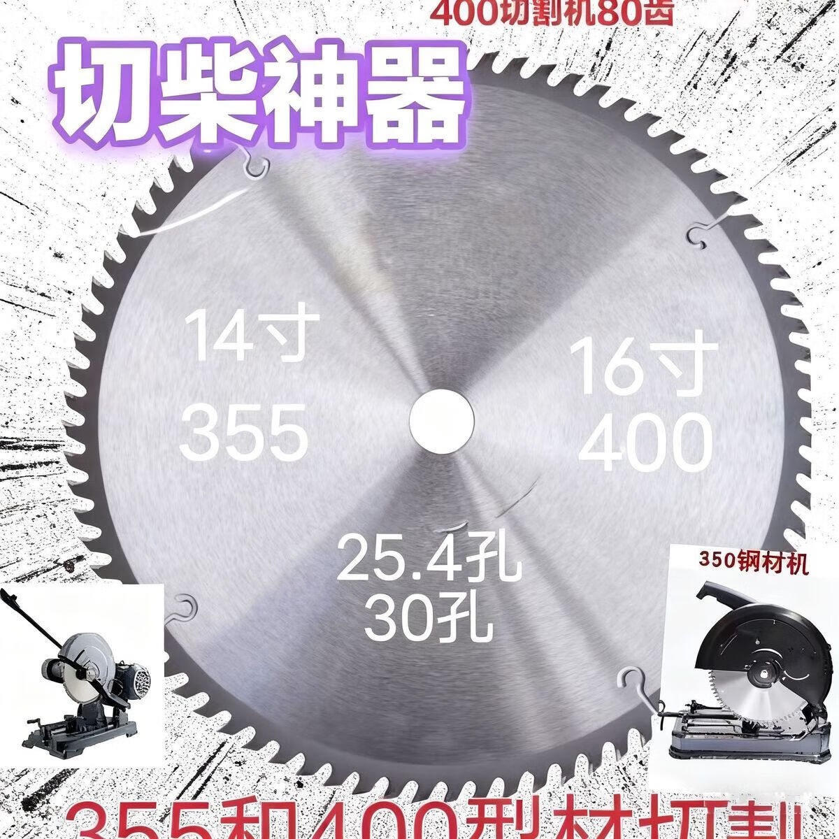奈迅355切割机专用12/14/16寸型材切割机柴火劈柴合金锯片 12寸(30025.4内孔)60齿