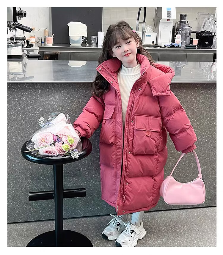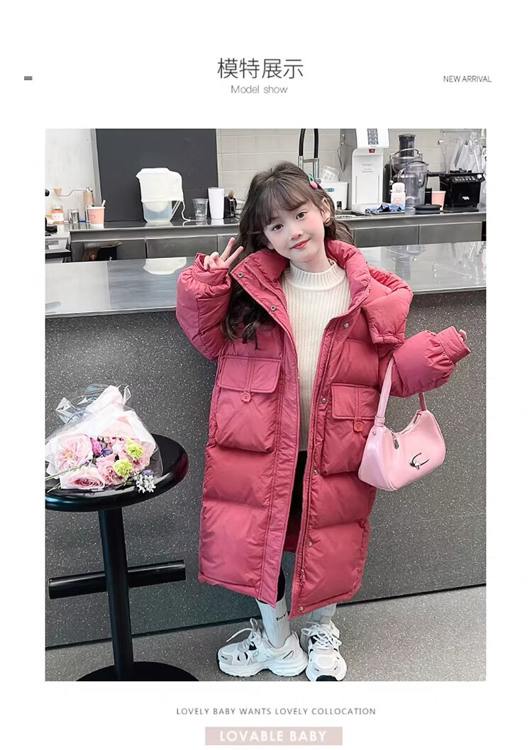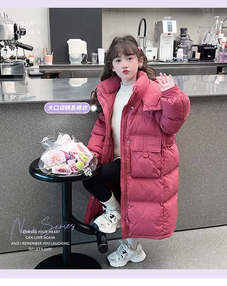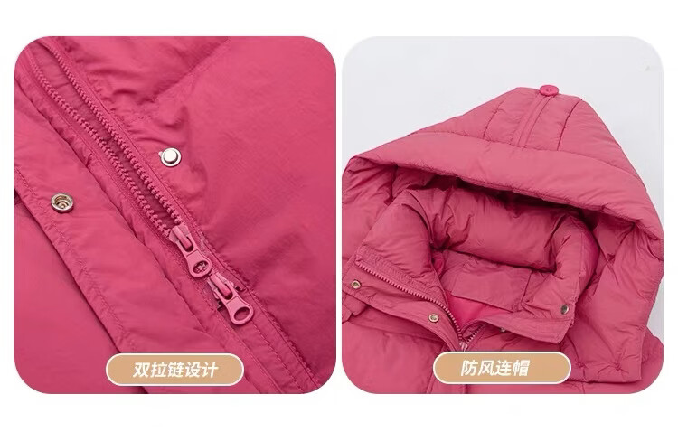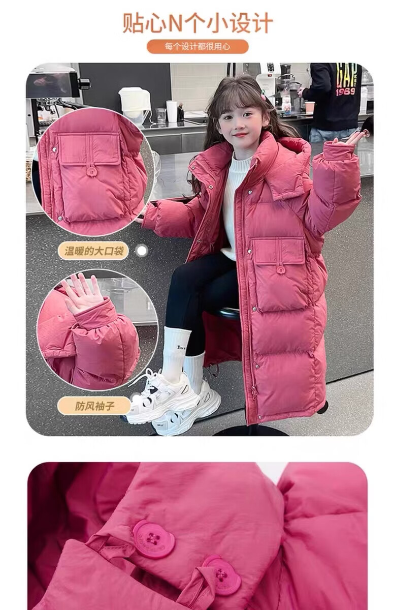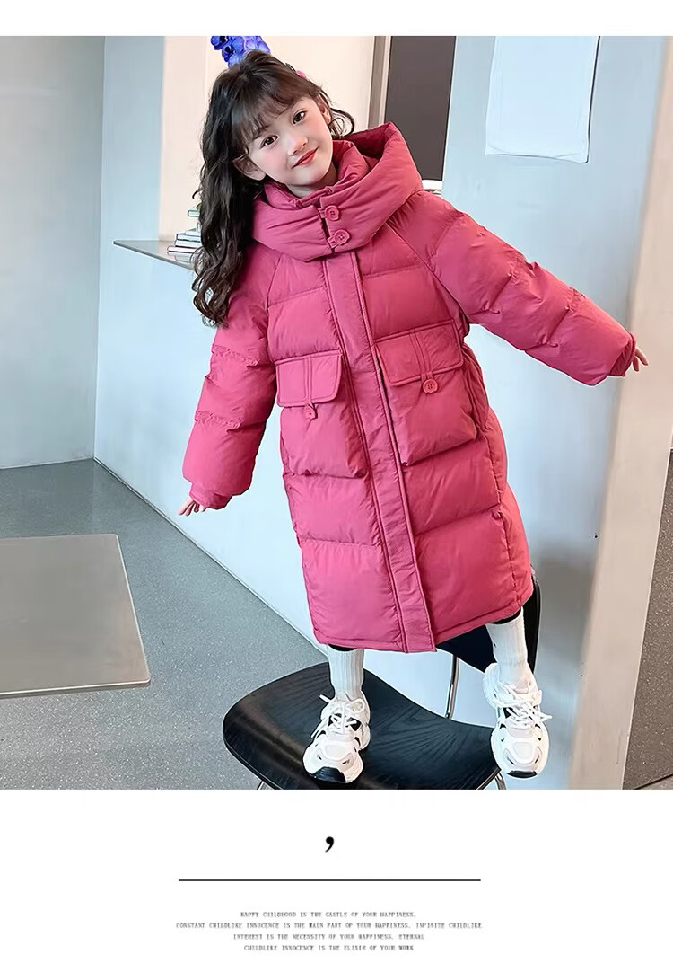 HAL.DUCK Girls' Winter Thickened Long Down Jacket 2025 New Hooded Girl's Parent-child Padded Jacket Pink Velvet Thickened 2025 Upgraded Fabric 120 cm Regular Size Recommended to be worn at around 1.2 meters