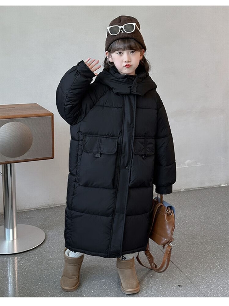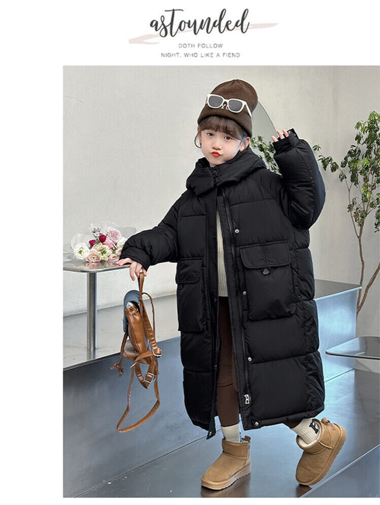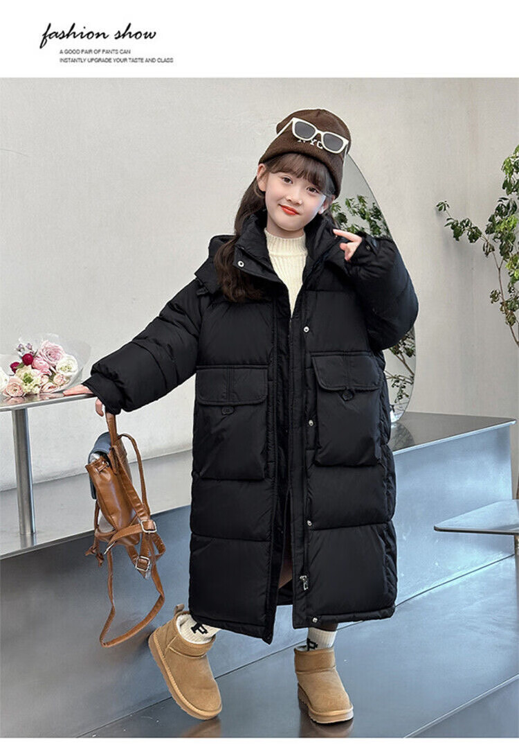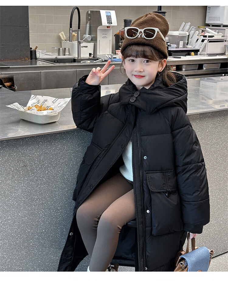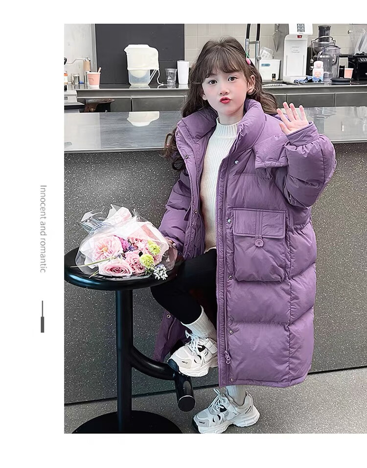 HAL.DUCK Girls' Winter Thickened Long Down Jacket 2025 New Hooded Girl's Parent-child Padded Jacket Pink Velvet Thickened 2025 Upgraded Fabric 120 cm Regular Size Recommended to be worn at around 1.2 meters