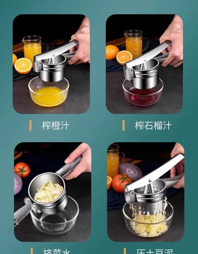 KDISV German manual juicer, pomegranate juice artifact, fruit juicer, orange juice squeezer, juice squeezer, lemon clip, preferred stainless steel, hollow model, high juice rate