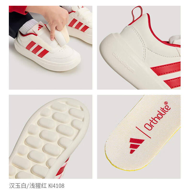 Adidas (adidas) children's shoes 2026 New Year's model for boys and girls Velcro cloud bottom tennis culture children's sports and casual shoes KI4108 KI4108 Han jade white/light scarlet 30 yards/11.5k/foot length 18cm