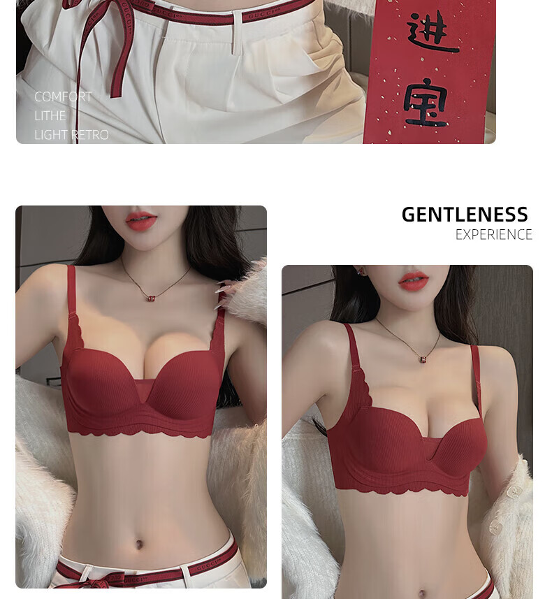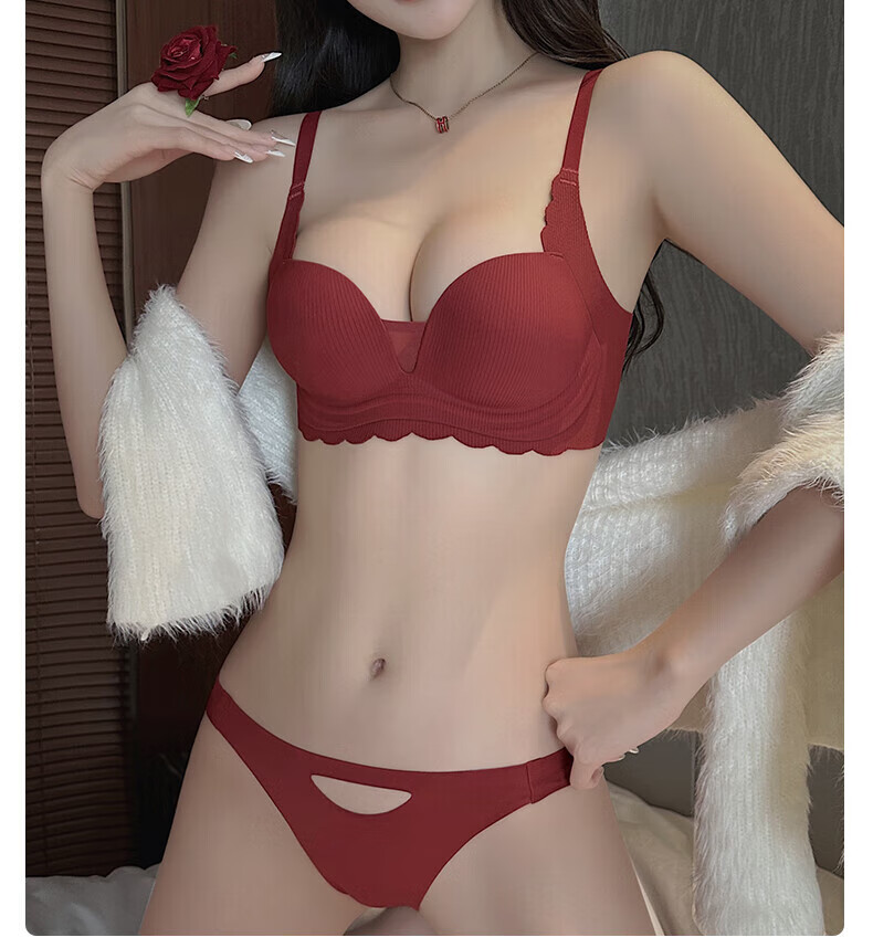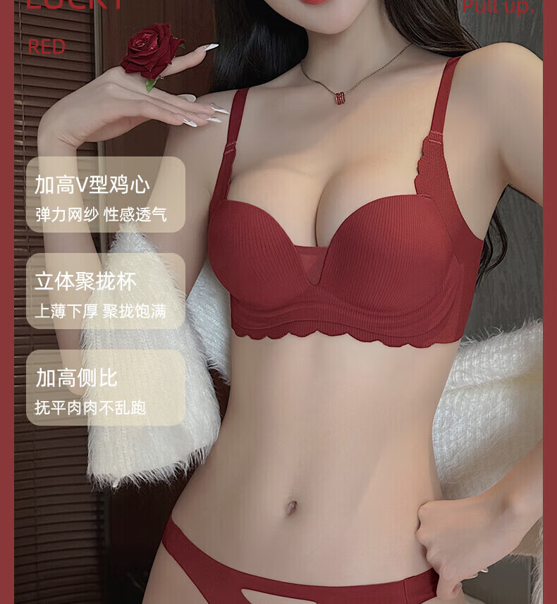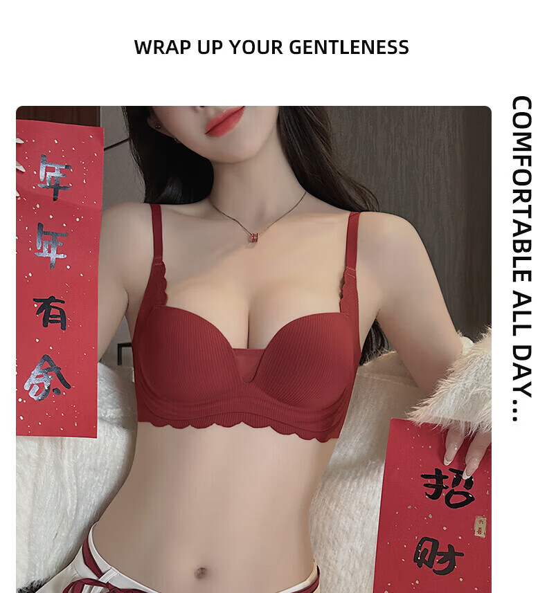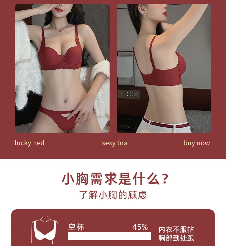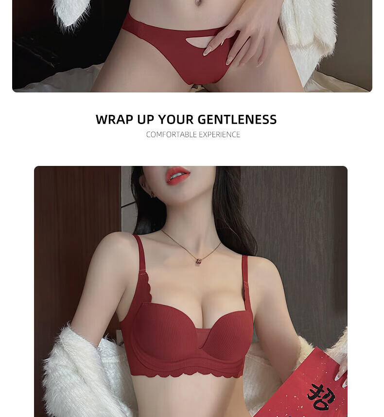 ZOEACE Zodiac Year Underwear Women's Red Year of the Horse Set Small Breasts Push Up Thickening to Show Bigger Upper Breast Support Bra Wedding Burgundy-Set 70A/32A (Small Breasts Look Big)