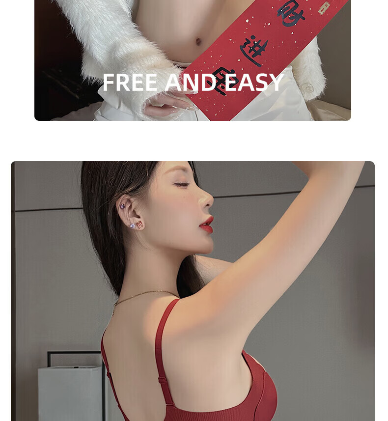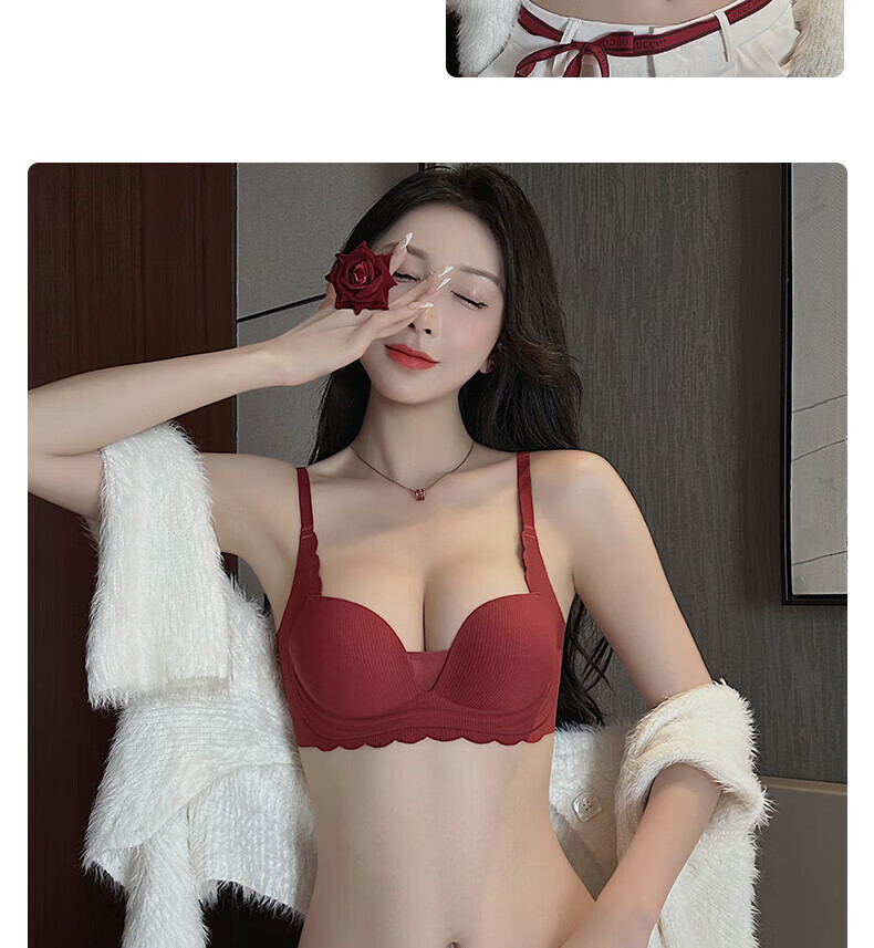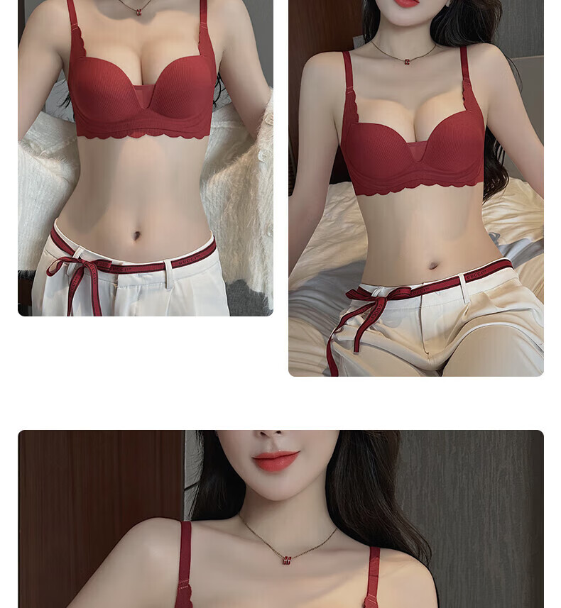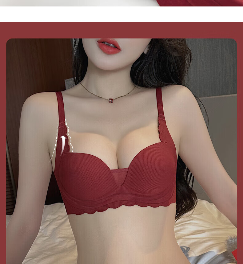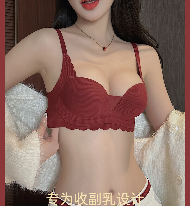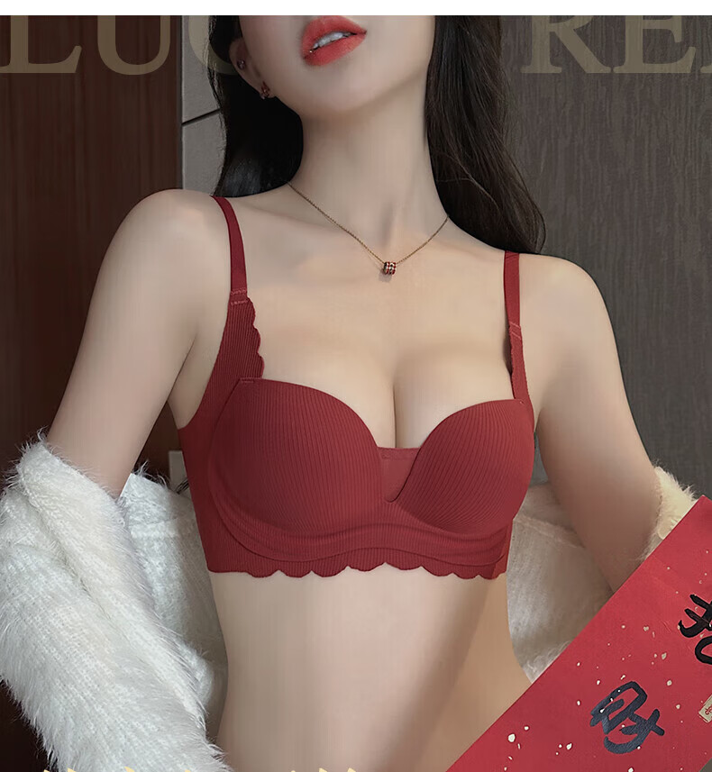 ZOEACE Zodiac Year Underwear Women's Red Year of the Horse Set Small Breasts Push Up Thickening to Show Bigger Upper Breast Support Bra Wedding Burgundy-Set 70A/32A (Small Breasts Look Big)