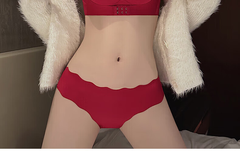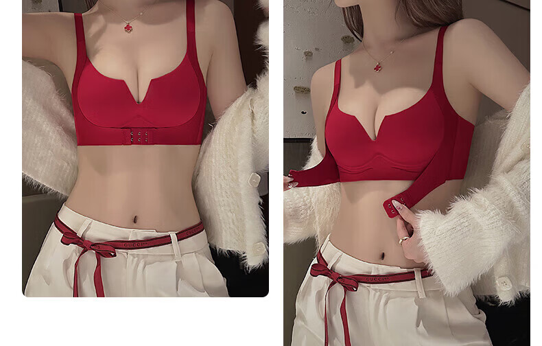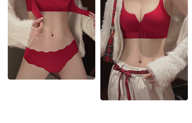 Maza Hongnan zodiac year red underwear set for women with small breasts pushed together to make them look bigger in autumn and winter with parabreast dragon wedding bridal underwear bra burgundy-suit S (suitable for 70AB)