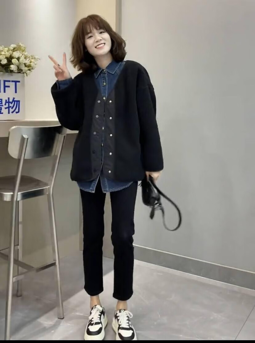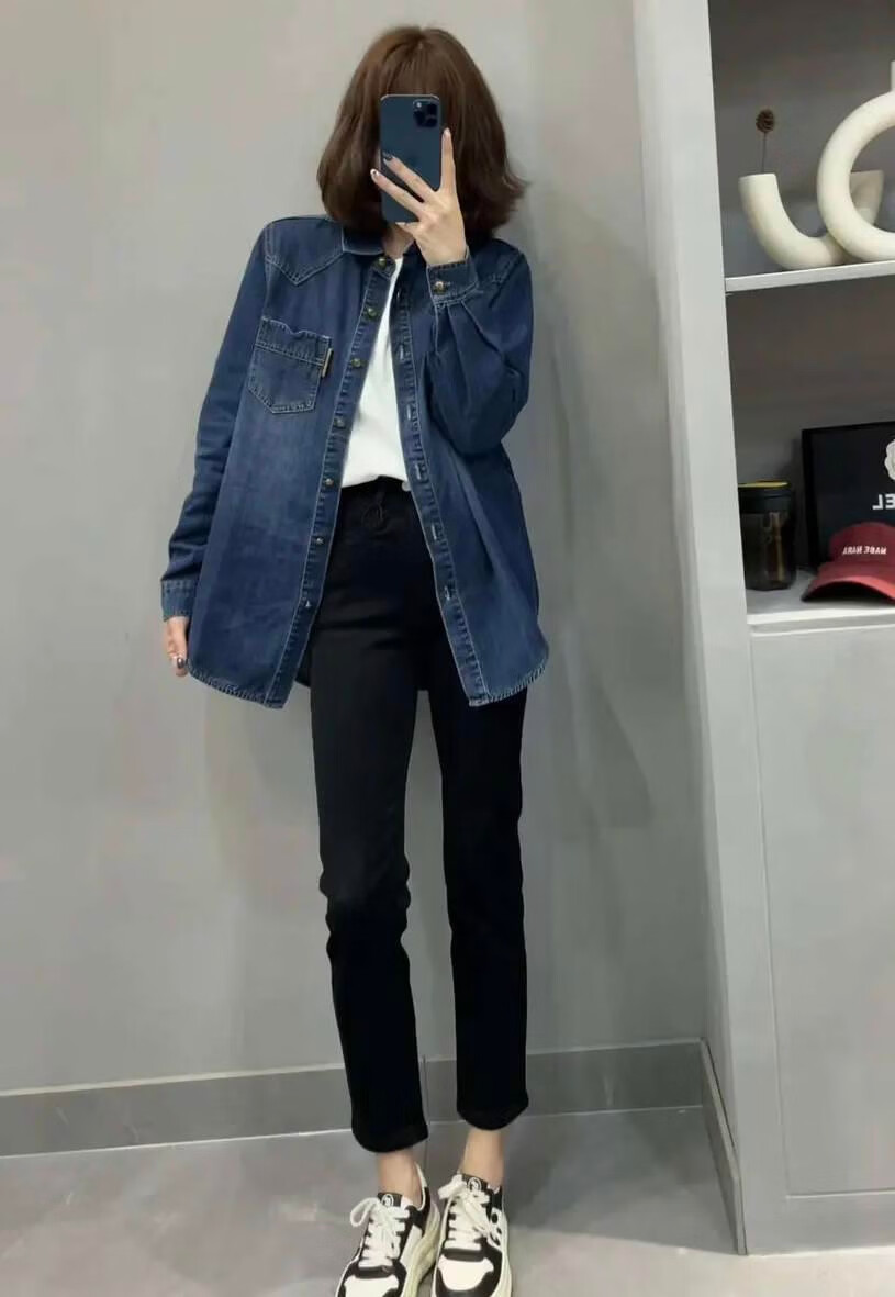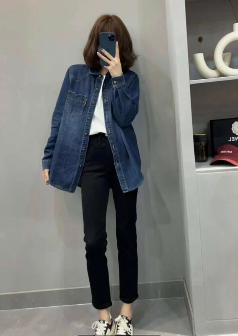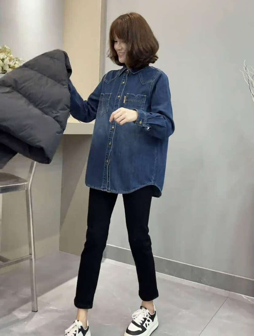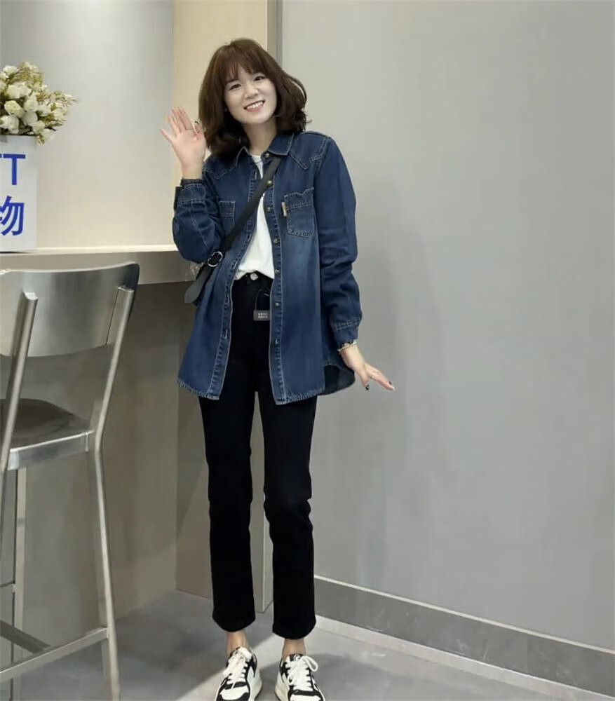 2025 New Denim Shirt Women's Autumn and Winter New Small Short Fashionable Loose Casual Versatile Layer Shirt Denim Shirt (Thin Velvet Style) L Recommendation 115-130 Jin Jin equals 0.5 kg