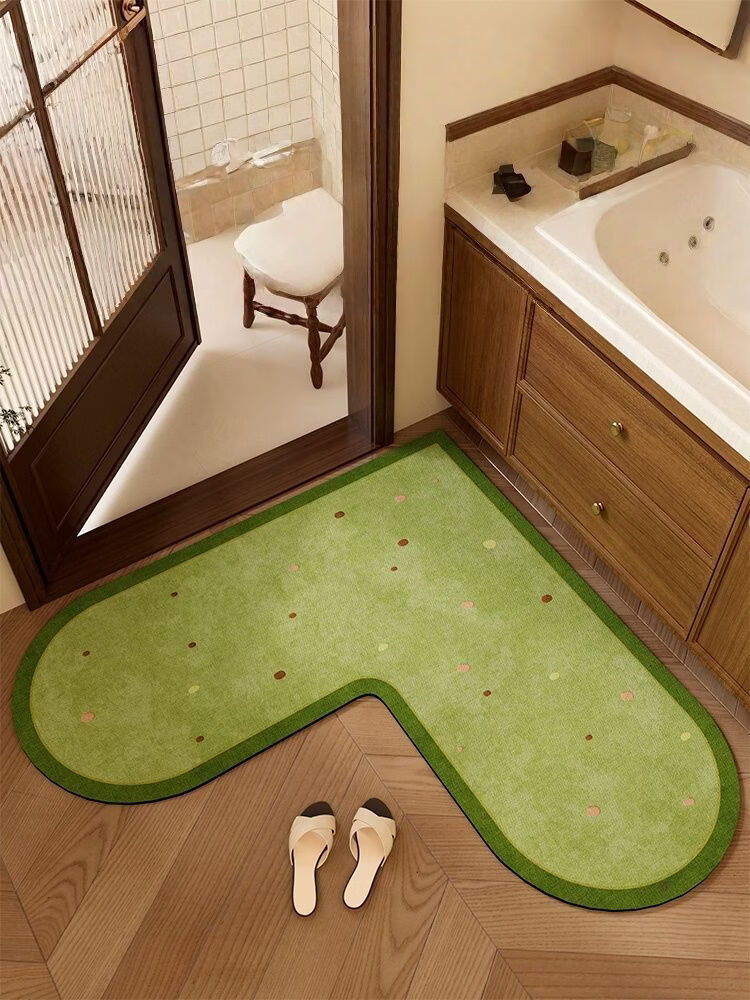 Fantasy green medieval style L-shaped bathroom floor mat bathroom diatom mud kitchen floor mat toilet door strong absorbent carpet 20X20 Q lilac knot silver ion antibacterial whale black absorbing technology
