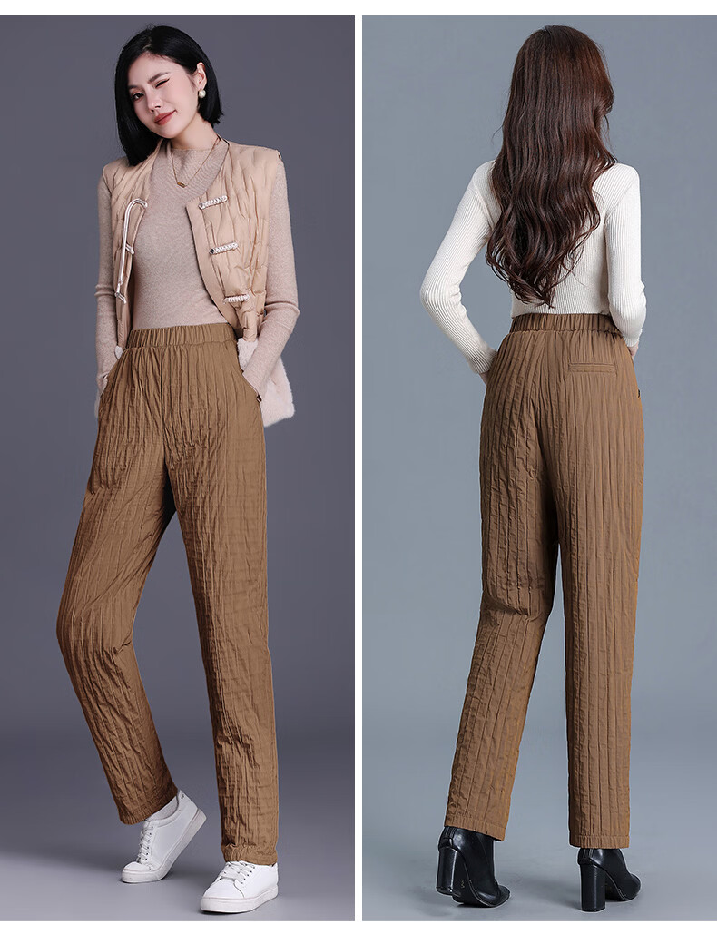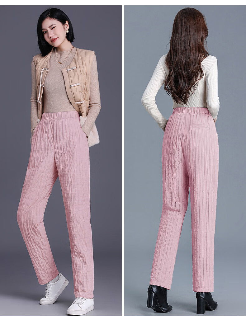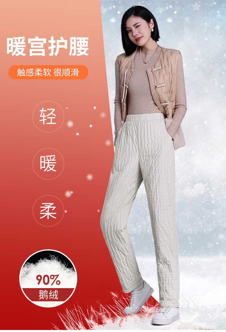 Woodpecker Down Pants Women's Outerwear New Middle-aged Fashion Straight Goose Down Pants Thick Mom Winter Wear Warm Trousers Light Pink (Free) Thin M Recommended 80-110Jin Jin equals 0.5 kg