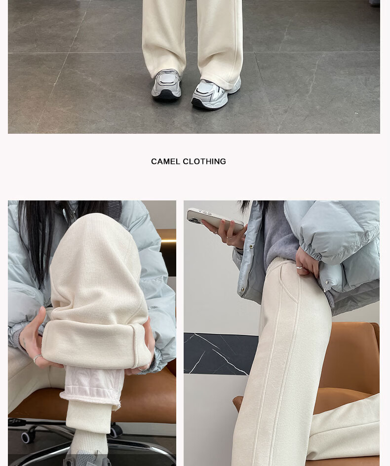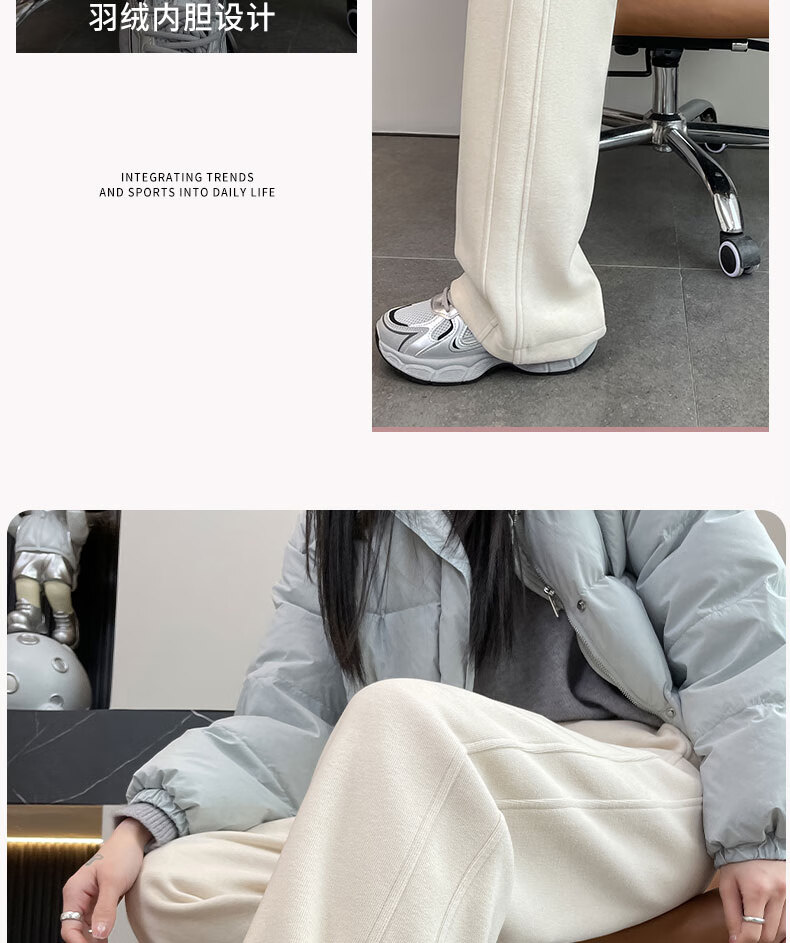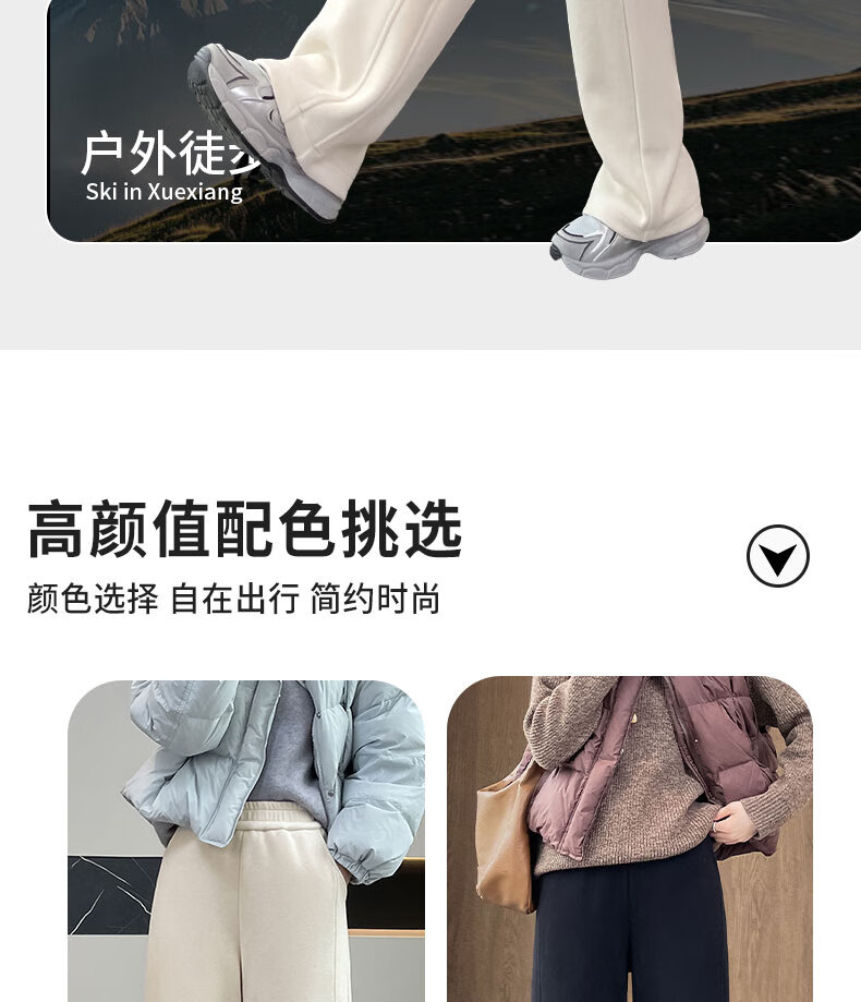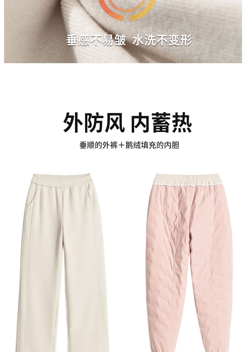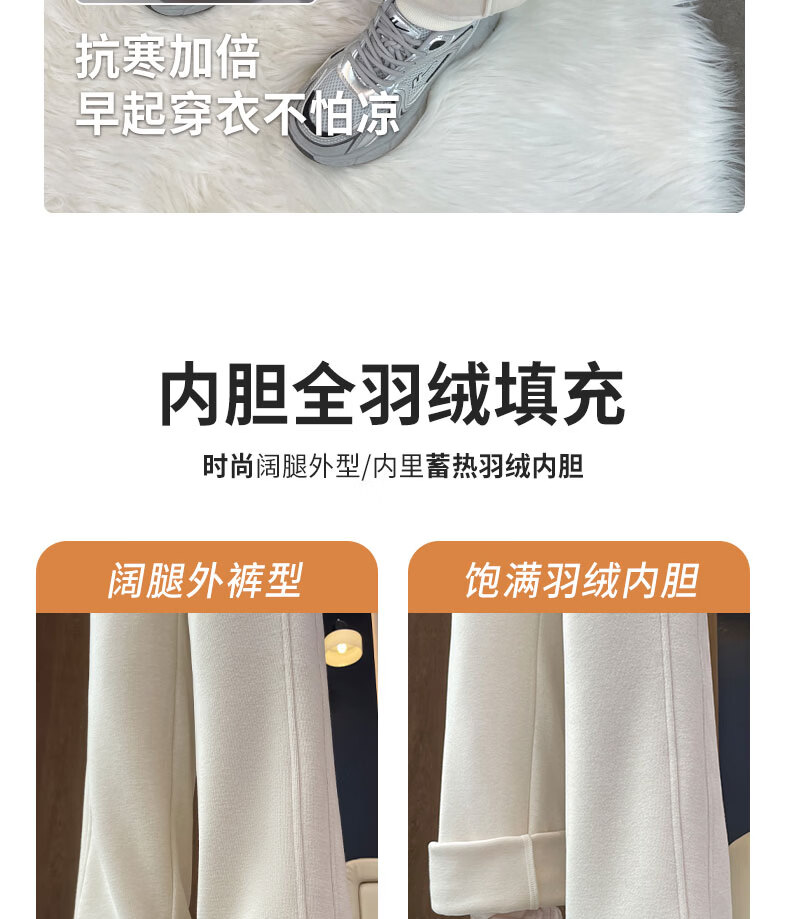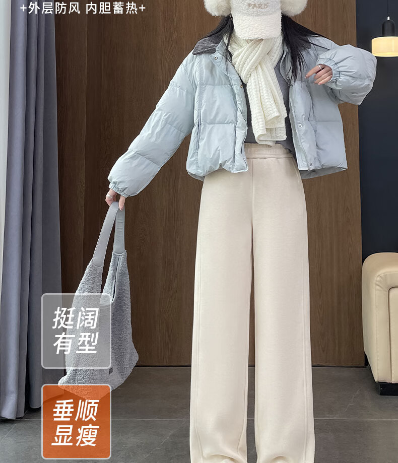 Woodpecker goose down trousers for women's outer wear 2026 winter new wide-leg straight pants, cold-proof and warm at minus 40 degrees in the northeast, light and beige for small people (recommended under 155CM) thin M 100-110Jin Jin is equal to 0.5 kg