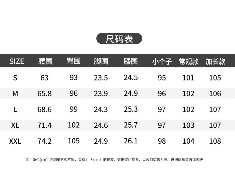Outseam (cm) 99 cm 101.5 cm 104 cm 106.5 cm 109 cm