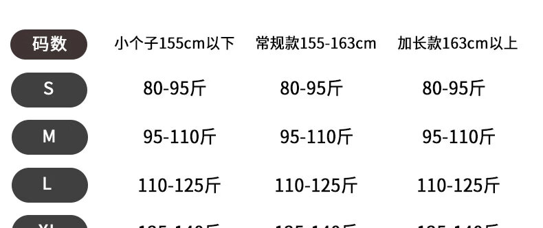 China (cm) 160-165/84-86 165-170 / 88-90 167-172 / 92-96 168-173 / 98-102 170-176 / 106-110