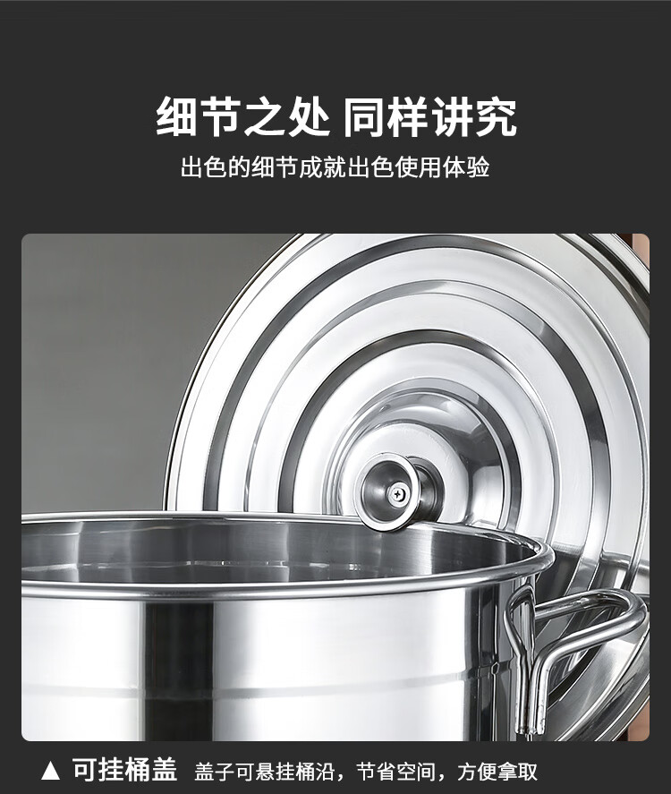 Tuojin imported quality stainless steel barrels from Germany with lids, commercial water barrels, thickened rice barrels, large-capacity oil barrels, household barrels 40*40, extra thick 30T