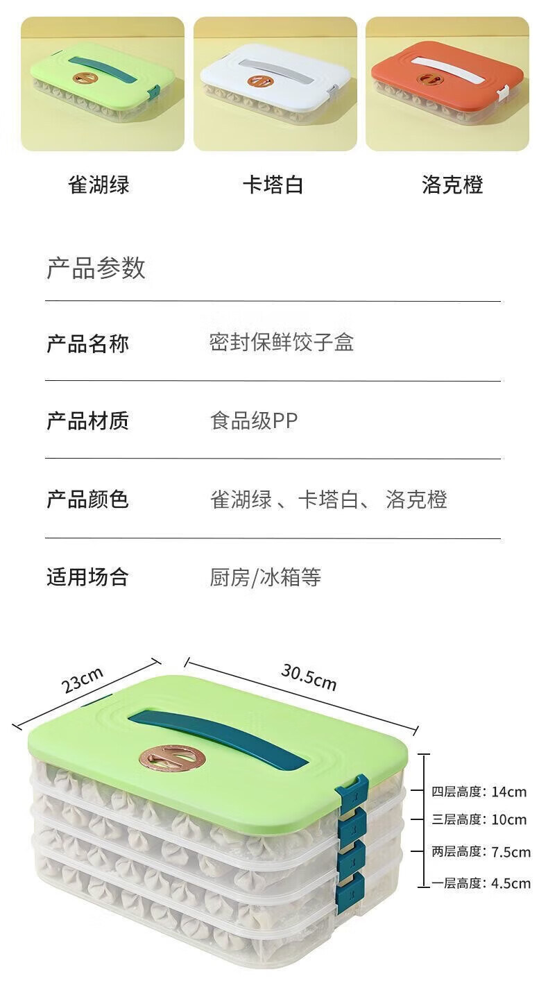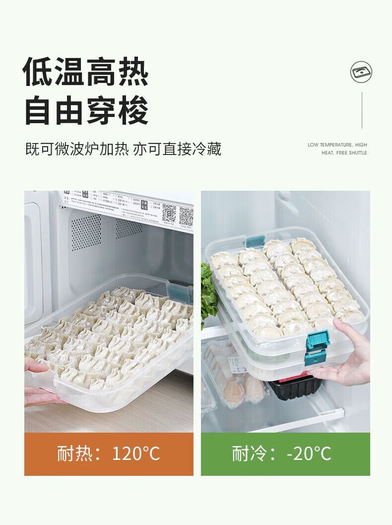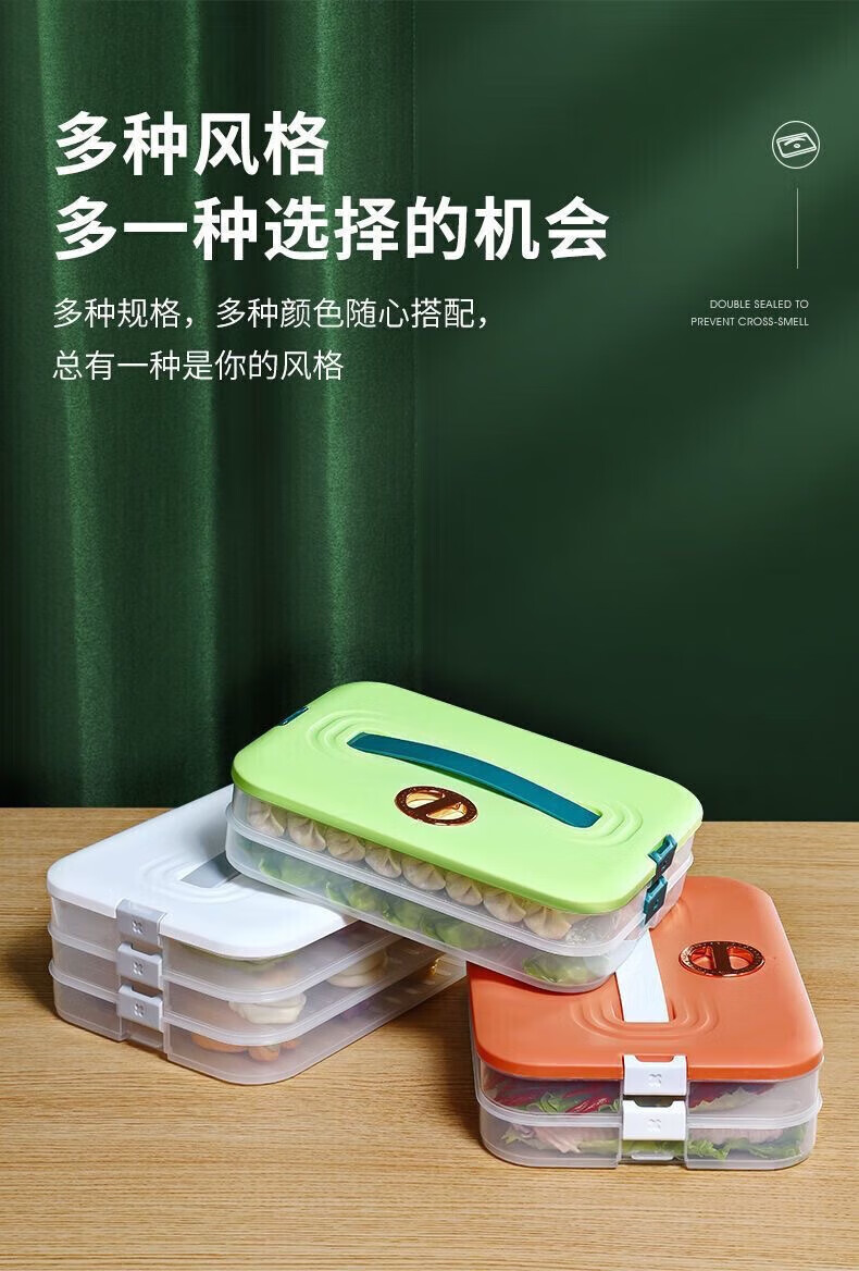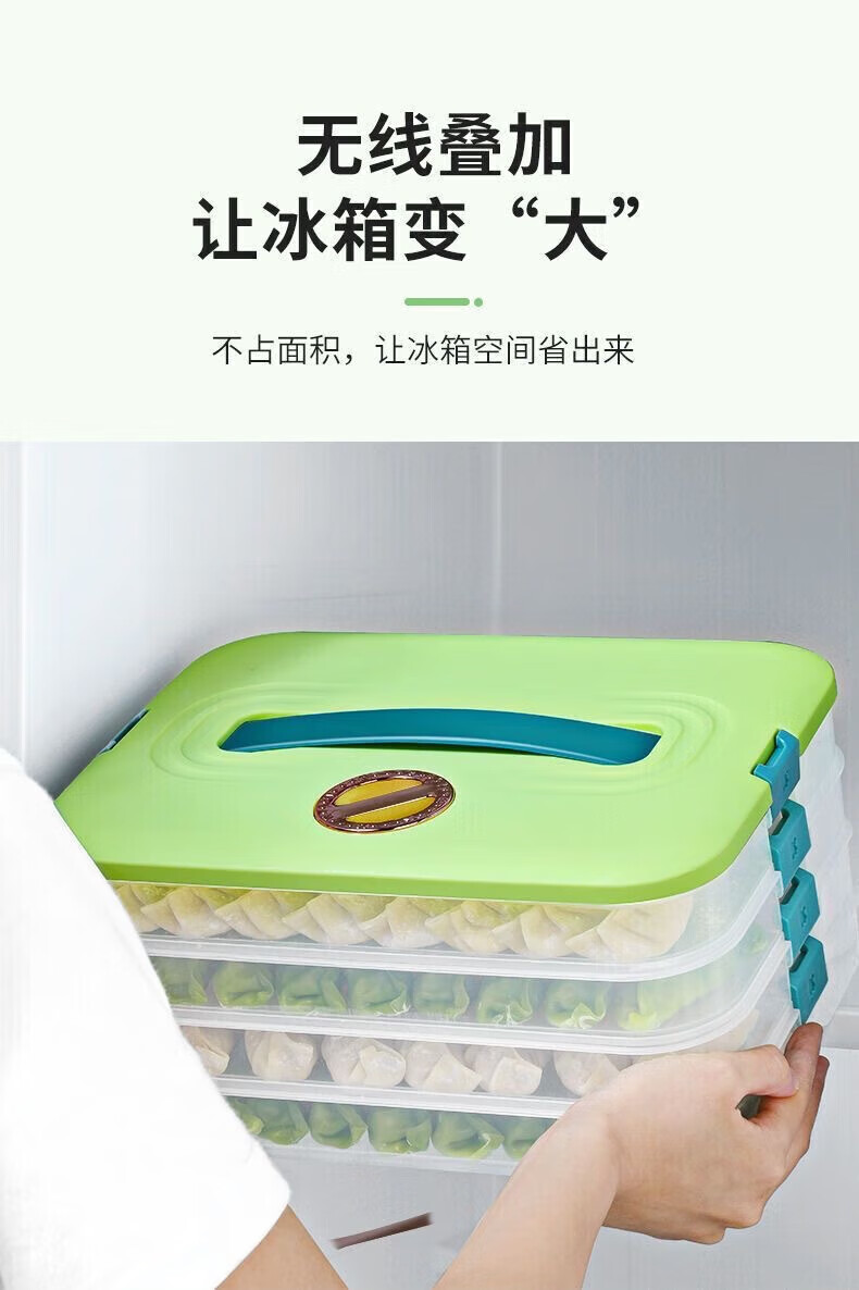 Haodi (HD) large-capacity dumpling box for refrigerator storage and organization, kitchen cold and quick-frozen wonton sealed storage crisper, green, two layers with lid - holds about 80 dumplings, non-stick bottom, anti-freeze cracking