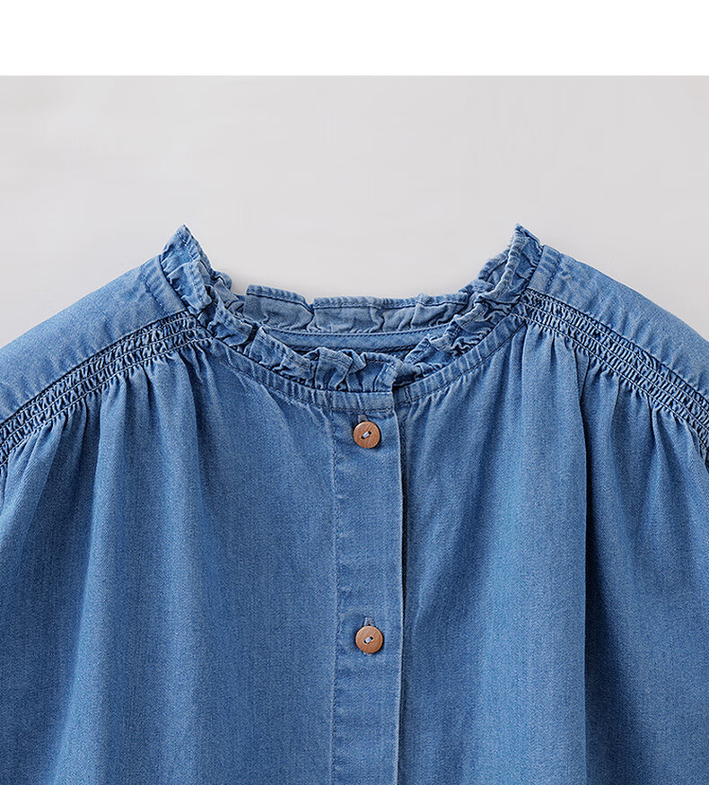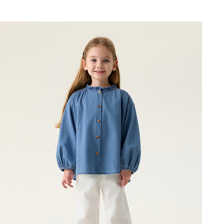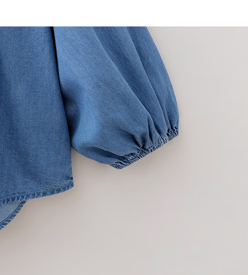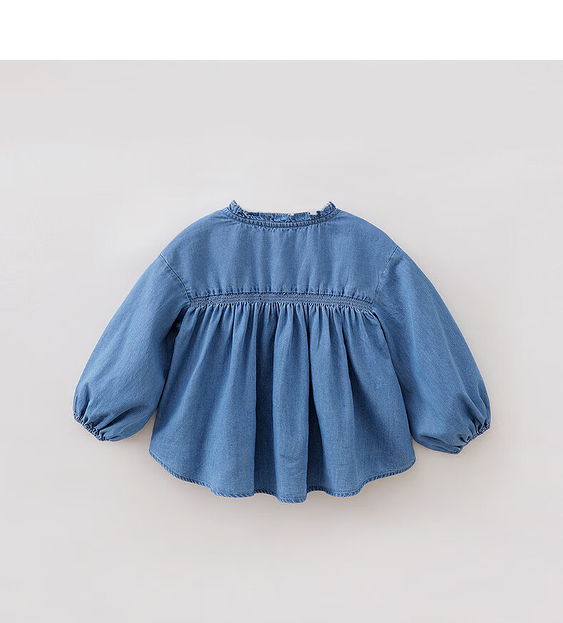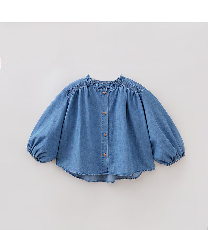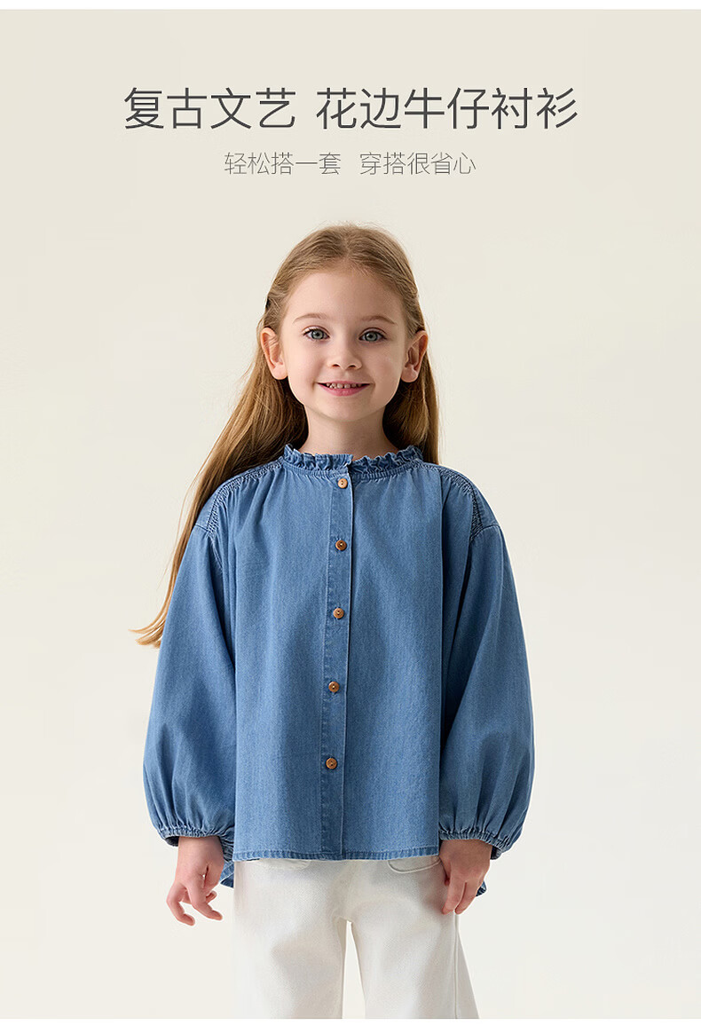 MARC&JANIE Mark Jenny retro literary girls' lace denim shirt baby shirt 2026 spring new style 560151 light denim 130 cm (recommended height 121-130cm)