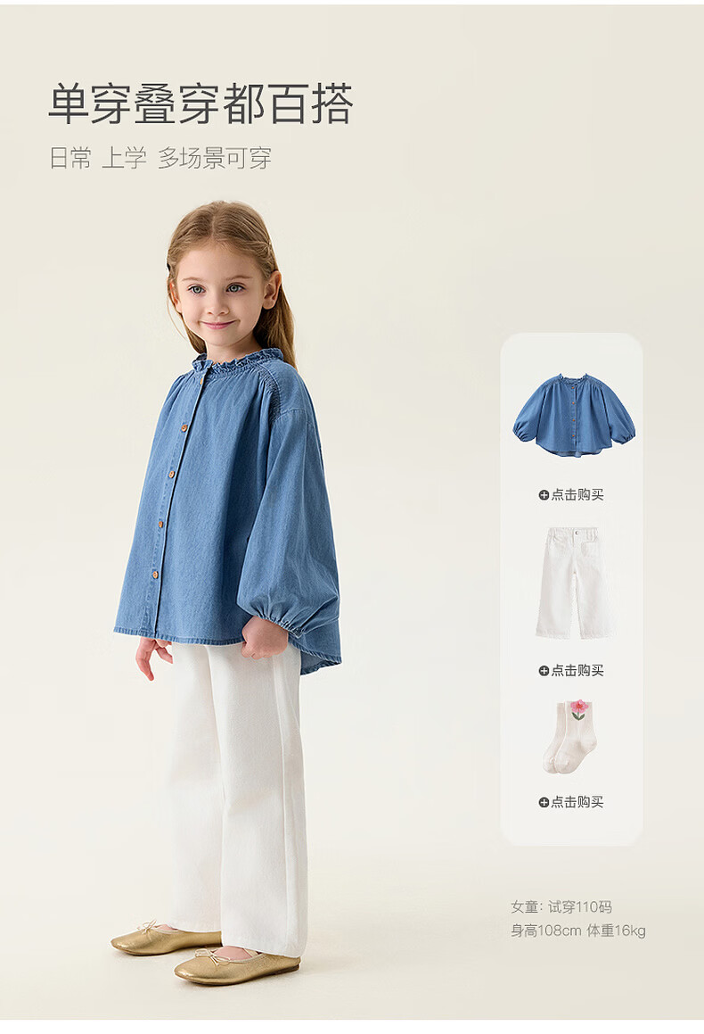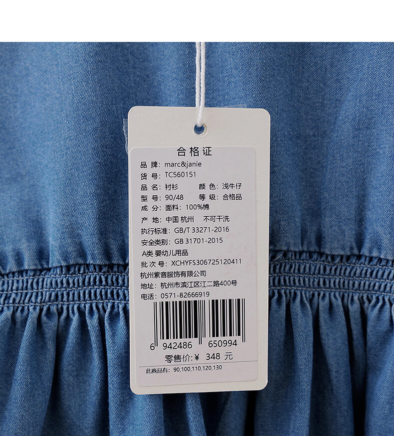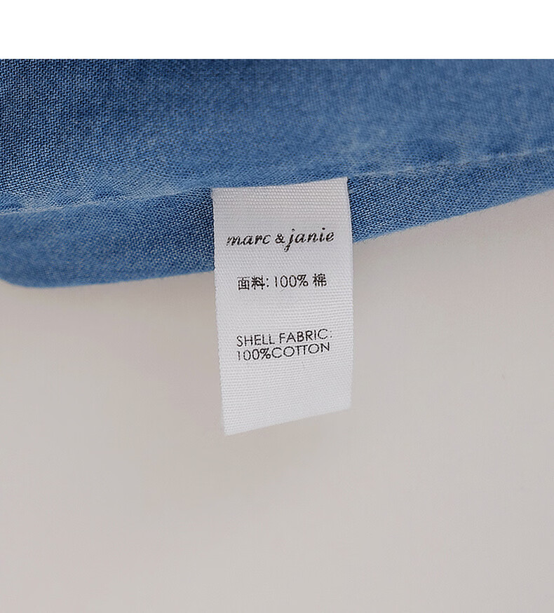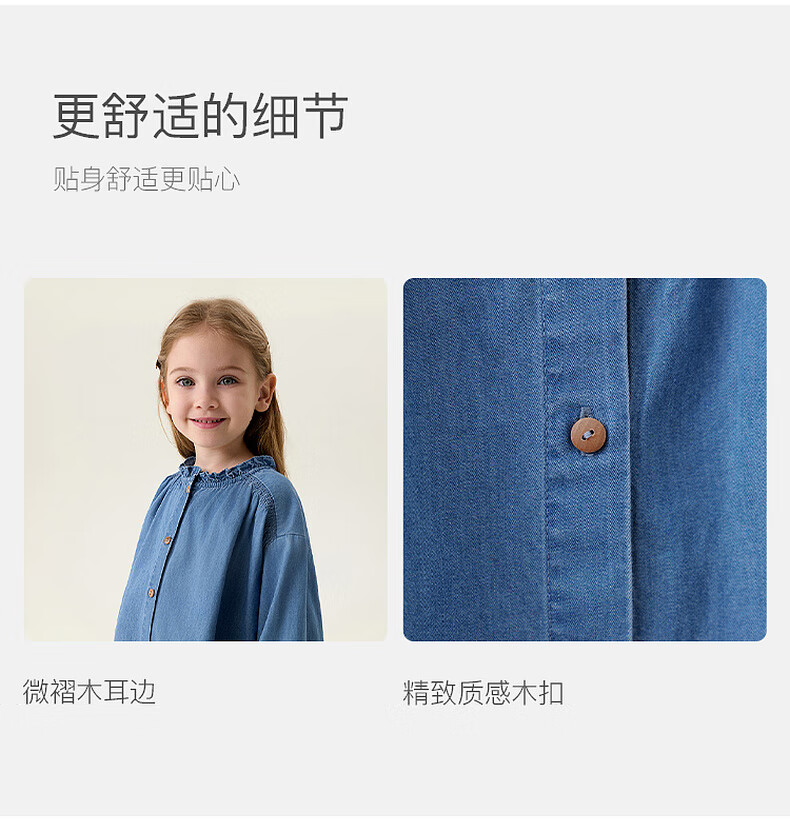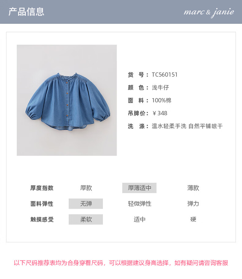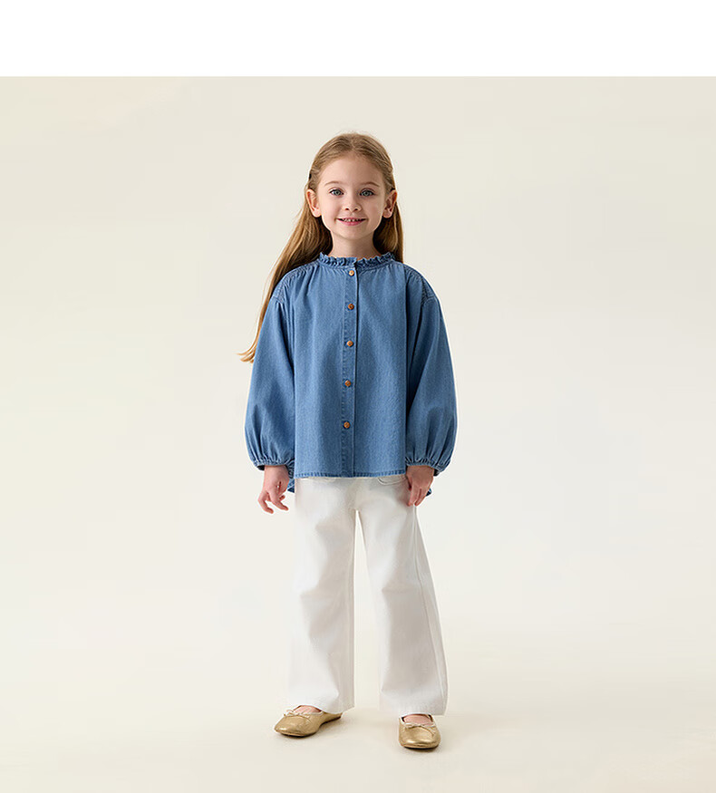 MARC&JANIE Mark Jenny retro literary girls' lace denim shirt baby shirt 2026 spring new style 560151 light denim 130 cm (recommended height 121-130cm)