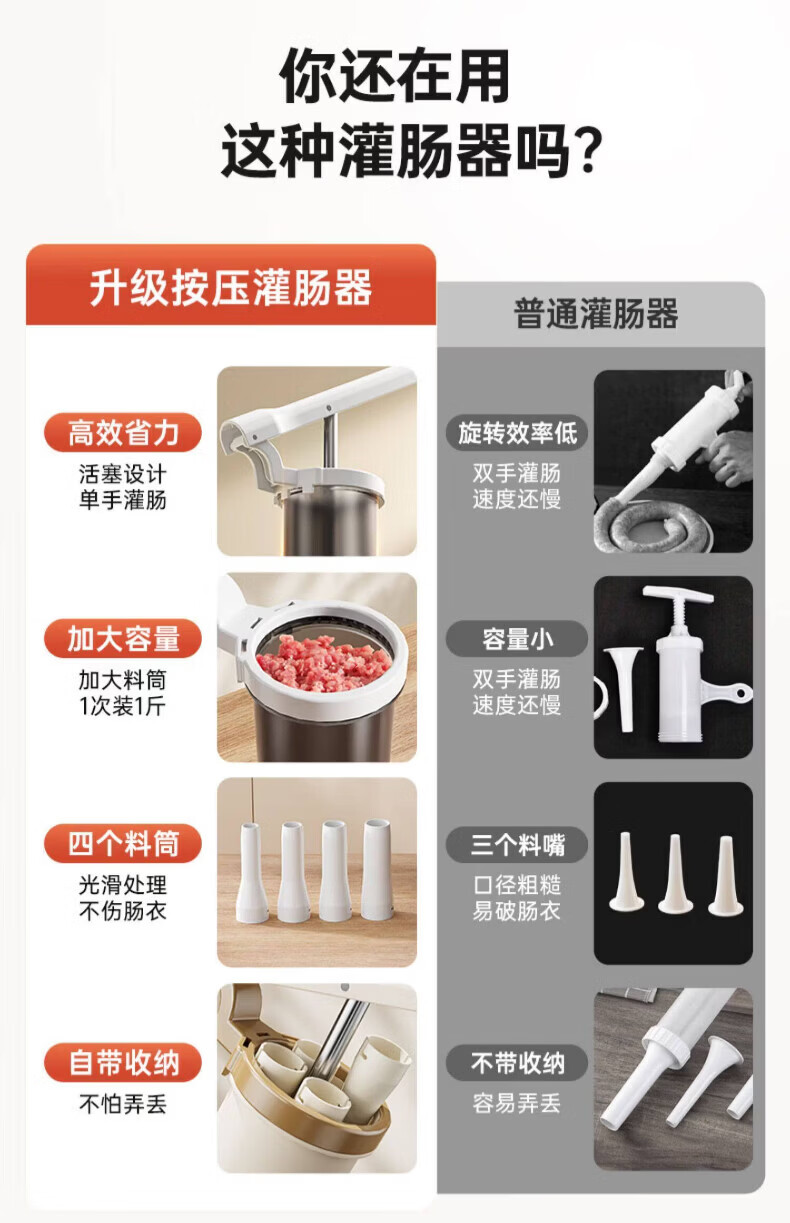 Baihaojia enema artifact household sausage manual press type enema machine casing meat sausage filling artifact lever enema large capacity barrel