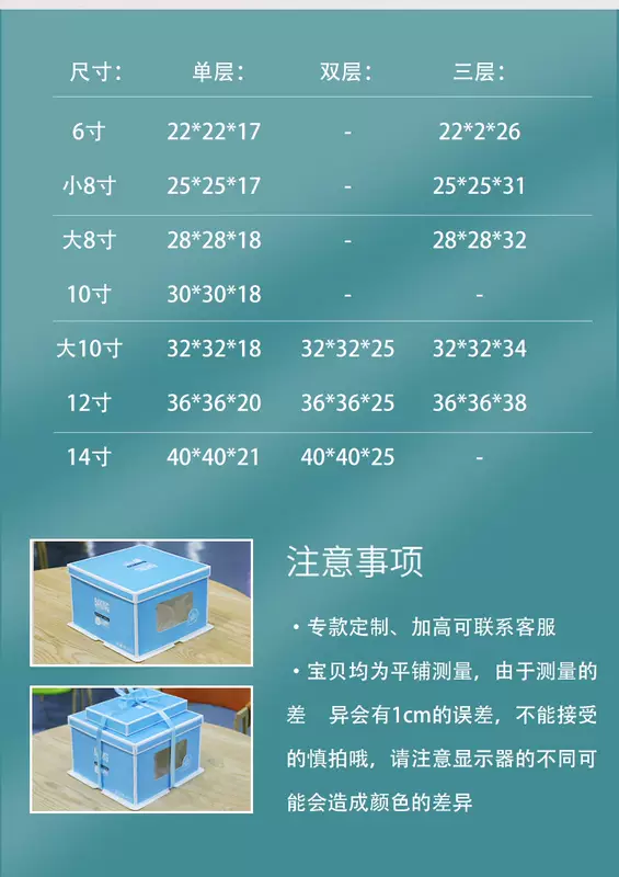 Yusenyi inch portable 6 8 birthday cakes 12 141016 thickened double-layer carton packaging box Baoranyixin Ribbon purchased separately Baoranyixin Ribbon purchased separately 6 inches 22x22x161 box 100 pieces