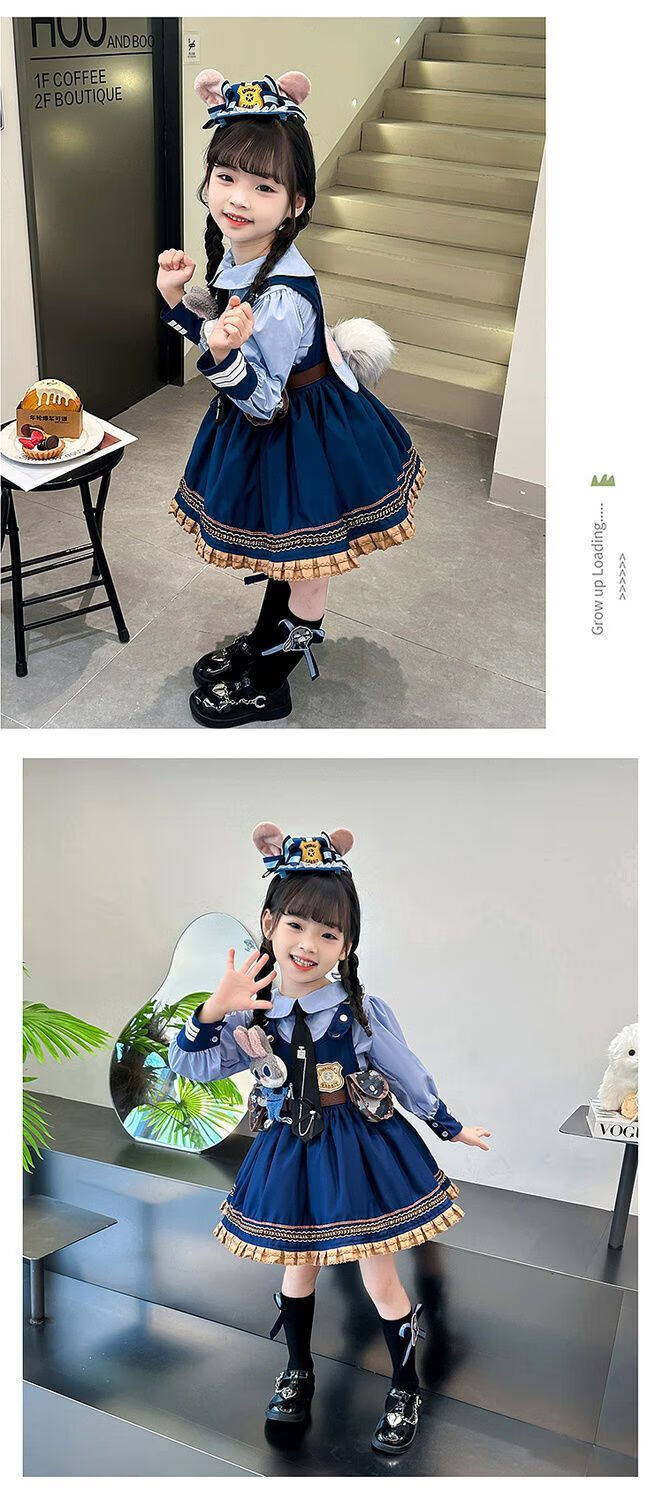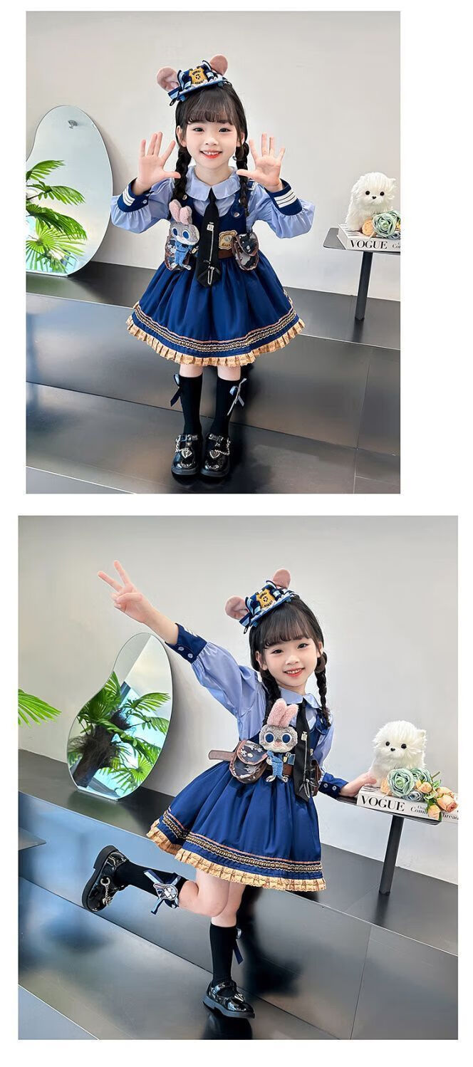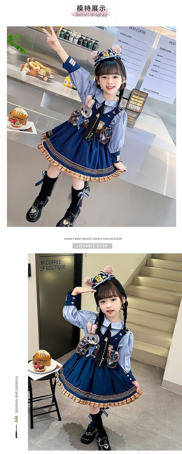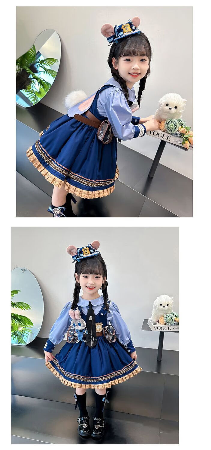 Parmaito Rabbit Police Officer Skirt, Girls Lolita Princess Skirt, Children's Disney Rabbit Police Officer Skirt, Fashionable Girl, Complete Set (Including All in the Picture) 100 Collection Order and Get a Tie