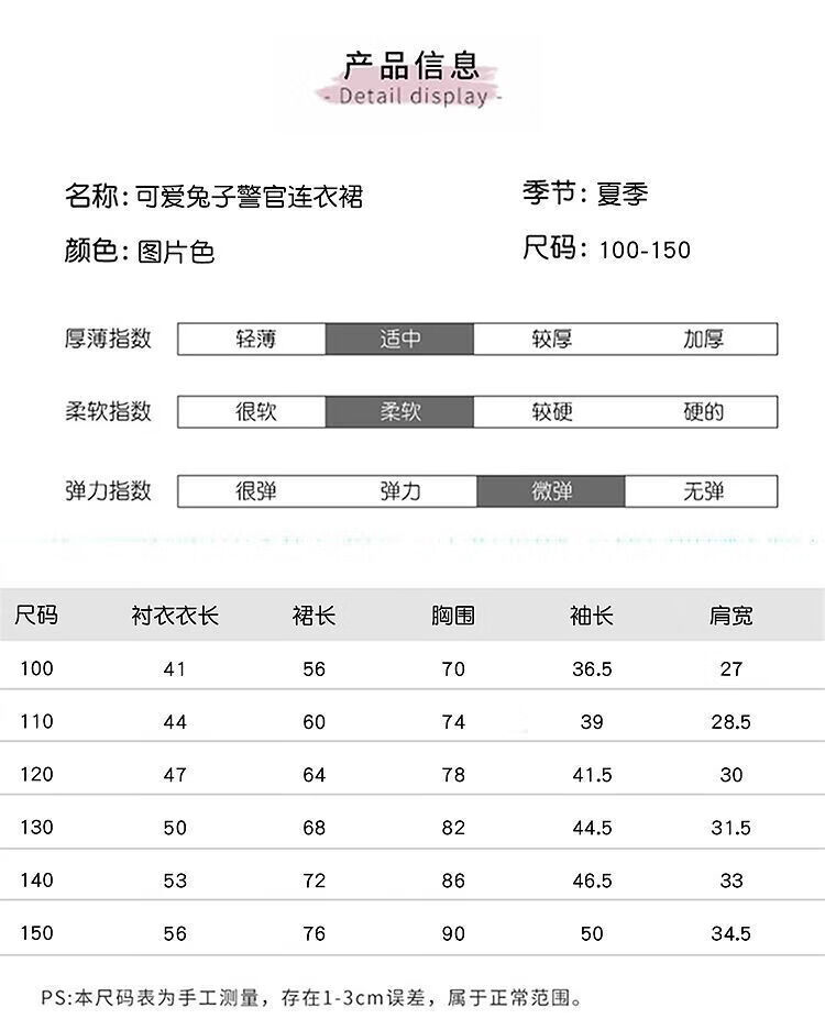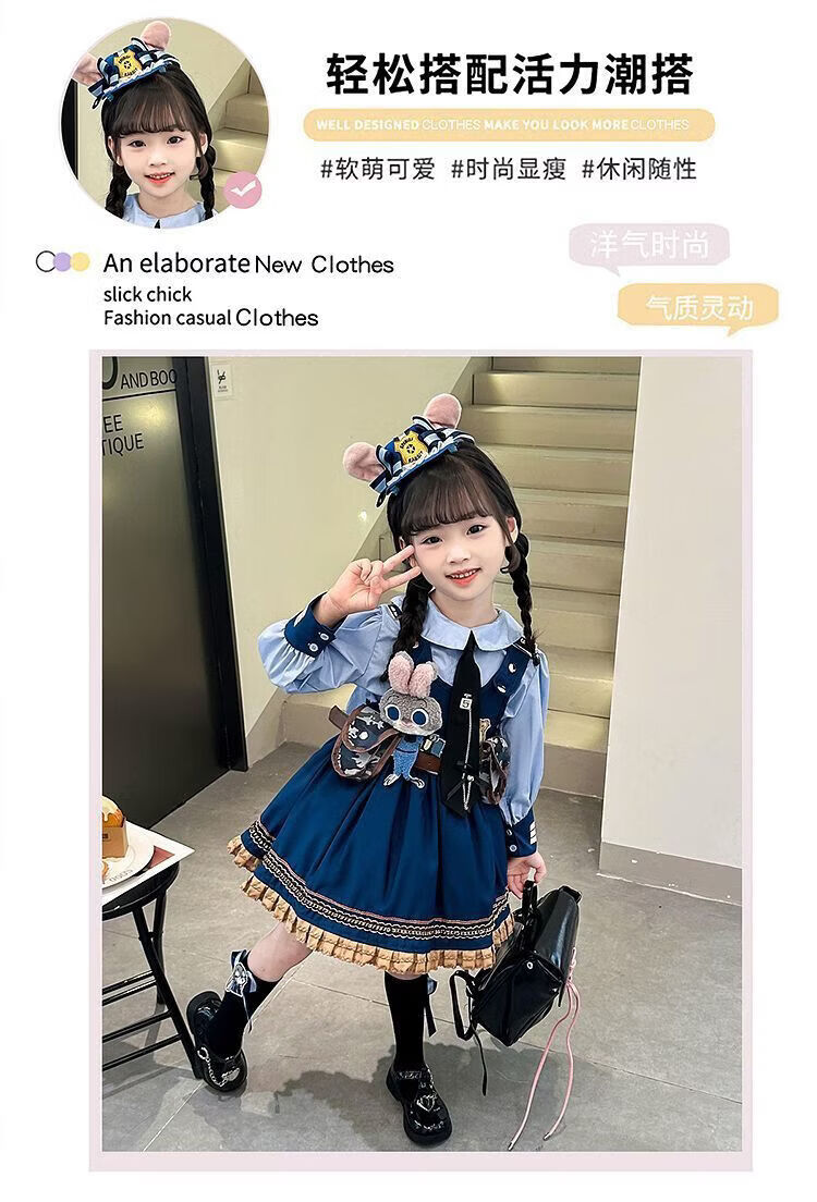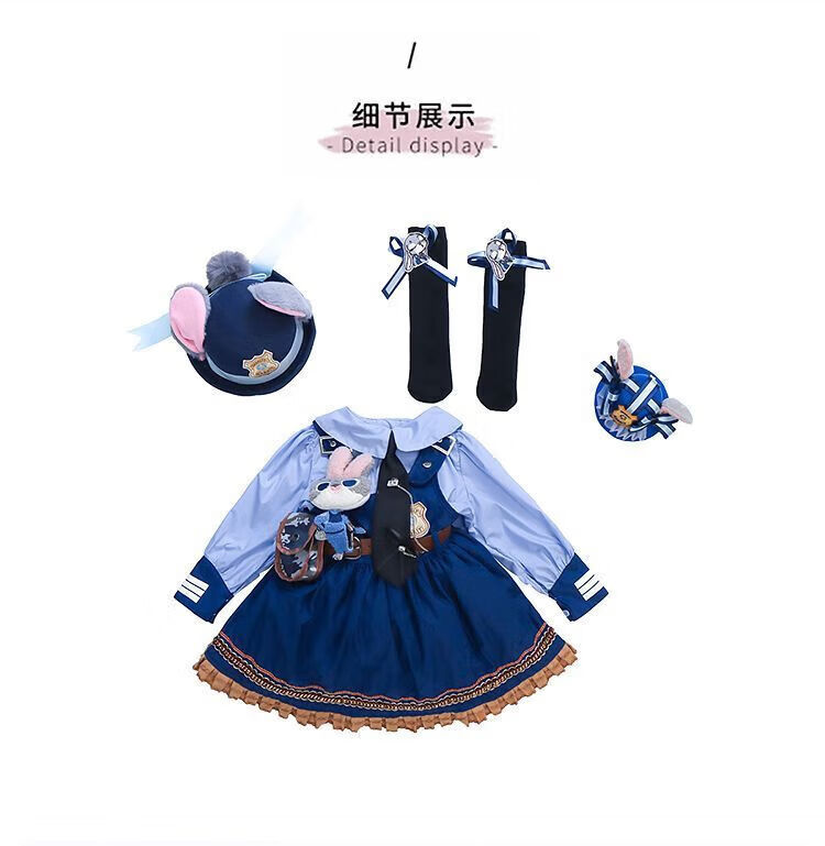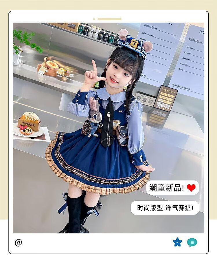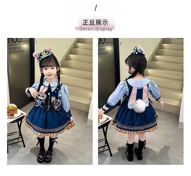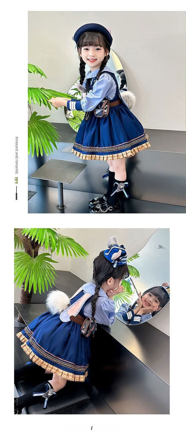 Parmaito Rabbit Police Officer Skirt, Girls Lolita Princess Skirt, Children's Disney Rabbit Police Officer Skirt, Fashionable Girl, Complete Set (Including All in the Picture) 100 Collection Order and Get a Tie