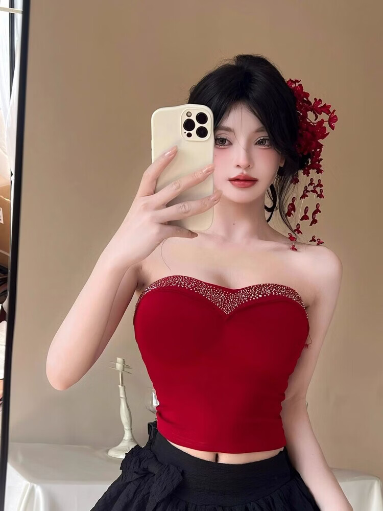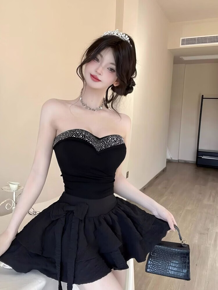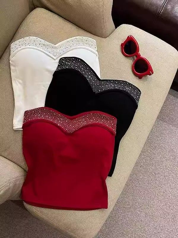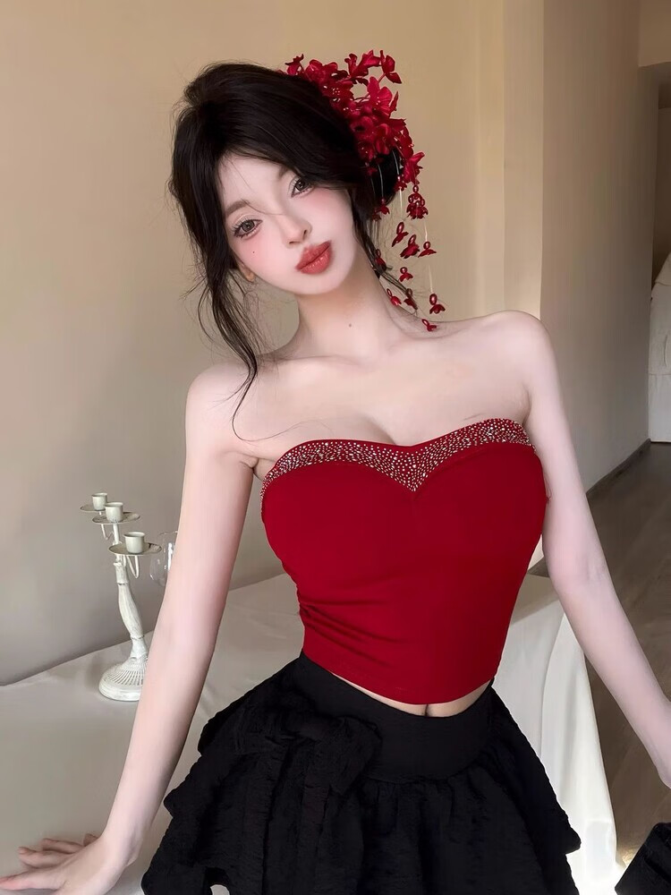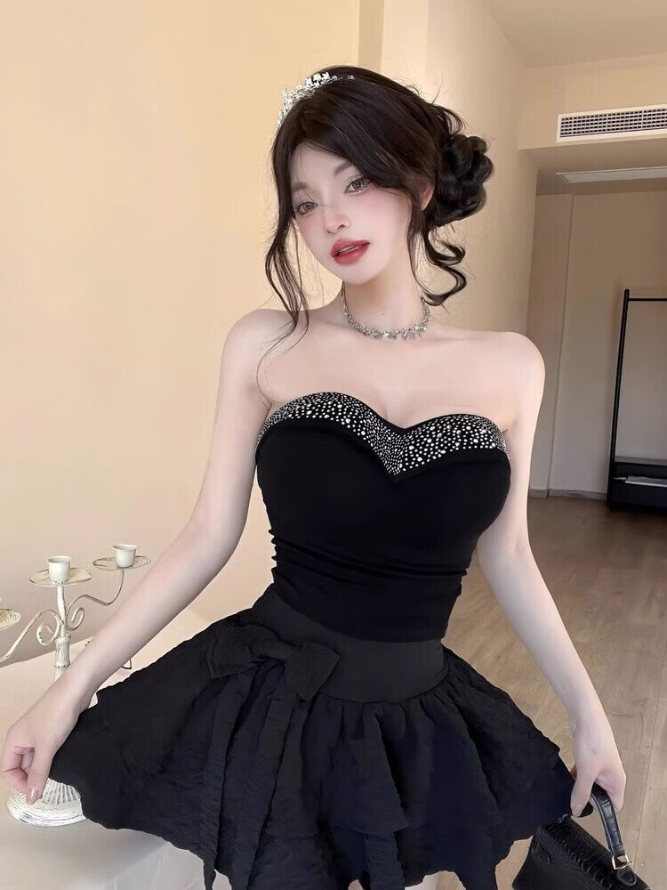 Lianxin's high-end heavy-duty diamond-encrusted tube top with breast pads for women to wear outside and for hot girls to wear short bottoming shirt vest black diamond-encrusted tube top with breast pads L suitable for 100-120 Jin Jin equals 0.5 kg