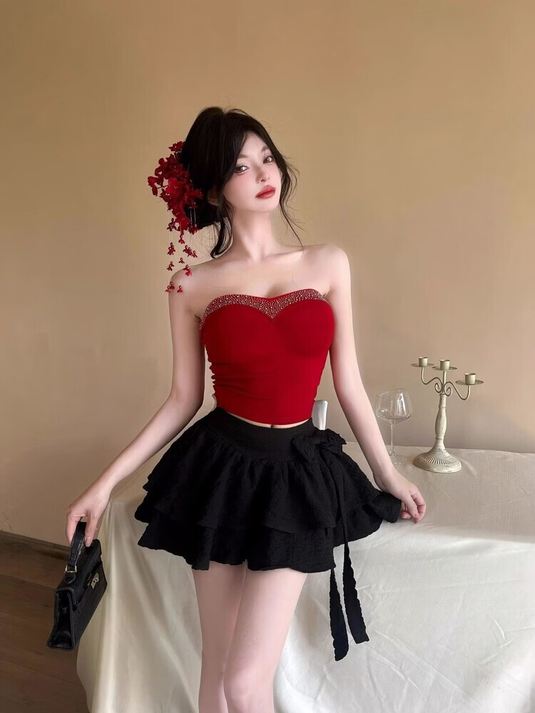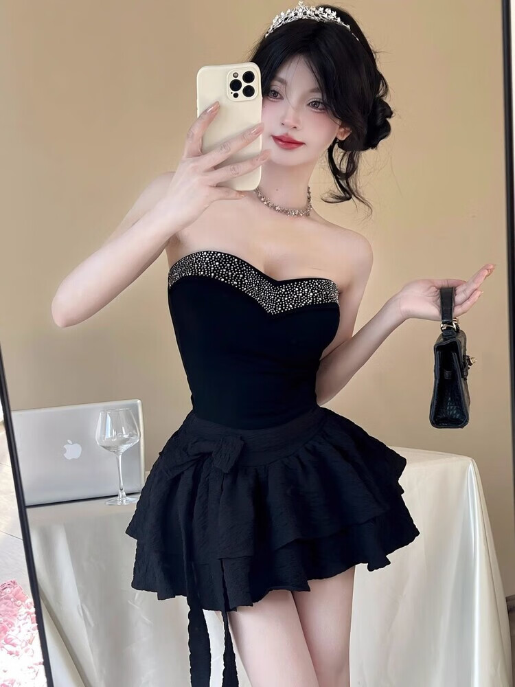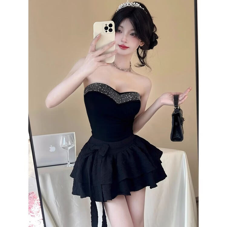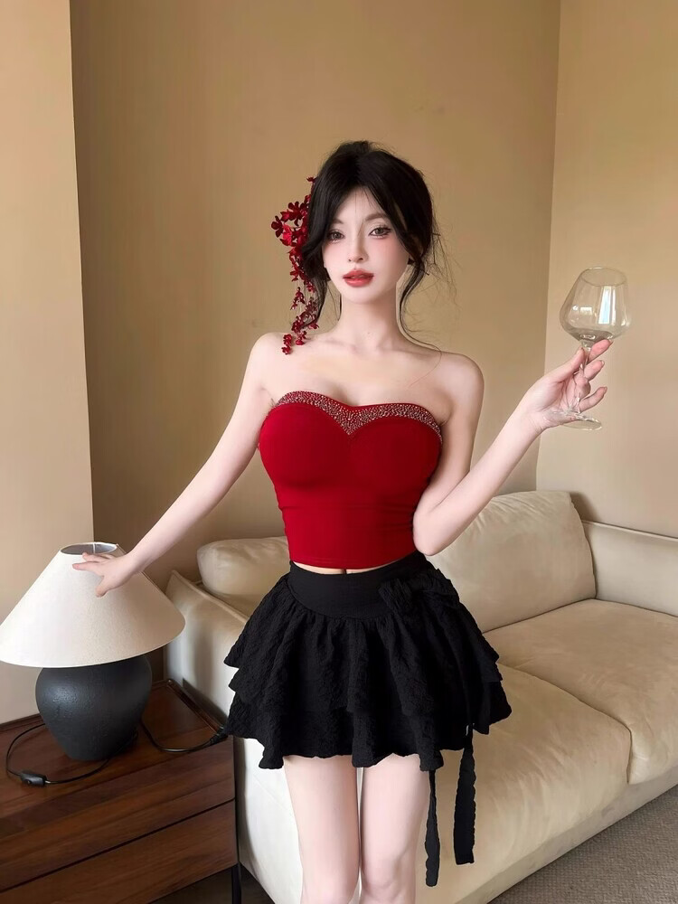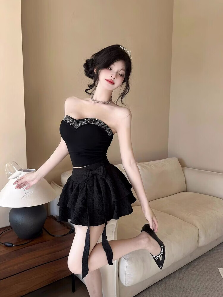Lianxin's high-end heavy-duty diamond-encrusted tube top with breast pads for women to wear outside and for hot girls to wear short bottoming shirt vest black diamond-encrusted tube top with breast pads L suitable for 100-120 Jin Jin equals 0.5 kg