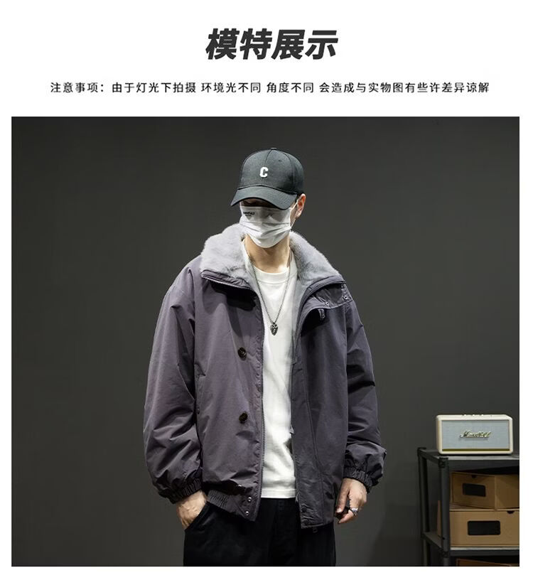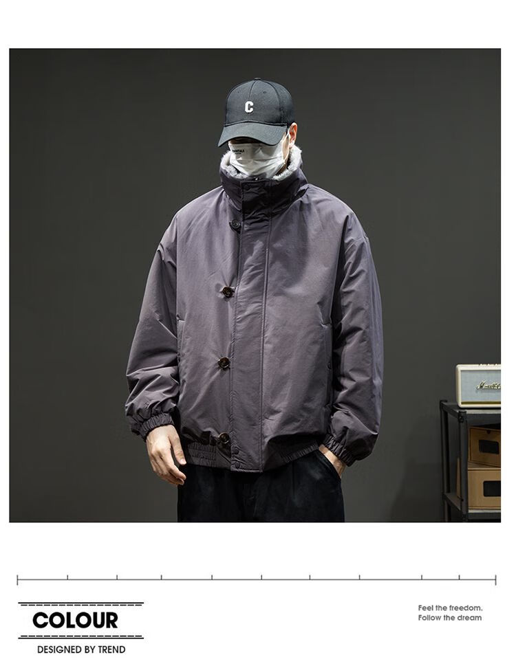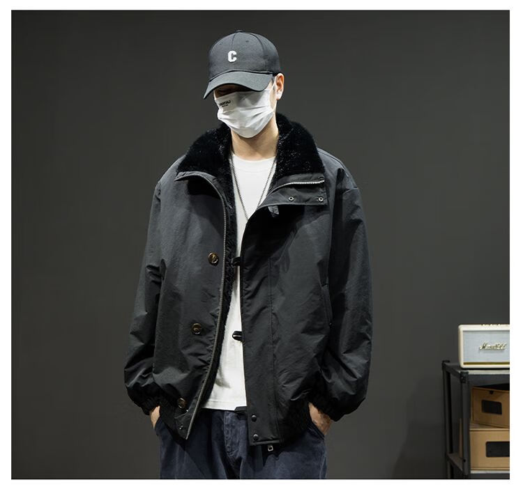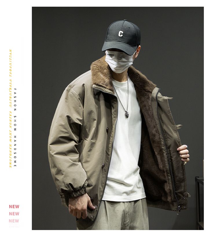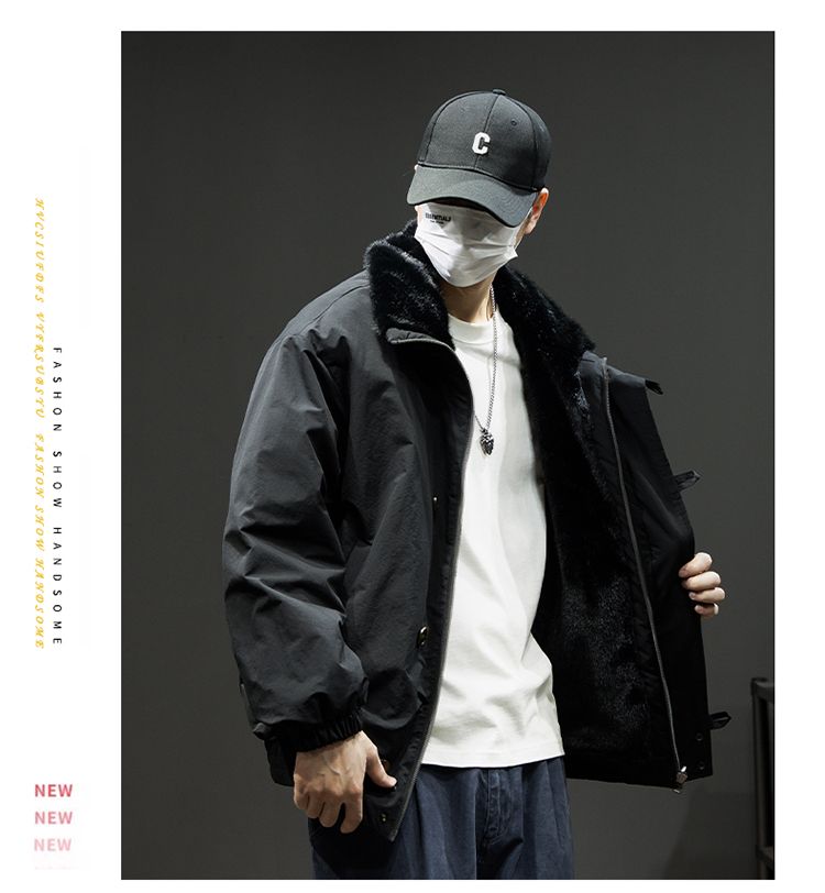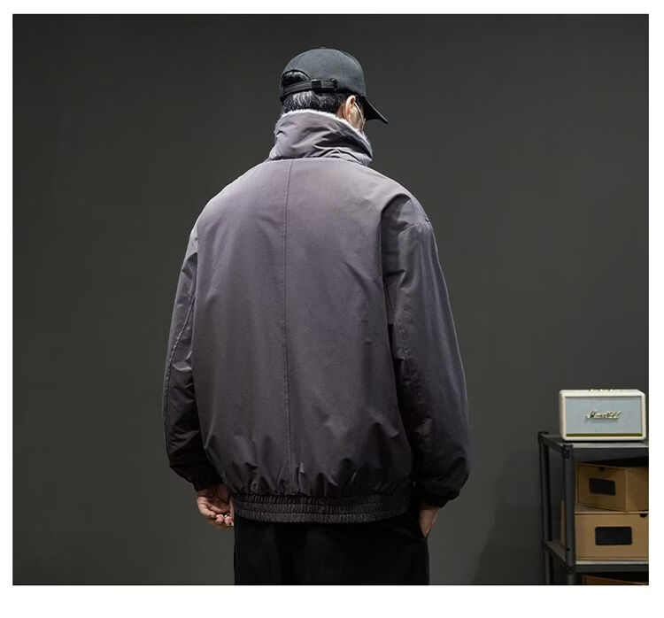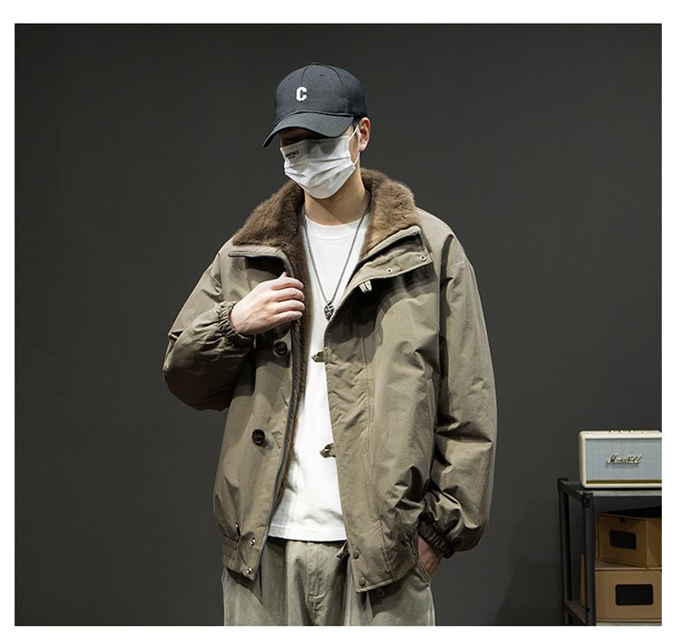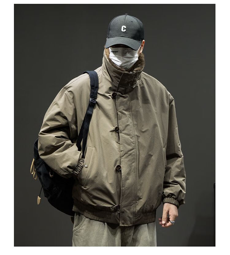 Baleno S&K American retro double-sided warm cotton coat for men in winter lapel mountain carving workwear windproof jacket for men Cocoa XL
