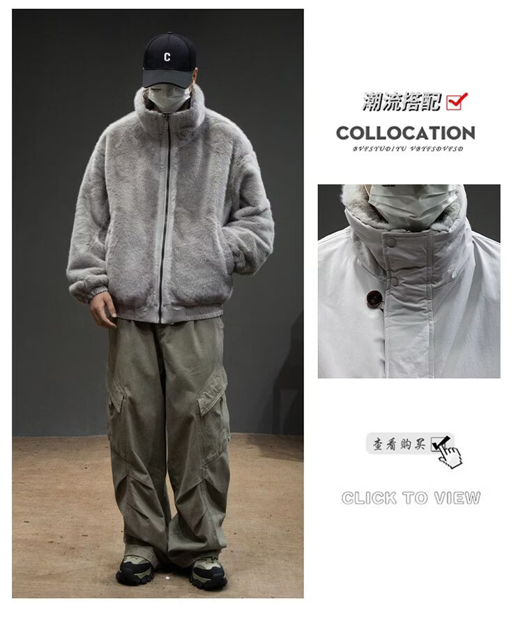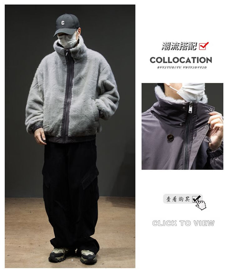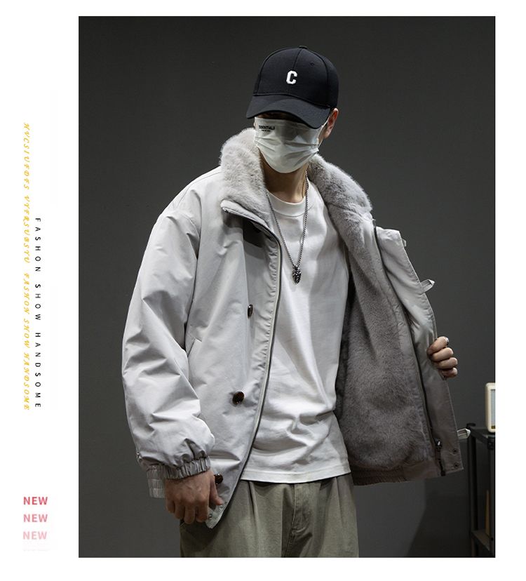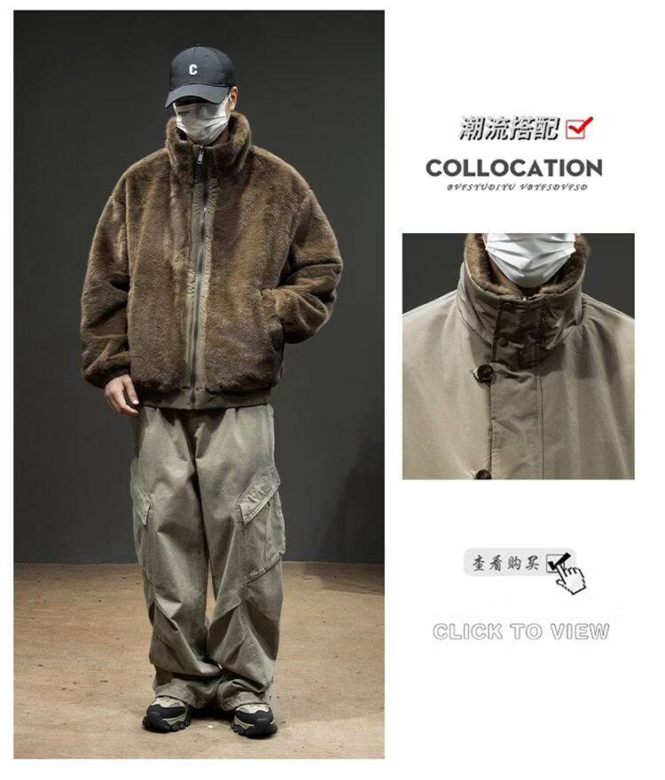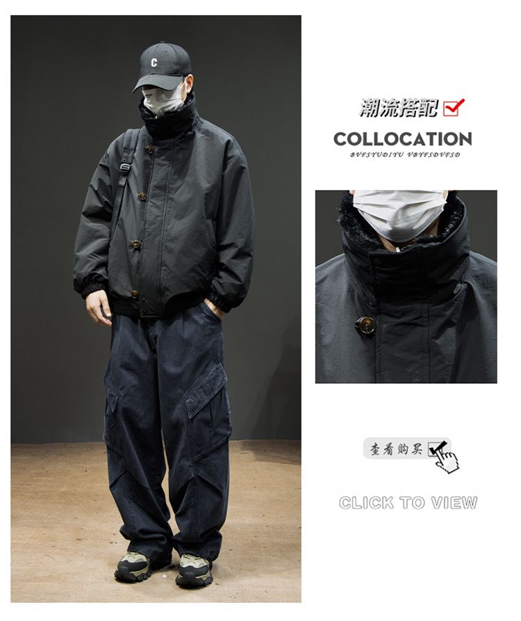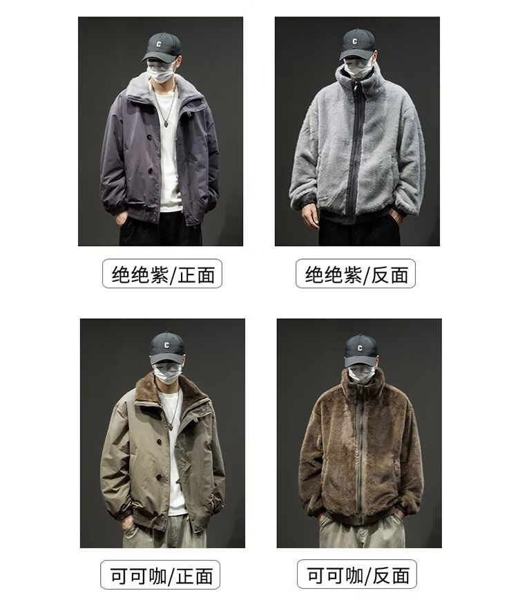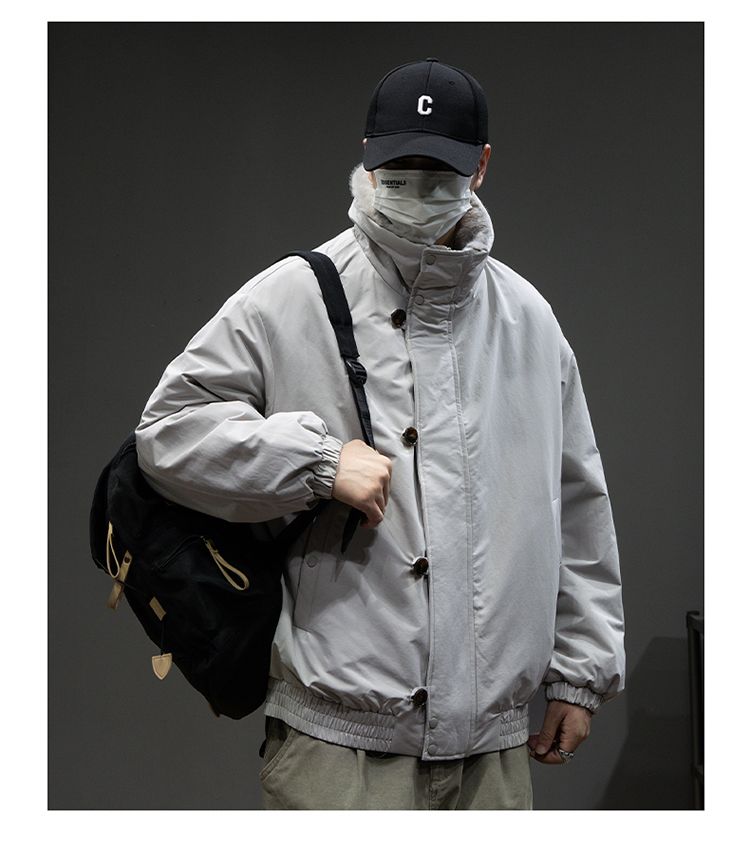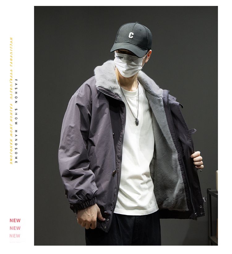 Baleno S&K American retro double-sided warm cotton coat for men in winter lapel mountain carving workwear windproof jacket for men Cocoa XL