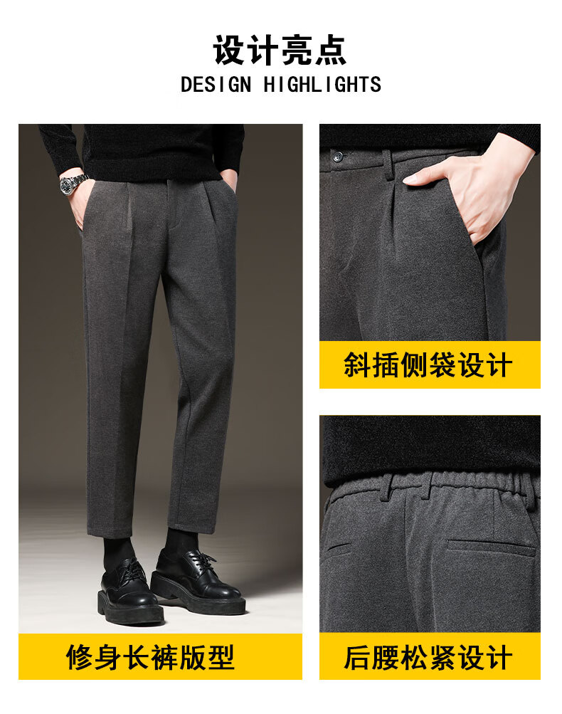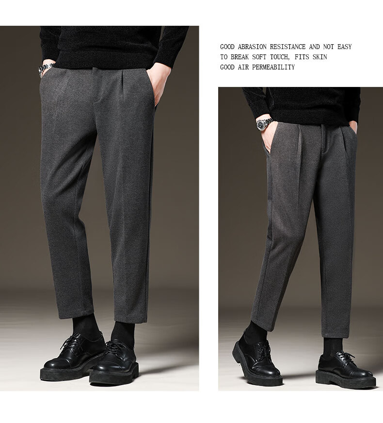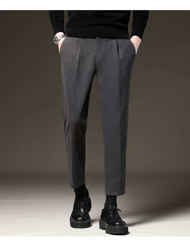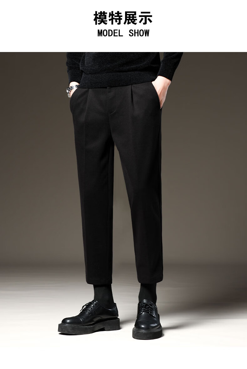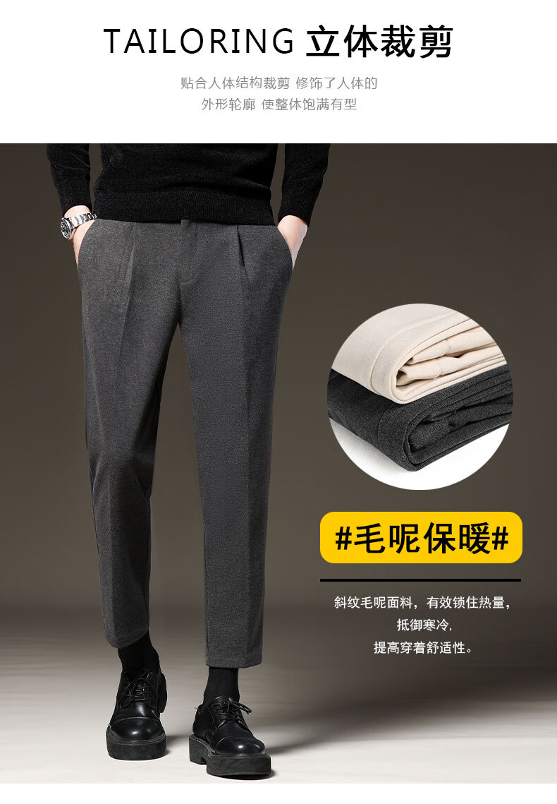 Baleno S&K autumn and winter woolen trousers men's slim trousers Korean style casual straight plus velvet drape nine-point trousers CY86 gray nine-point regular 29 110-120Jin Jin equals 0.5 kg