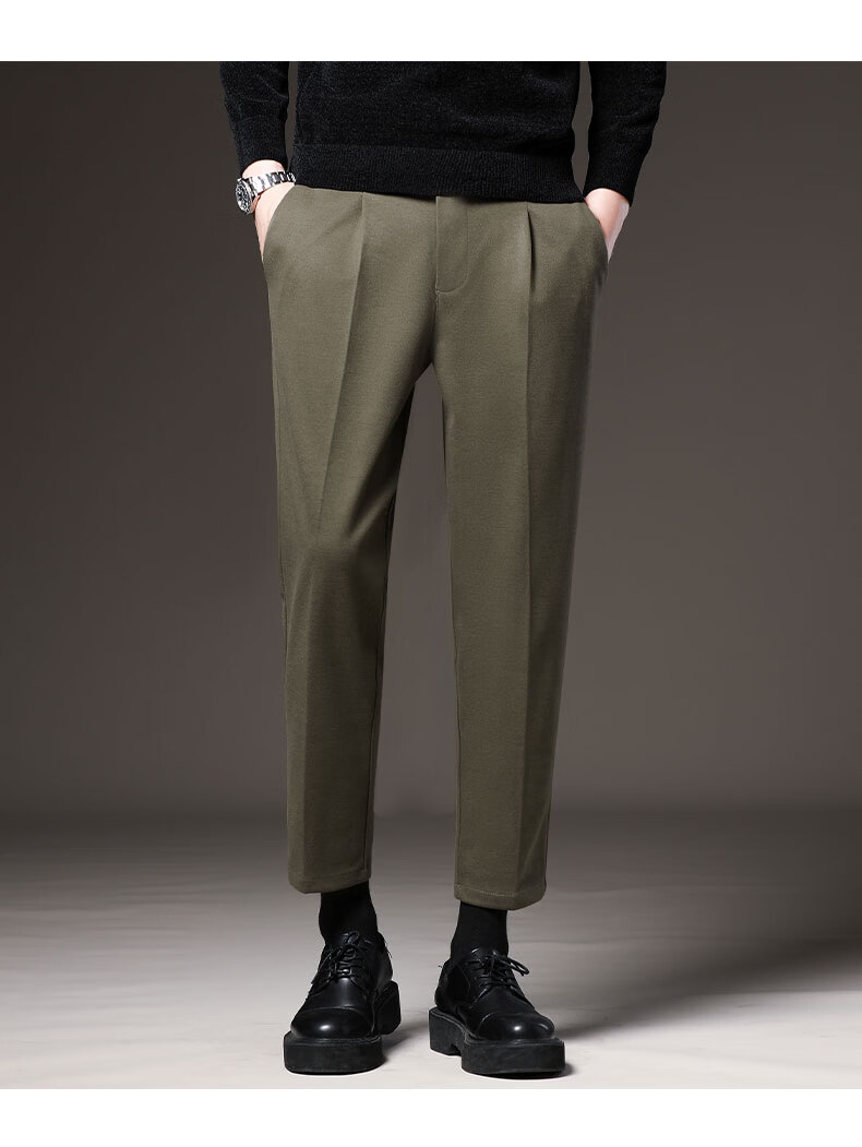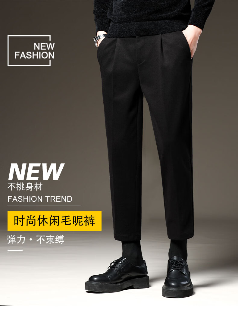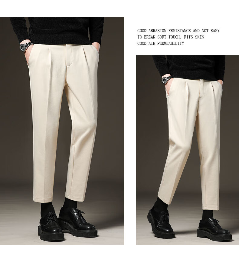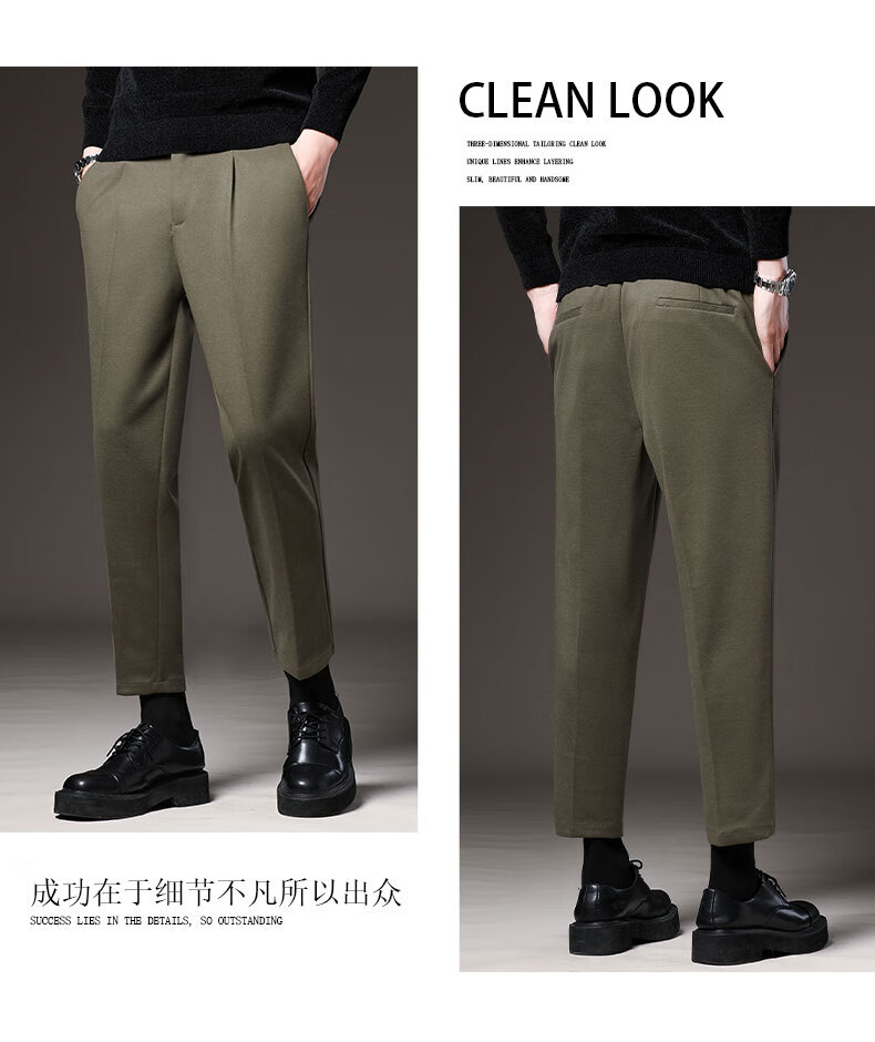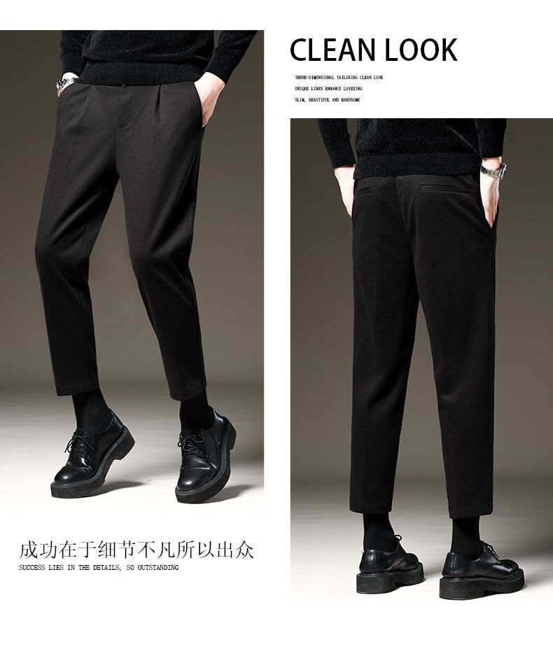Baleno S&K autumn and winter woolen trousers men's slim trousers Korean style casual straight plus velvet drape nine-point trousers CY86 gray nine-point regular 29 110-120Jin Jin equals 0.5 kg
