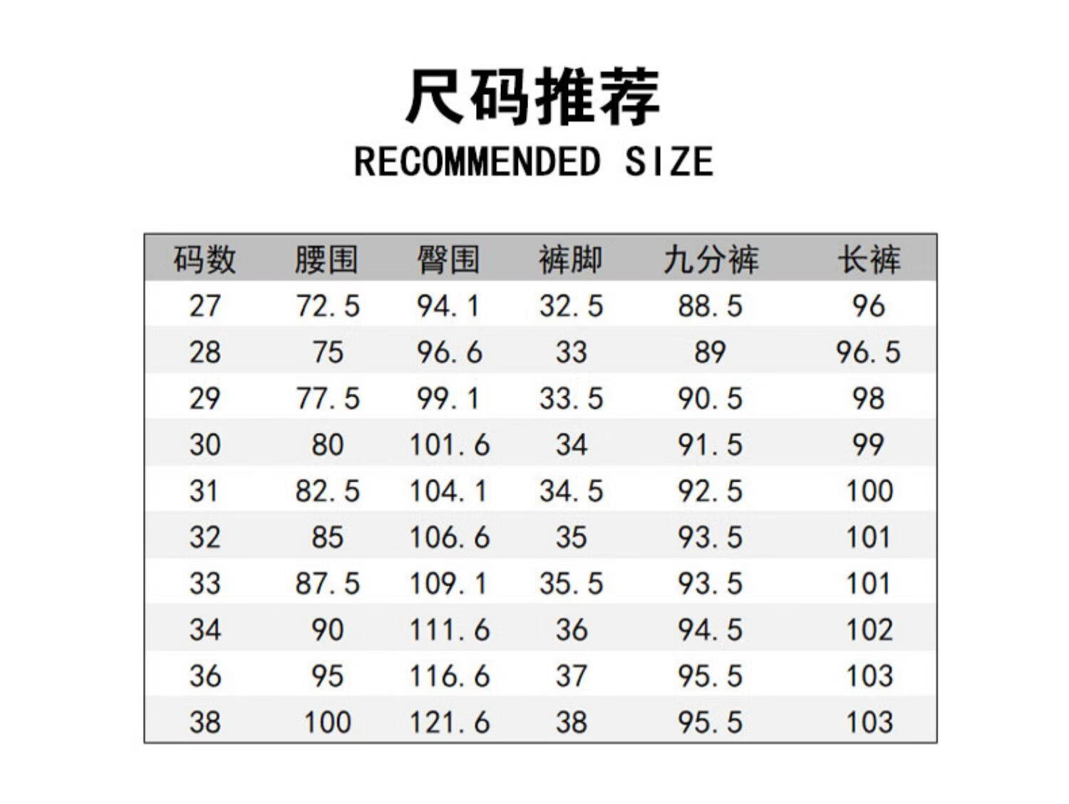 Outseam (cm) 99 cm 101.5 cm 104 cm 106.5 cm 109 cm
