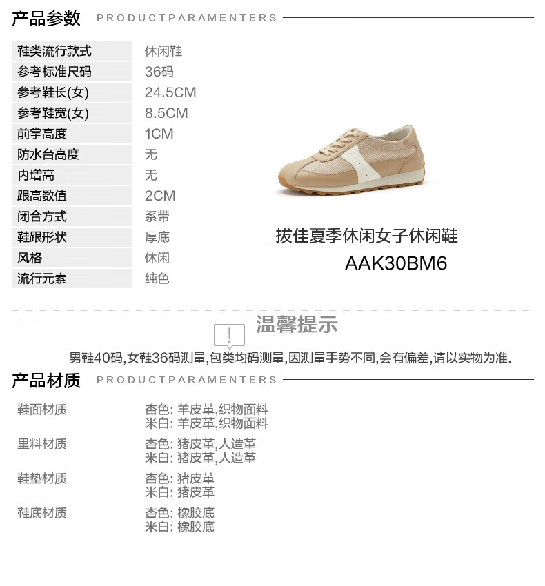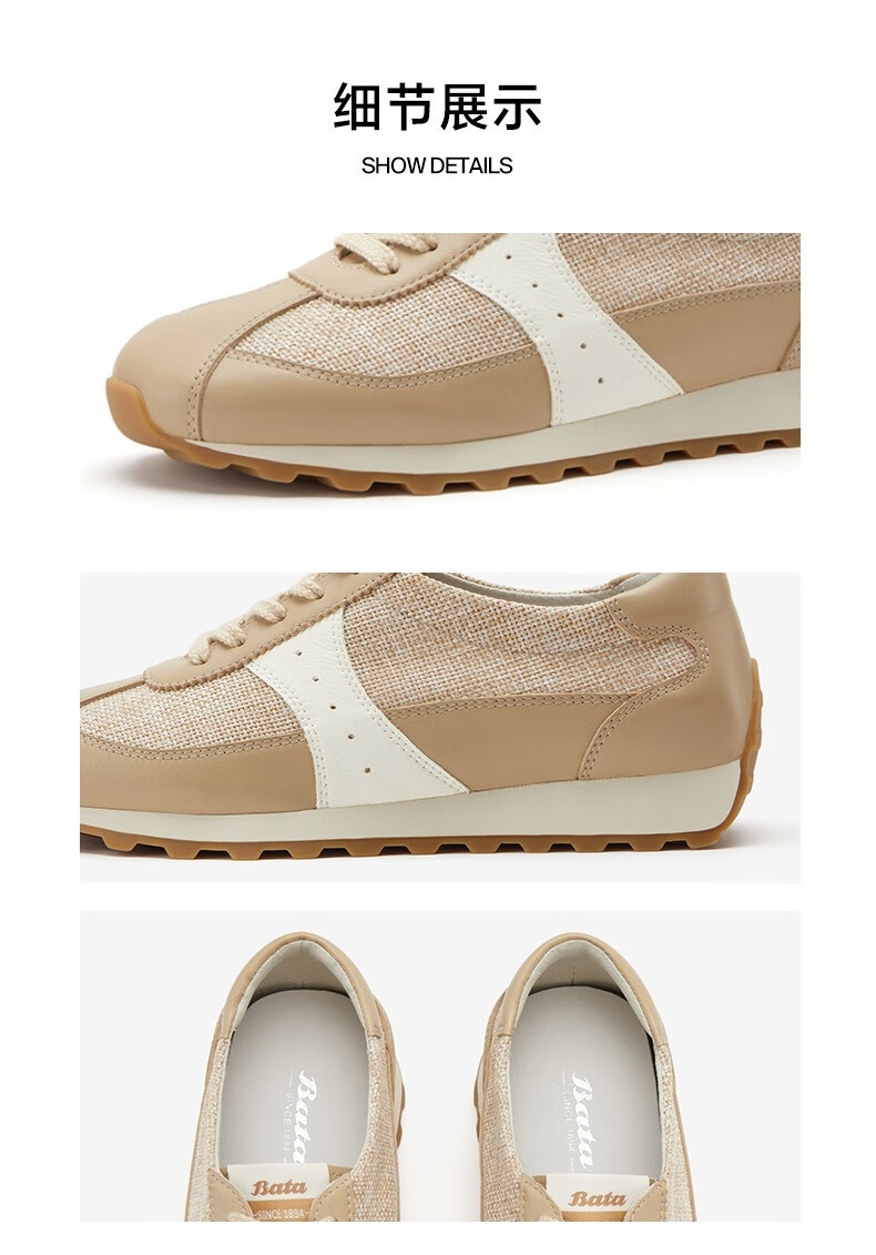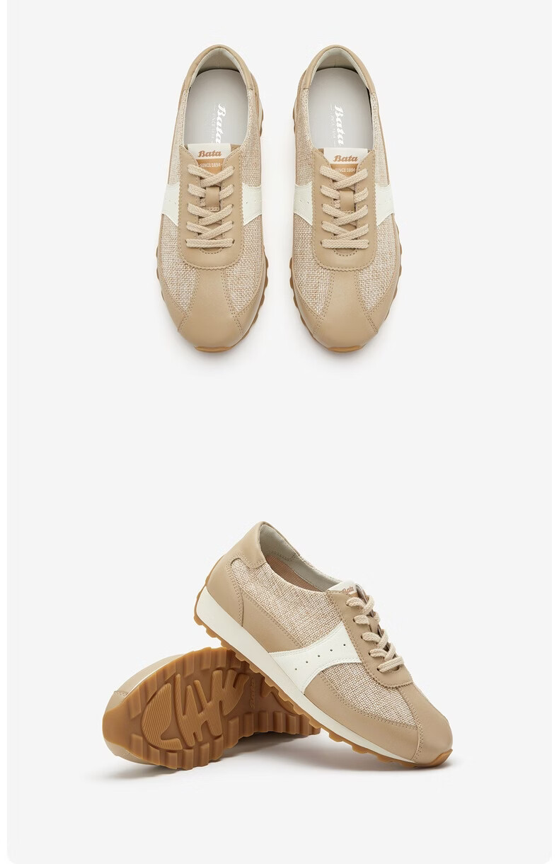 Bata muffin cheese forrest shoes for women 2026 summer shopping mall same style thick-soled moral training casual sports shoes AAK30BM6 apricot 36