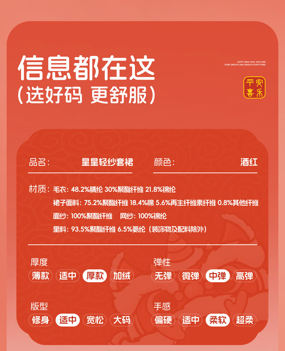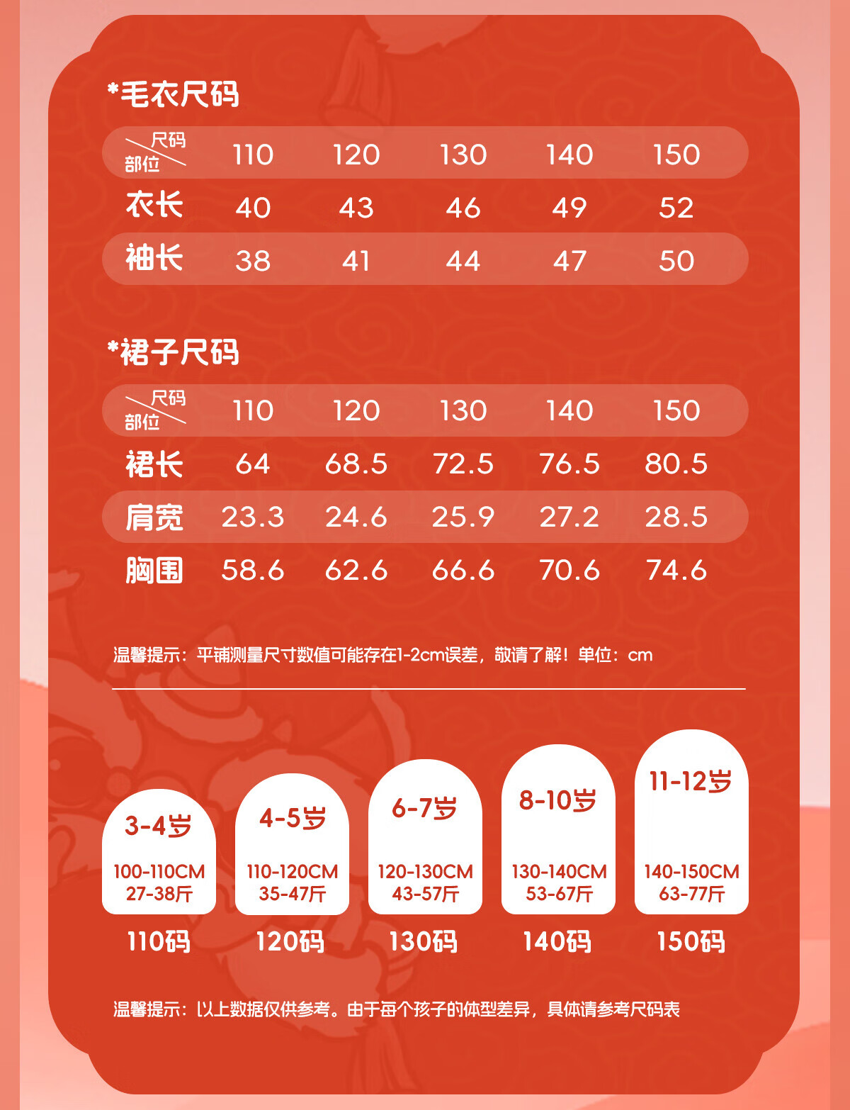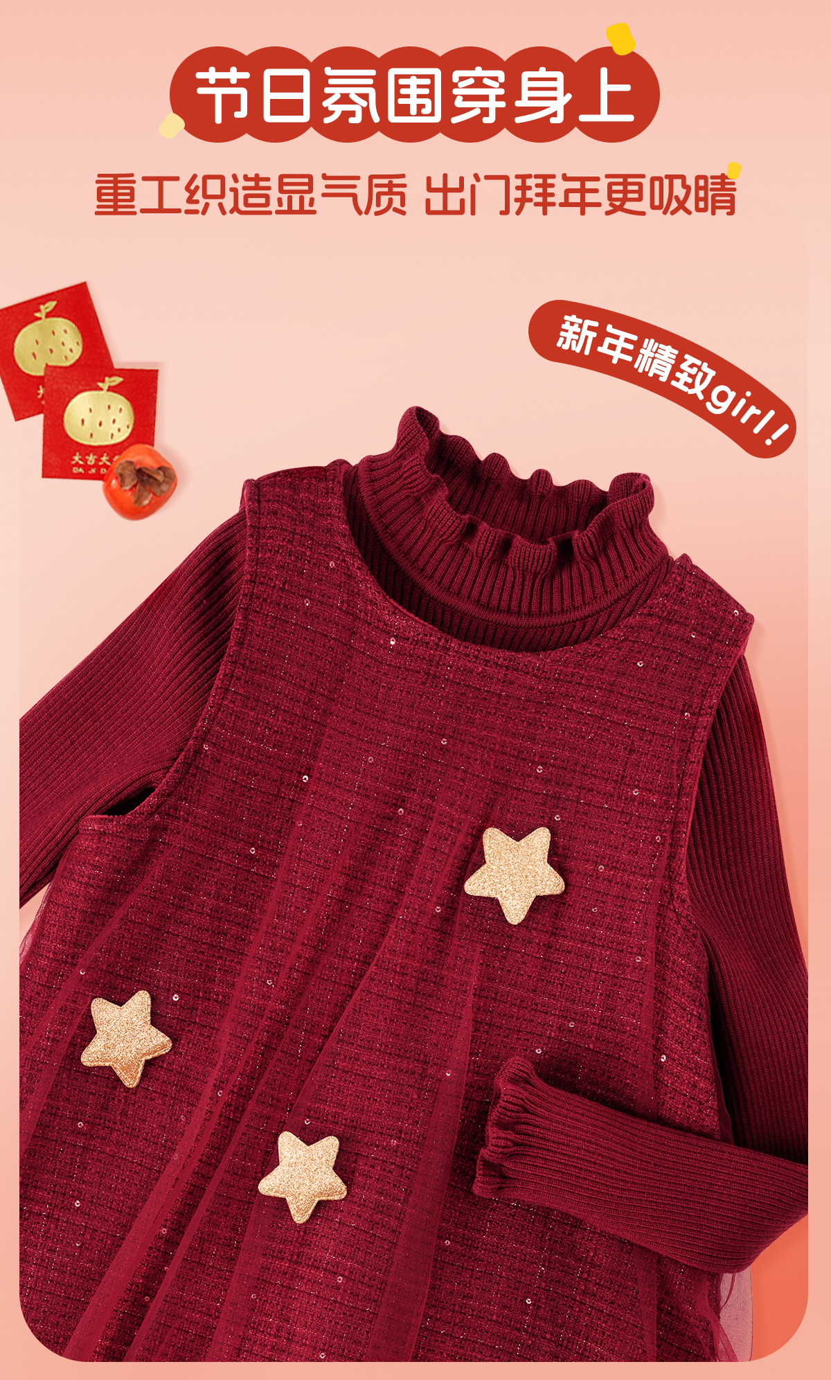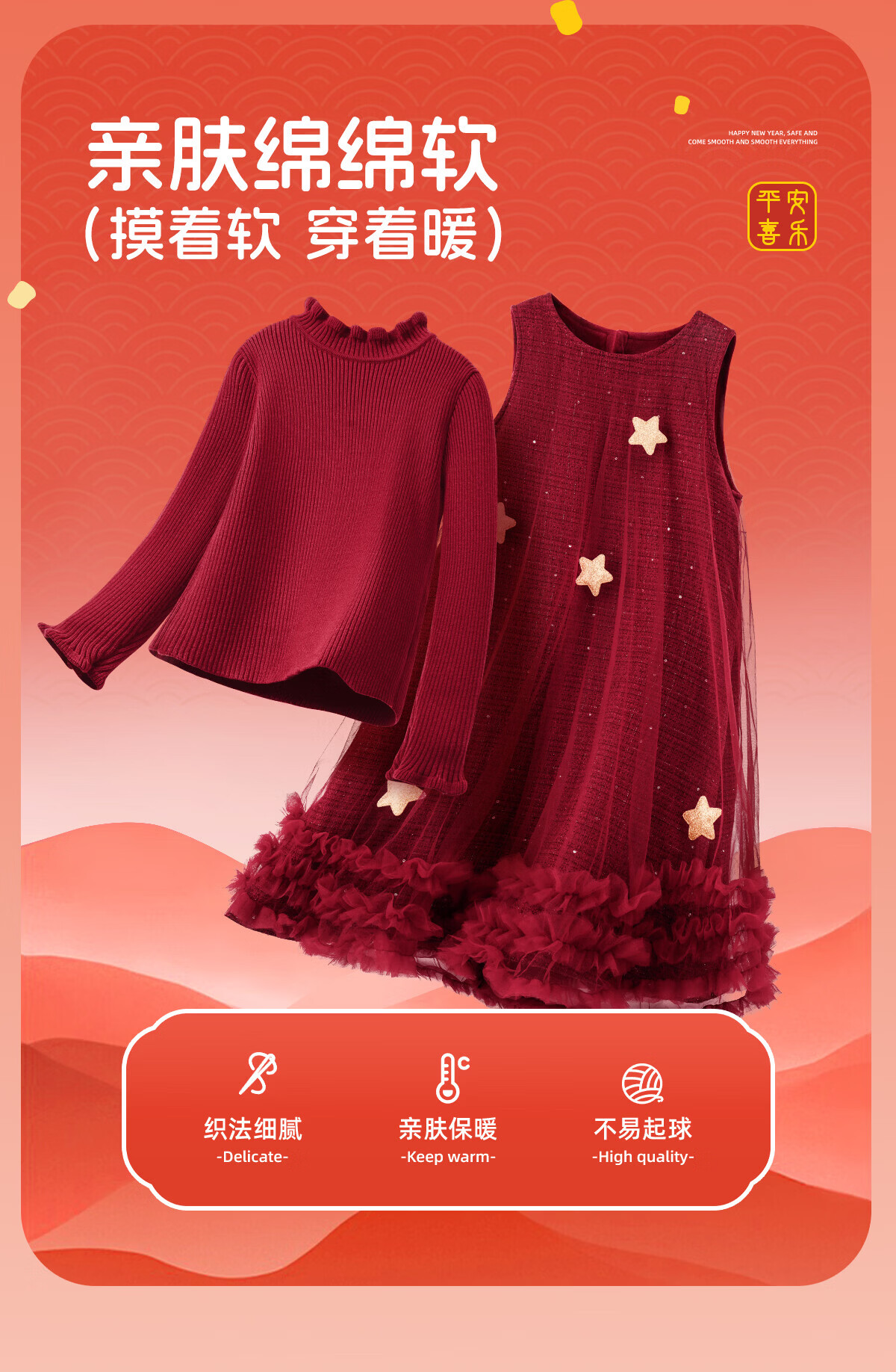 Piggy Banner (PEPCO) Girls Skirt 2026 Autumn and Winter Year of the Horse Girls New Red Skirt Children's Zodiac Long Skirt Warm Dress Star Gauze Skirt Sweater + Half Skirt/01 150 Recommended weight 68-80Jin Jin is equal to 0.5 kg