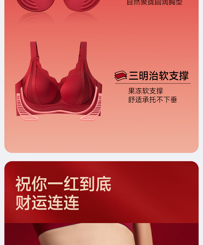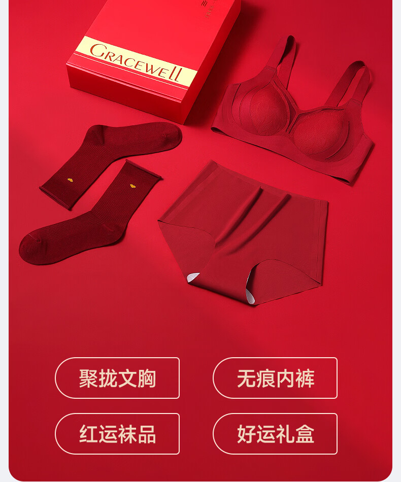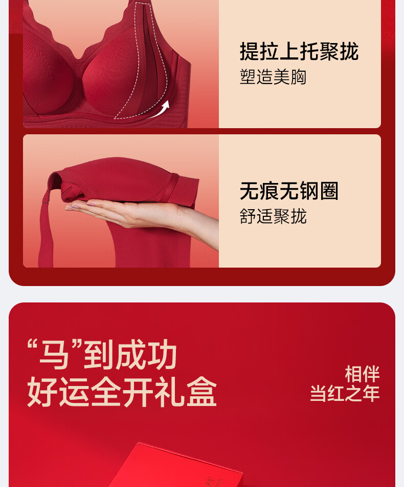 LangSha (LangSha) Zodiac Year Bra Seamless New Year of the Horse Wedding Red Gathering Anti-sagging Breast Reduction Underwear Women's Gift Box Set 776 Anchor Red Single Piece + Gift Box M 34/75ABC Recommended 80-105Jin Jin equals 0.5kg