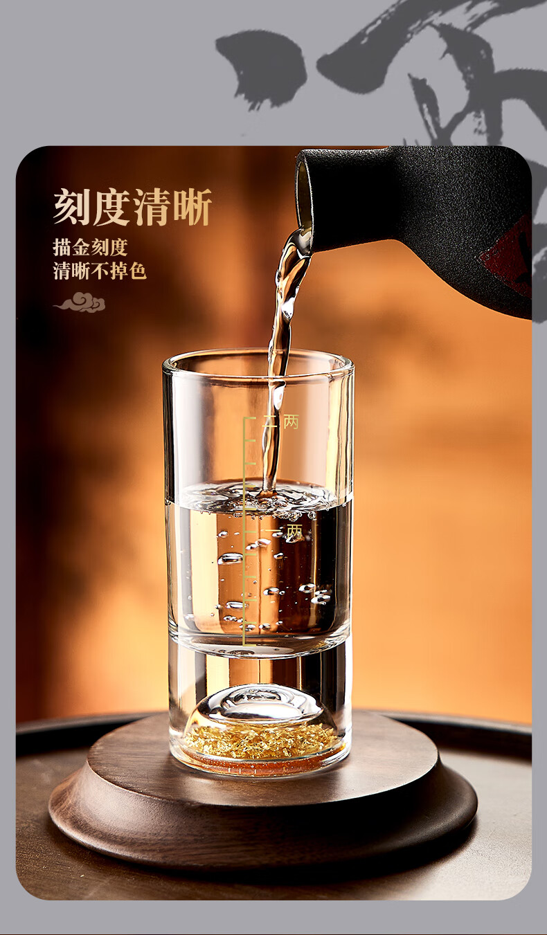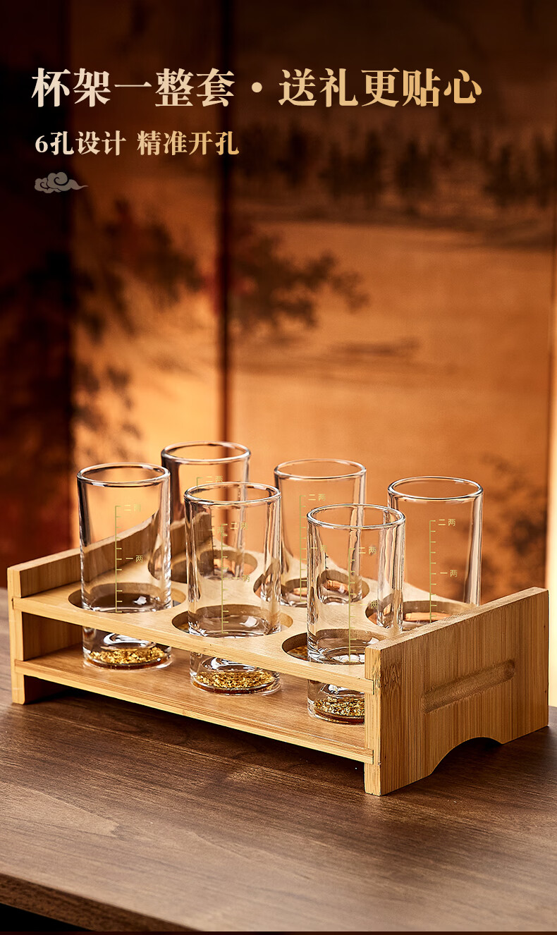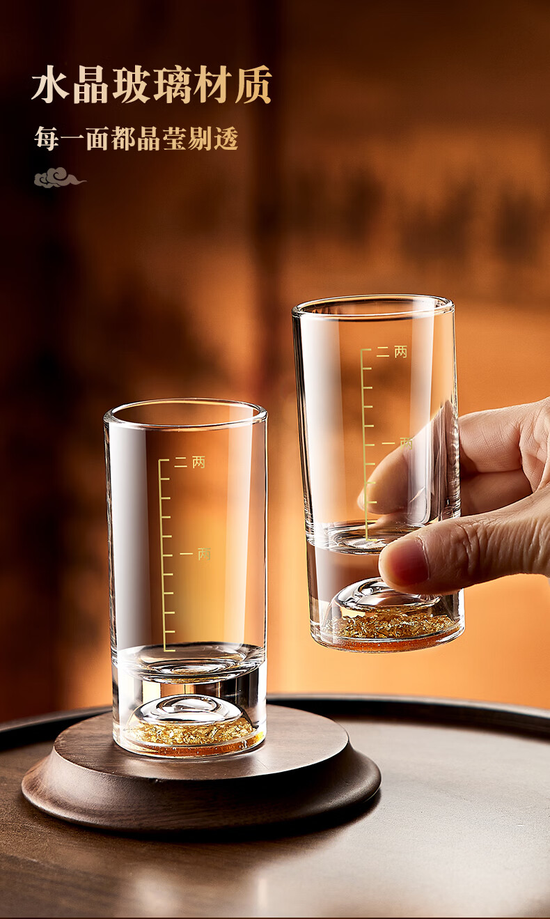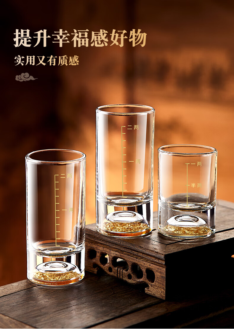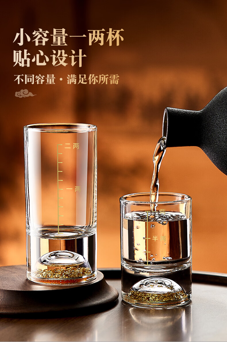 Green apple 2 liang white wine glass, light luxury high-end gold foil spirit glass, creative crystal wineware set, Chinese 2 liang wine tasting cup, 2 liang gold foil white wine glass, six-pack