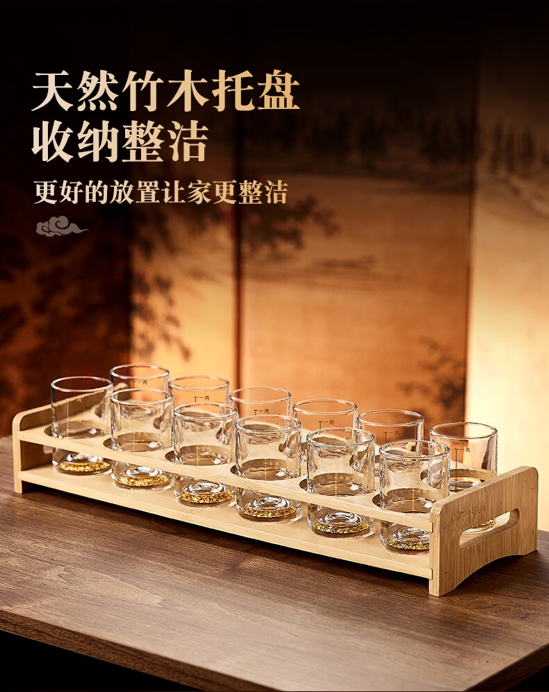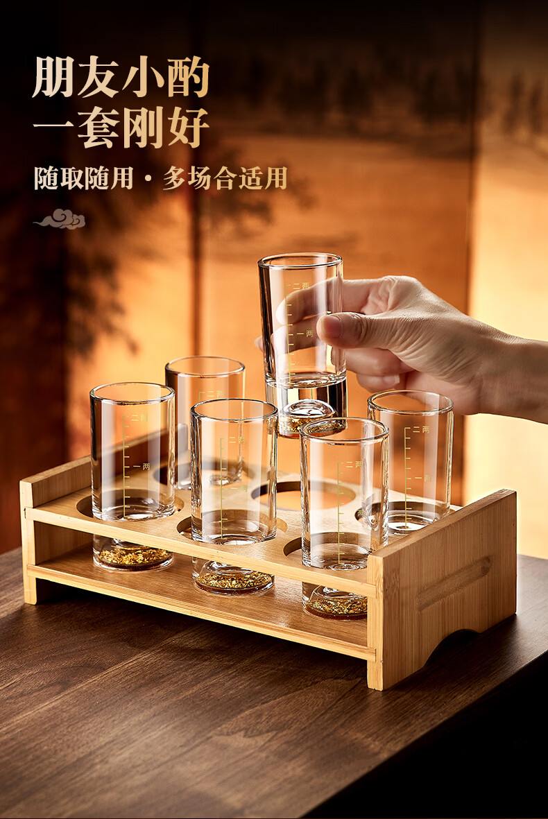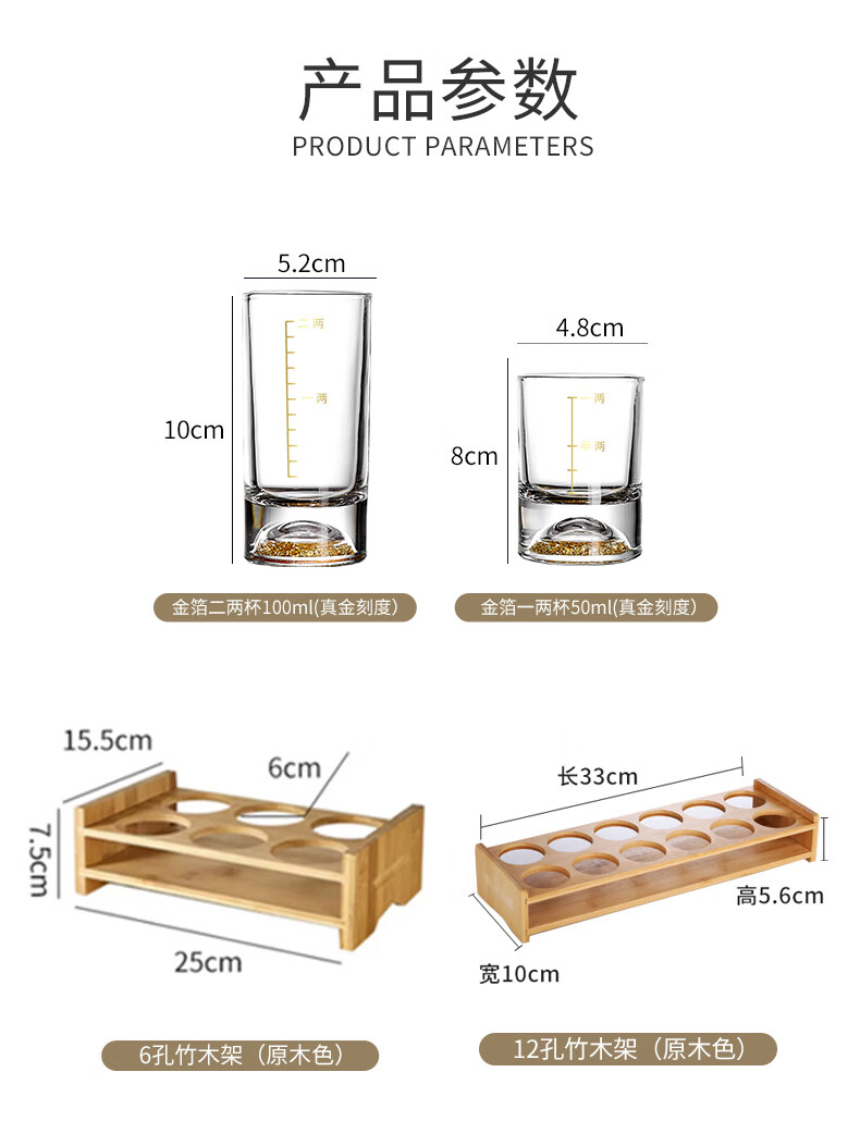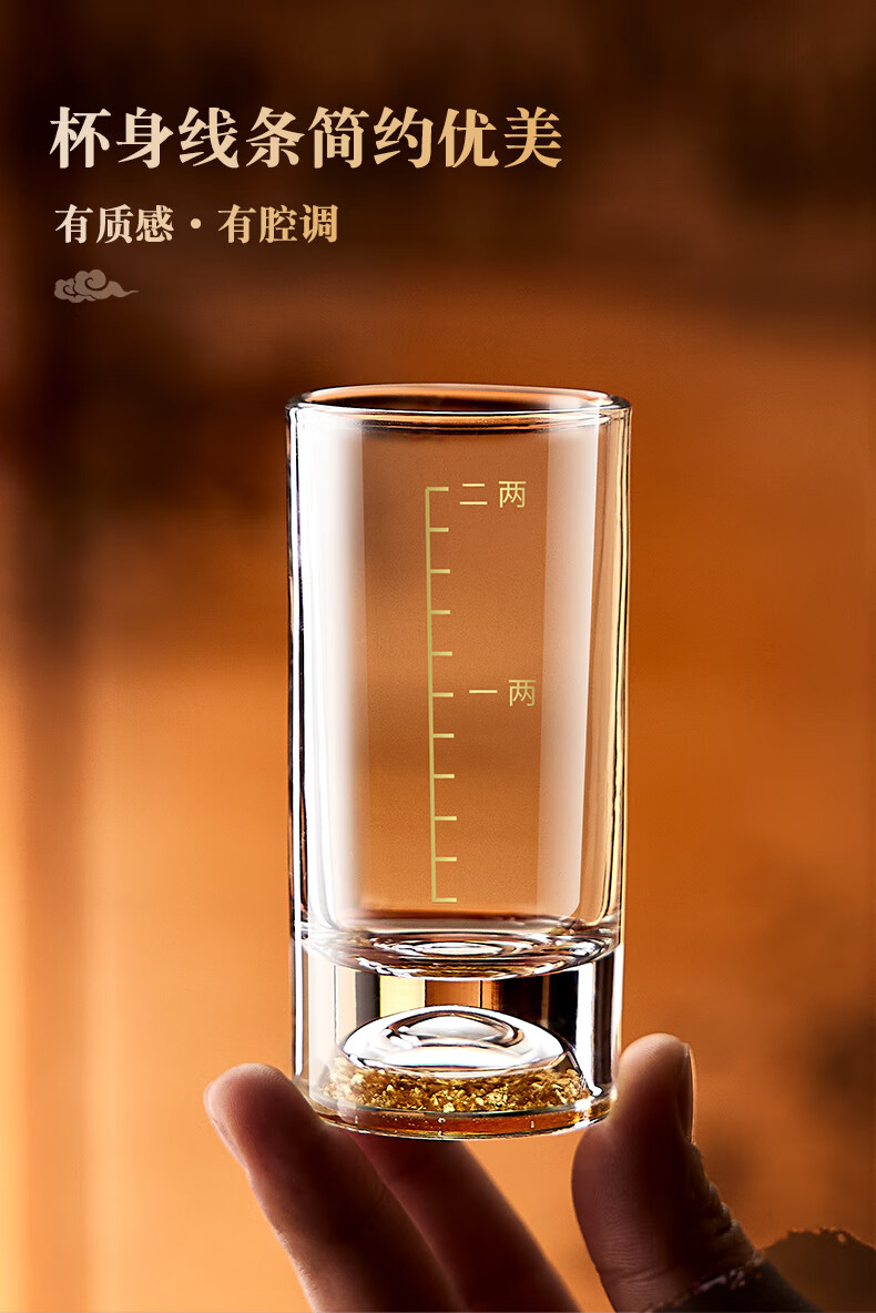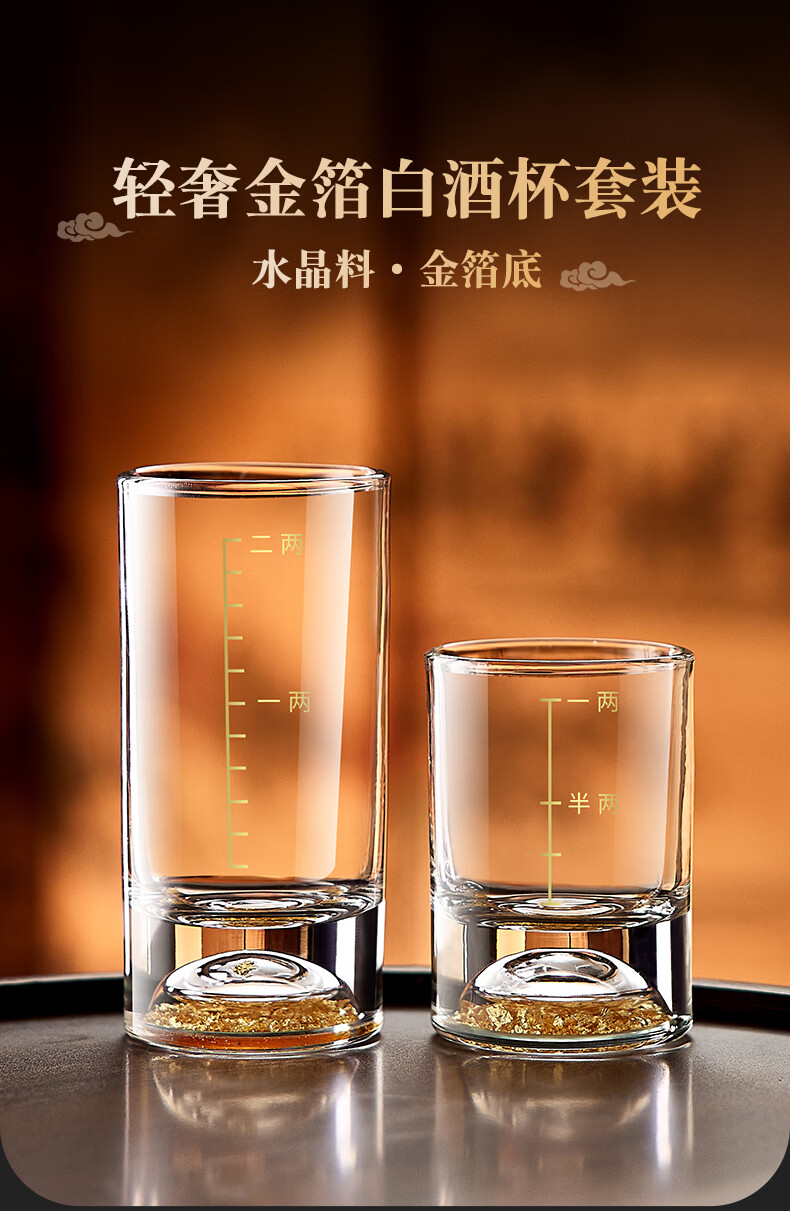 Green apple 2 liang white wine glass, light luxury high-end gold foil spirit glass, creative crystal wineware set, Chinese 2 liang wine tasting cup, 2 liang gold foil white wine glass, six-pack