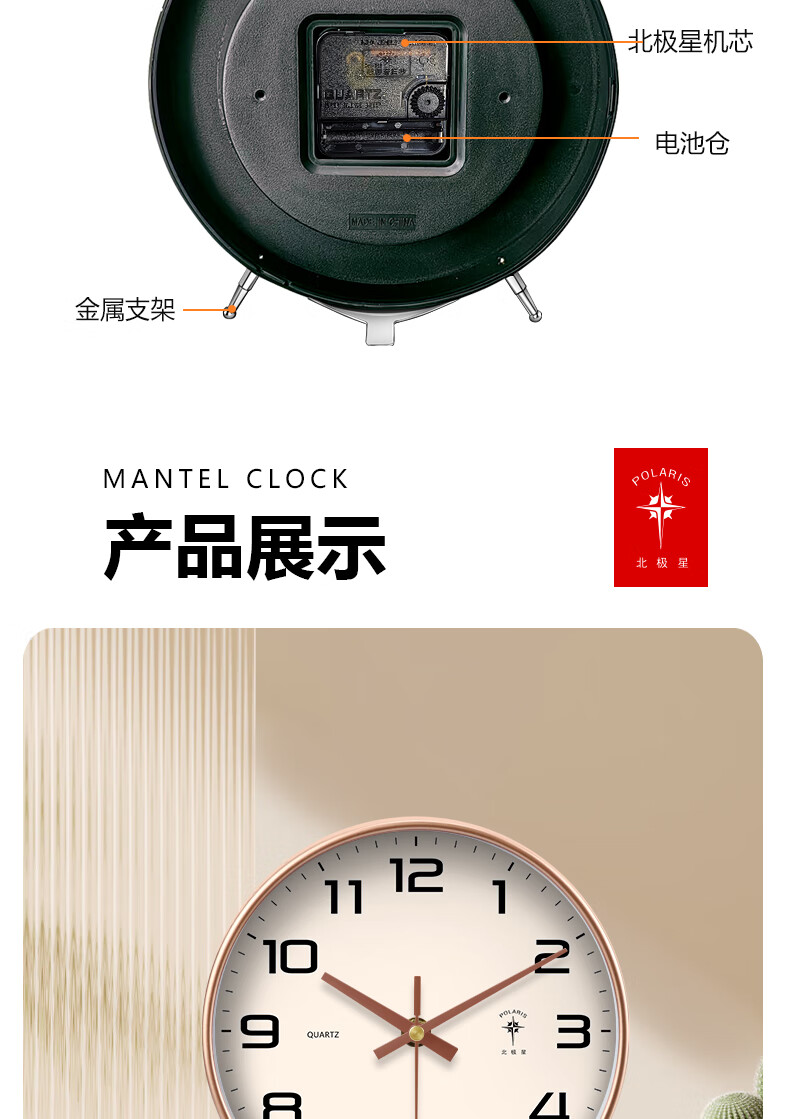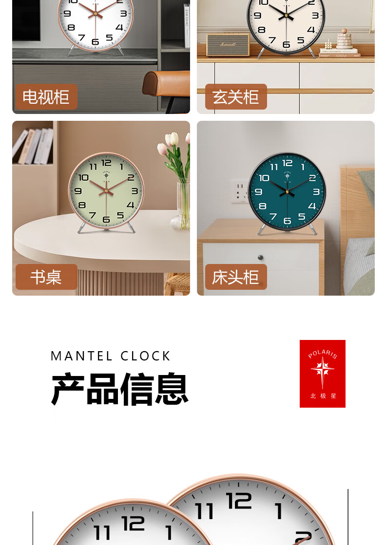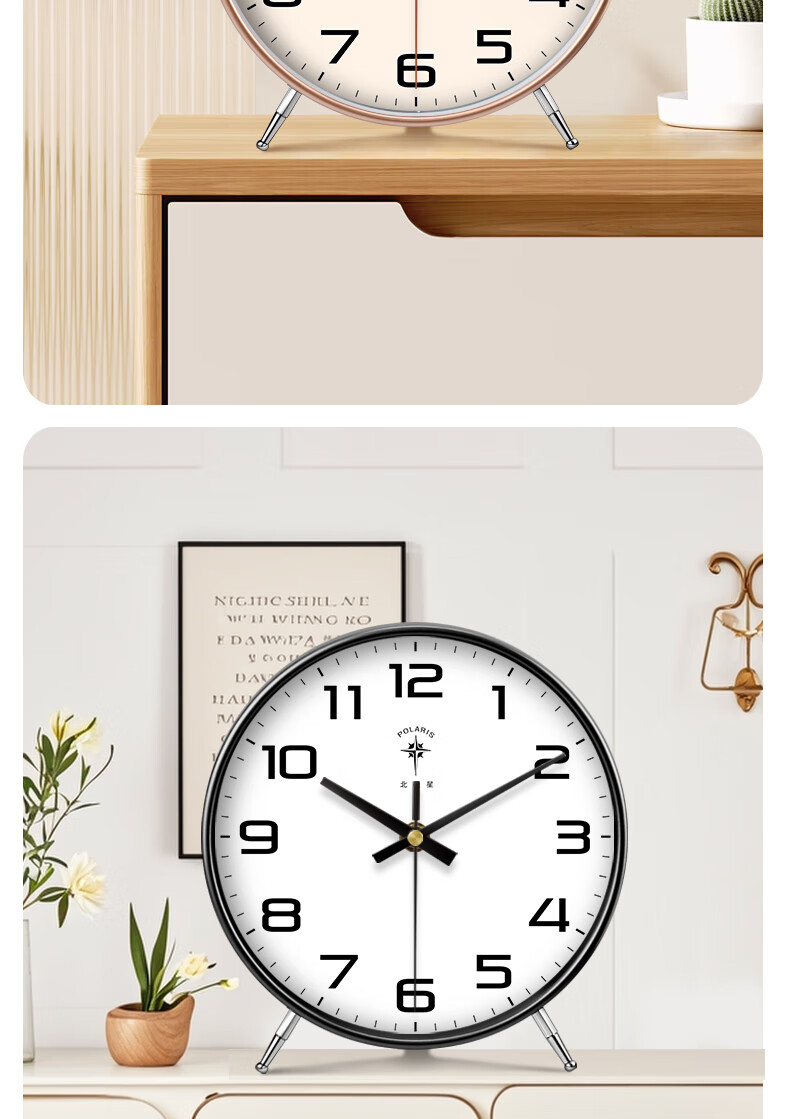 Polaris Nordic Ornament Table Clock Modern Simple Clock Bedroom Bedside Silent Desktop Desktop Solid Color Atmospheric Clock Polaris Constellation Clock 043 Black Ordinary Movement 8 inches in diameter 20 cm