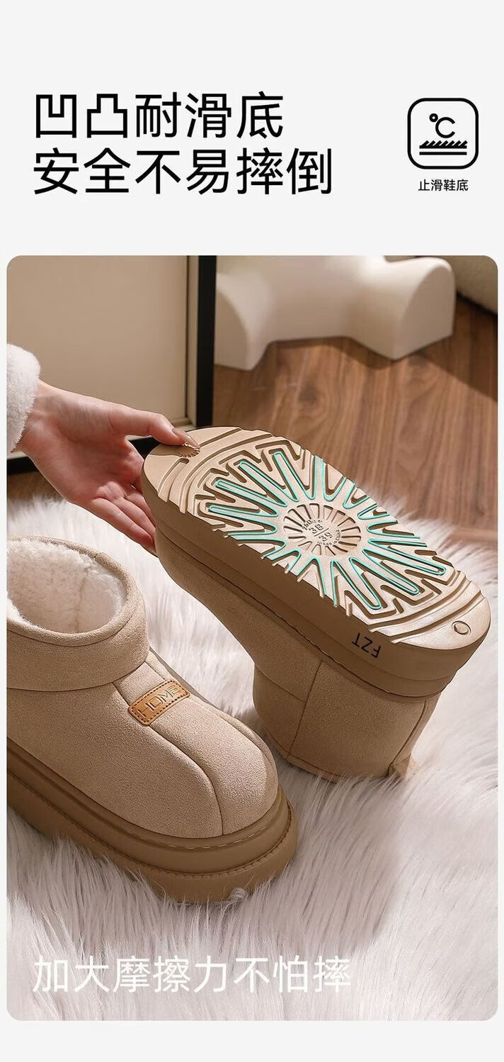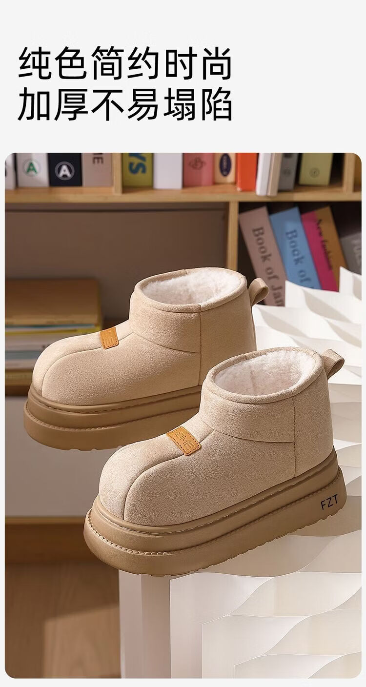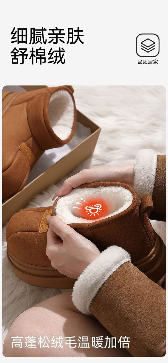Red bean high-top cotton slippers for women 2025 autumn and winter new style warm plus velvet thick-soled heel can be worn outside non-slip cotton shoes for women brown 36-37 regular size