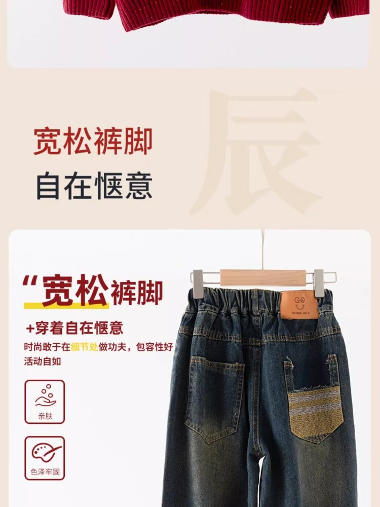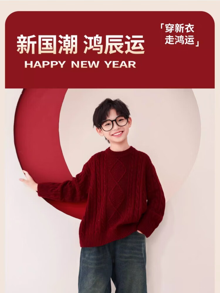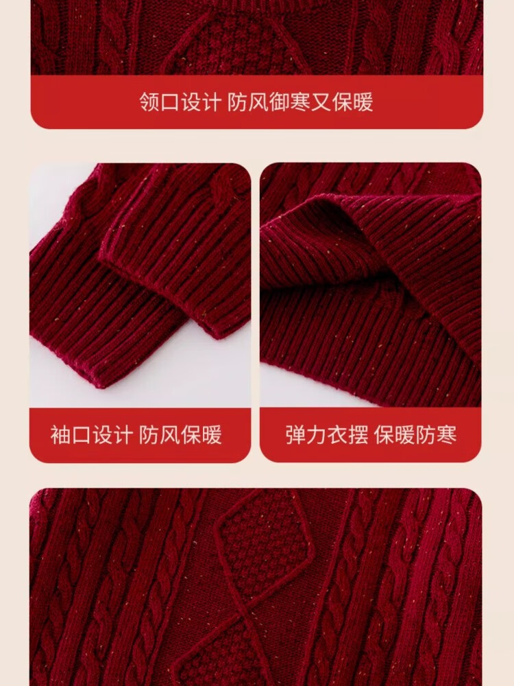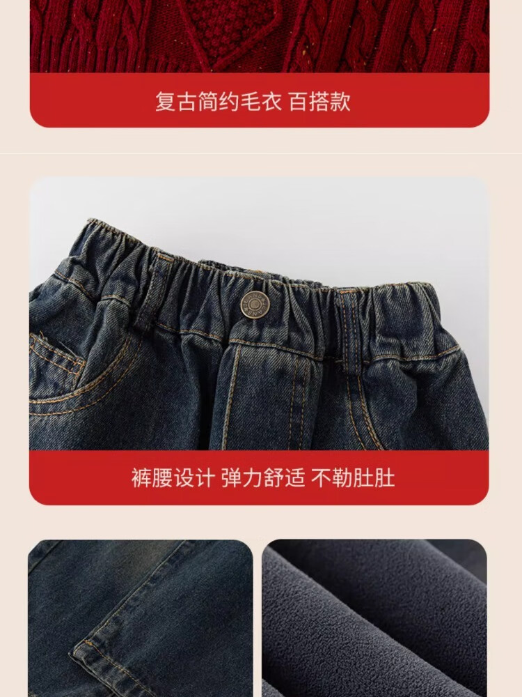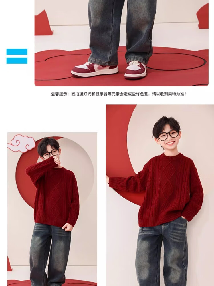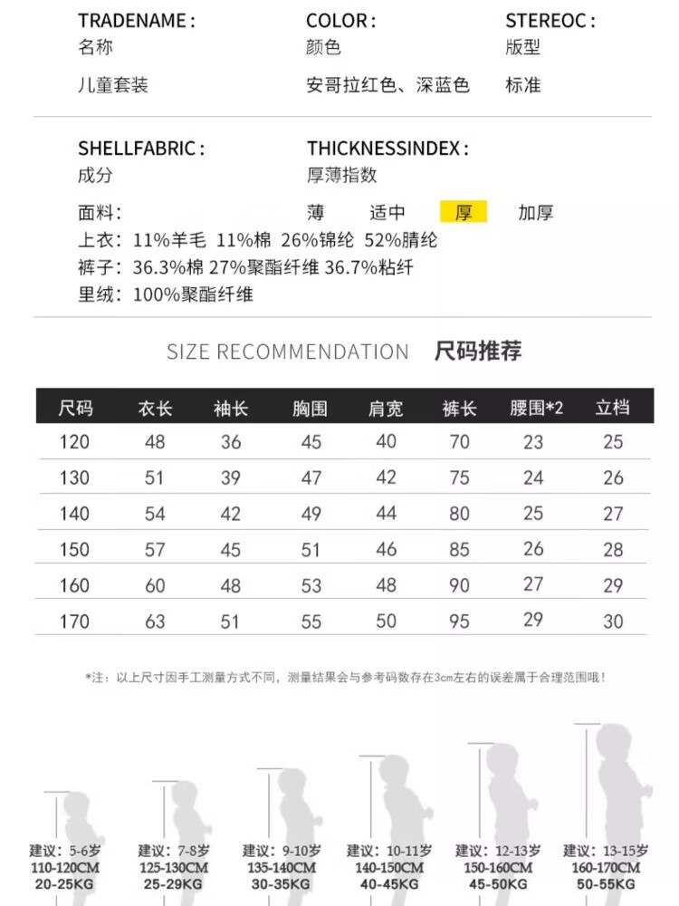 I.KARNOW Boys New Year Suit 2025 Winter New Year Clothes Big Children Red Sweater Zodiac Year Children New Year Clothes Plus Velvet 19741 Angora Red + 15436 Black Velvet Scimitar Pants 120
