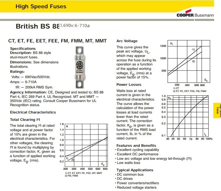 Newly imported American Bussmann fuse Bs88 4 fuse 63Fe 690V semiconductor protection 45A