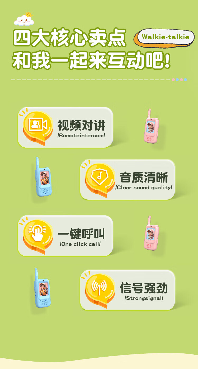 Children's walkie-talkie can video parent-child interaction wireless long-distance conversation baby mini phone wireless conversation conversation toys boys and girls gifts KS2 pink and blue pair - flagship video call (no fees required)