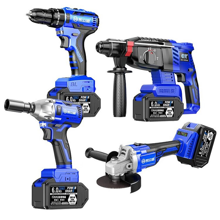 Yusenyi lithium battery rechargeable brushless air gun wrench combination, one electric and one rechargeable angle grinder + lithium electric drill