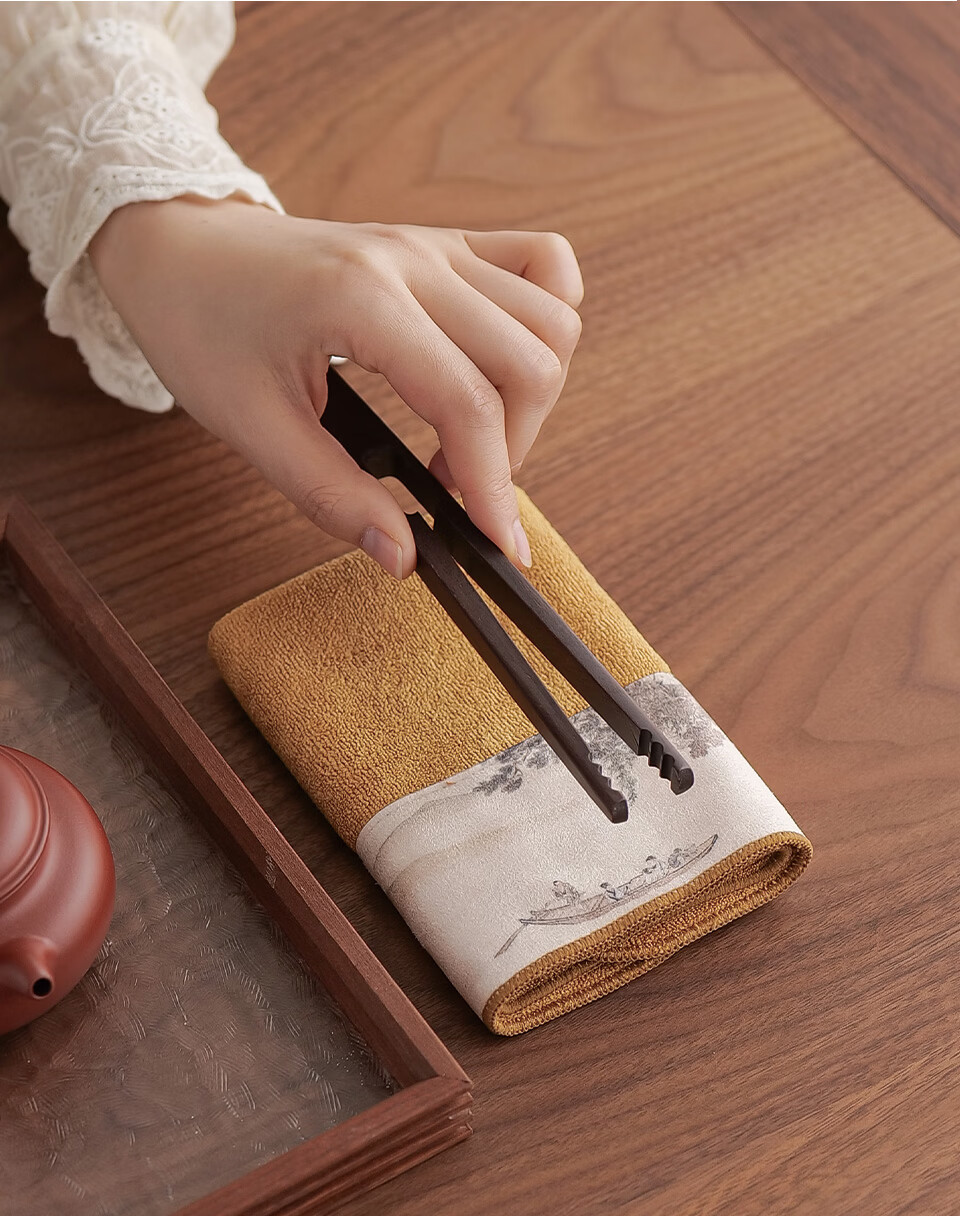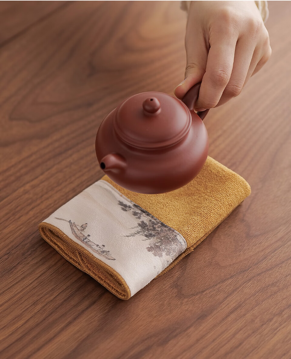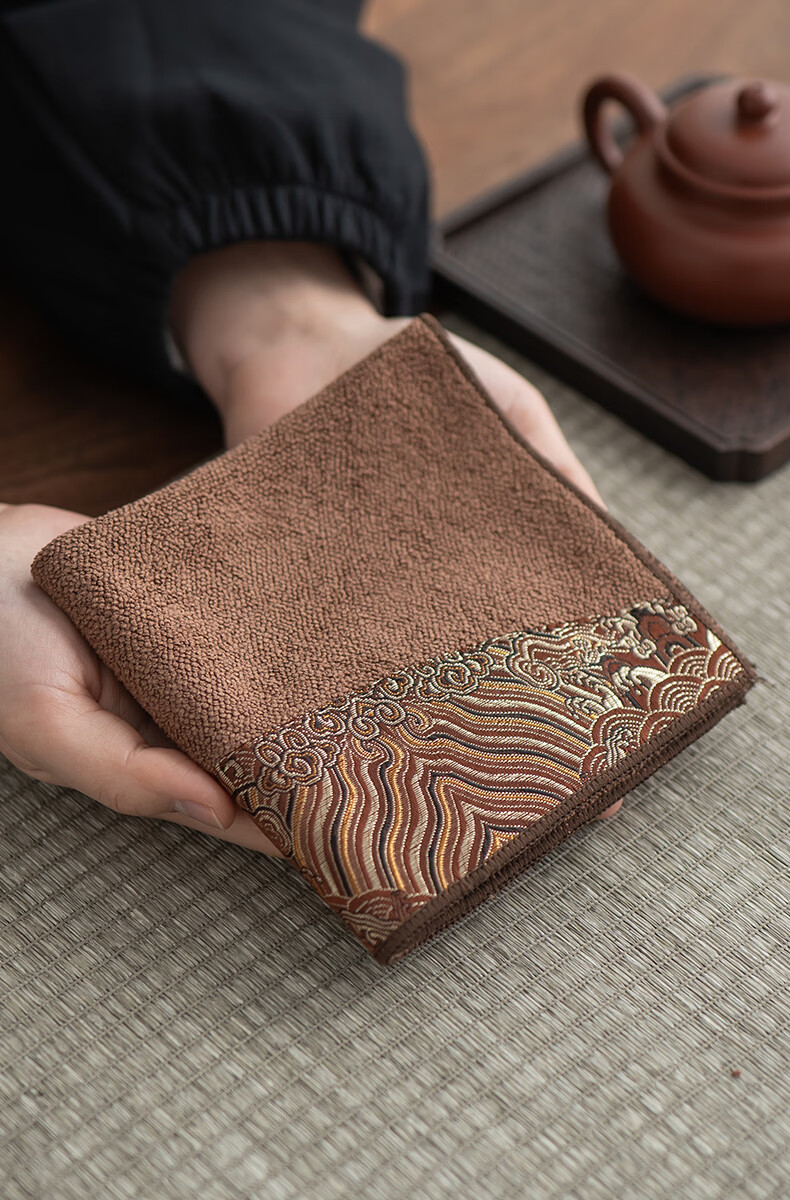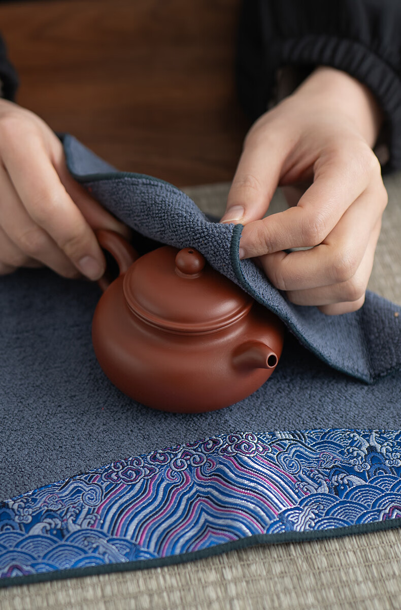 Fat Donglai's same tea towel, tea cloth, painted thickened tea towel cloth, absorbent tea table cloth, special tea towel, Kung Fu tea set with solid color soft tea towel (light blue)