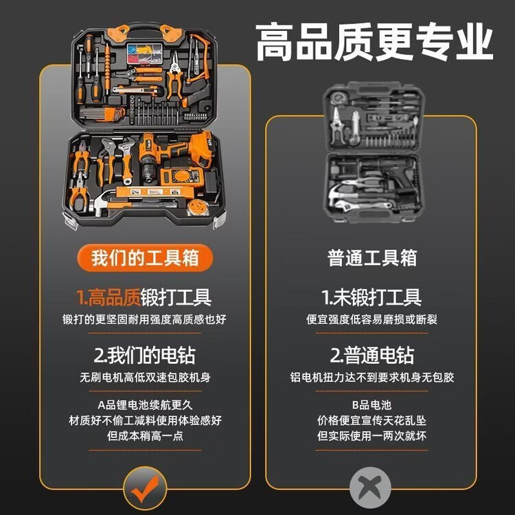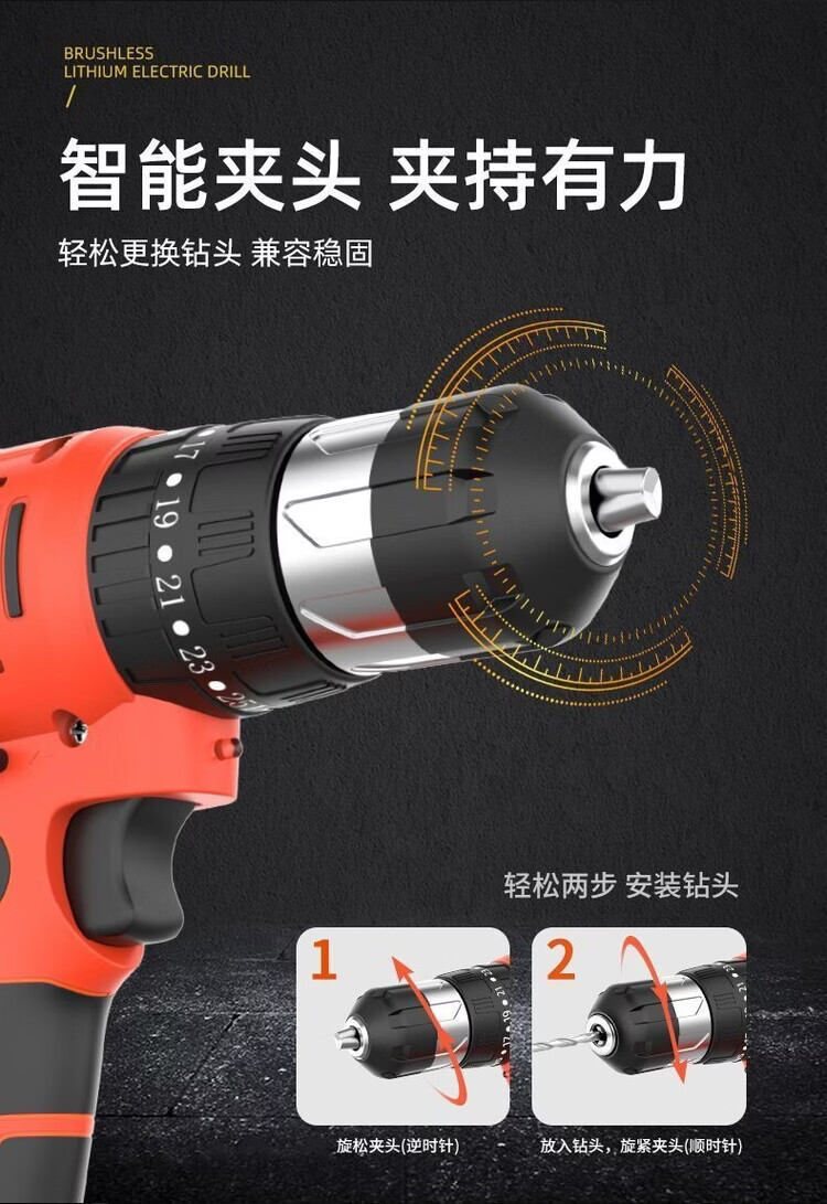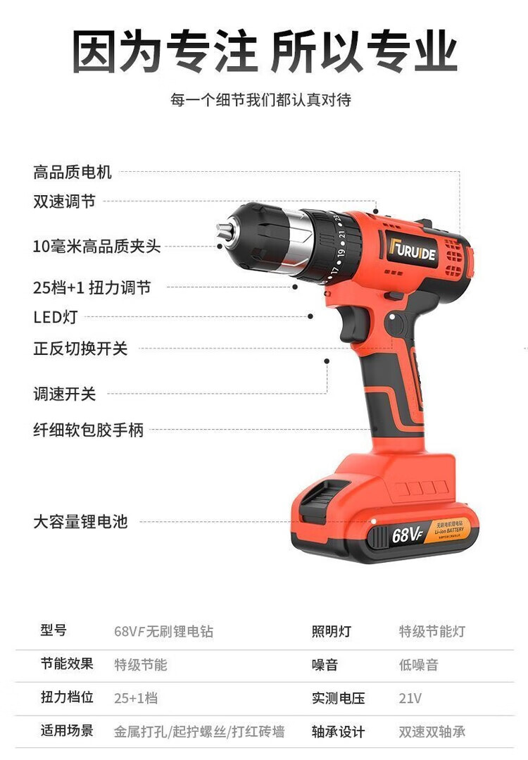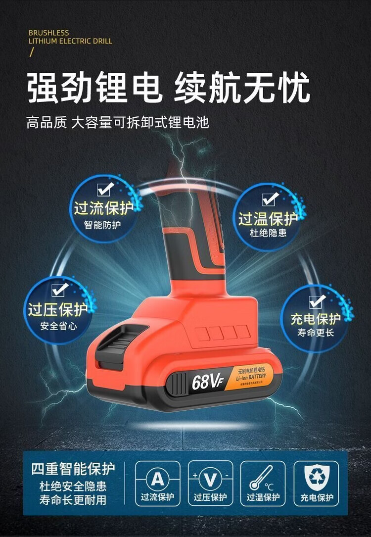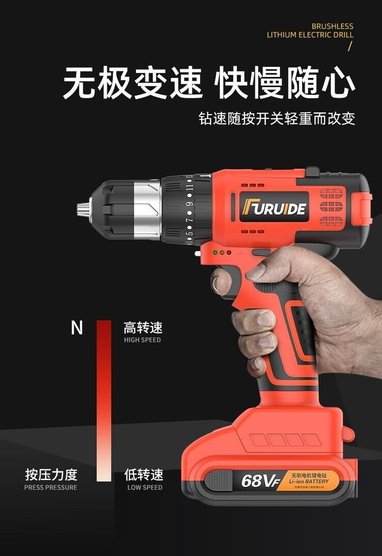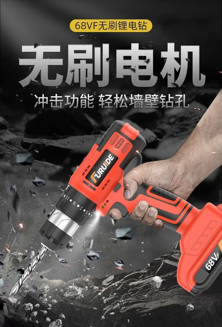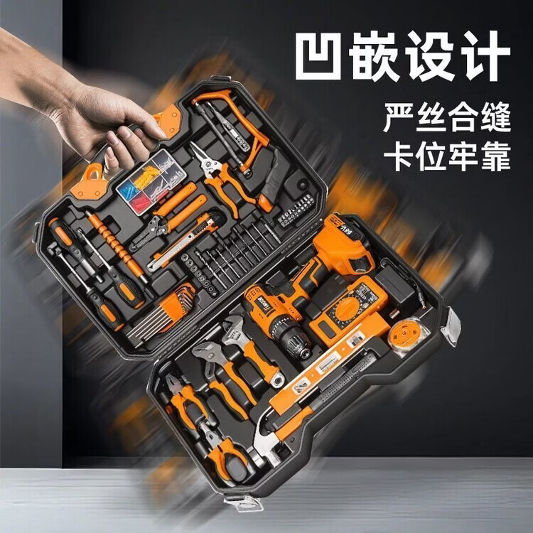 Yusenyi Tools Complete Set of Home Rechargeable Electric Drill Toolbox Complete Tool Set Hardware Multi-Function Electrician and Woodworking Repair Lucky Combination Set 68VF Brushless Impact Two Batteries and One Charge