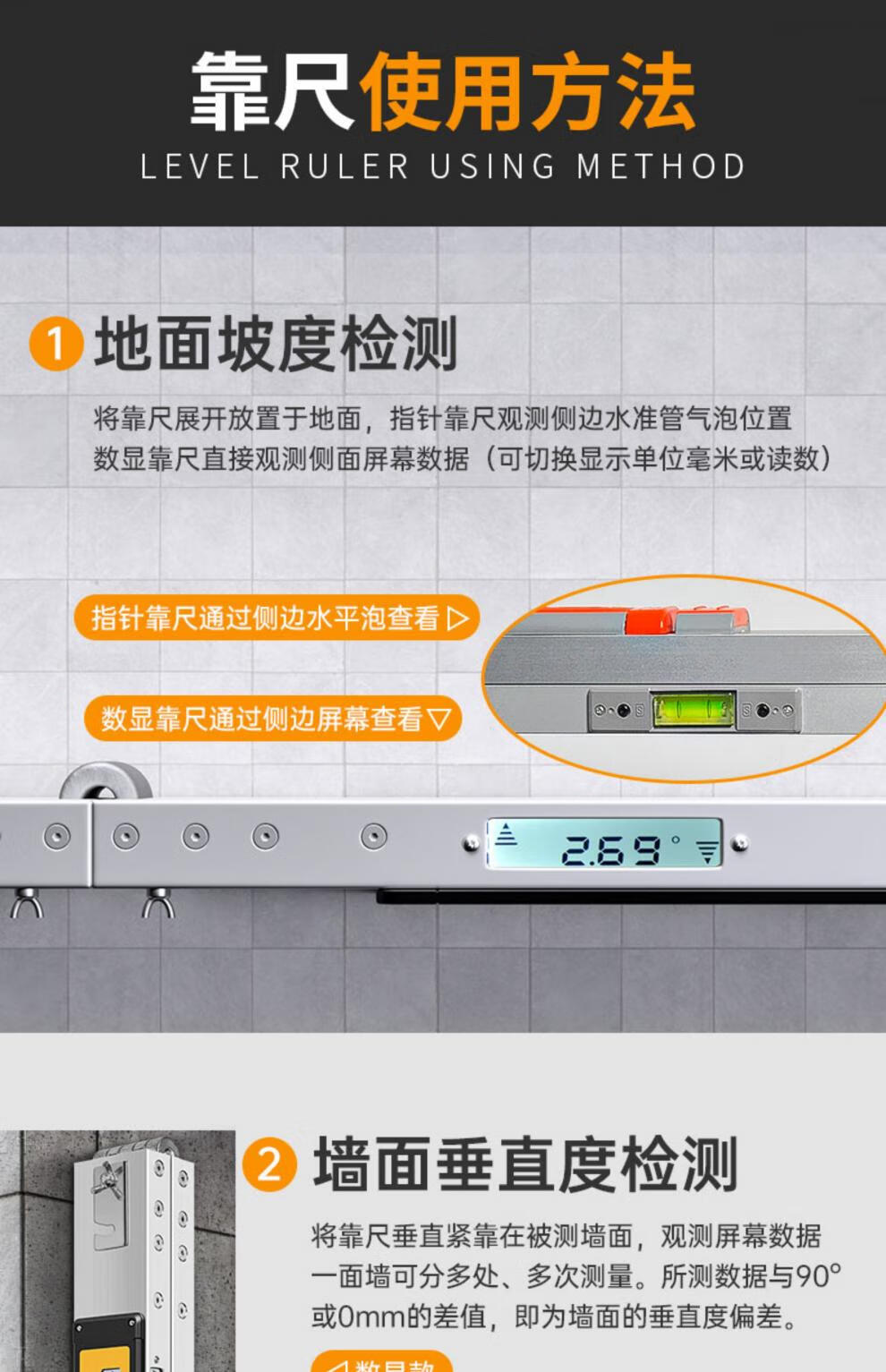 SMVP ruler 2 meters folding engineering detection vertical measurement digital display aluminum alloy home inspection tool set flatness leveling basic pointer model 2 meters ruler