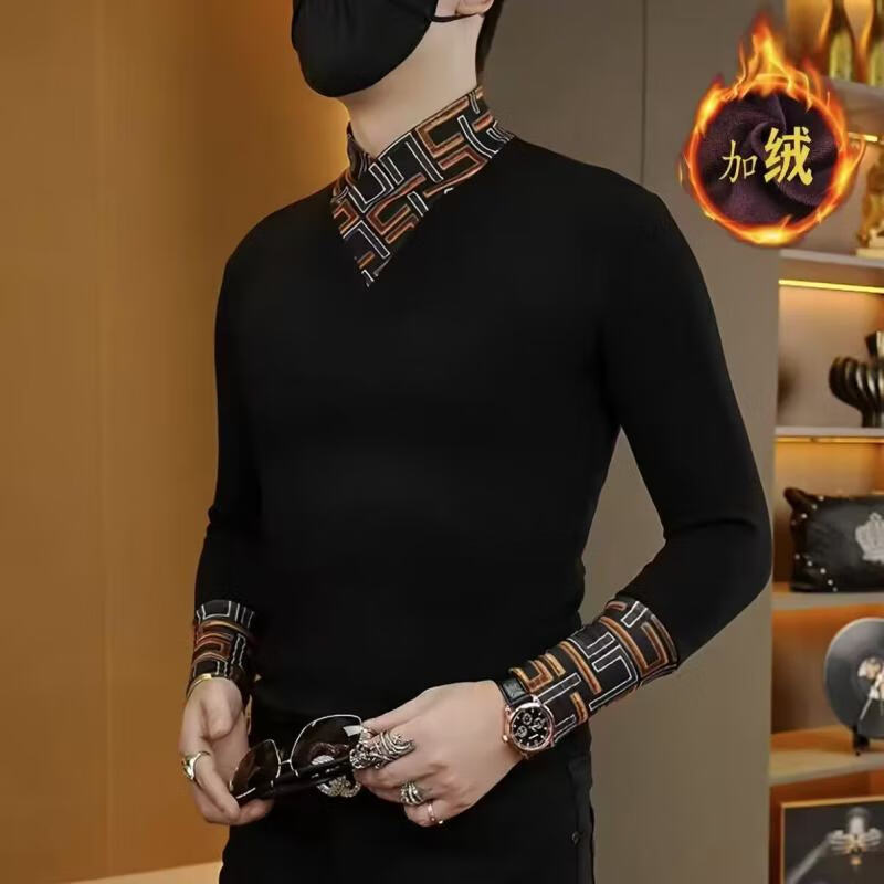 2025 autumn and winter plus velvet boutique popular casual original fashion stitching men's CGf personalized scarf collar sweatshirt jd black XL recommended 135-150Jin Jin equals 0.5 kg