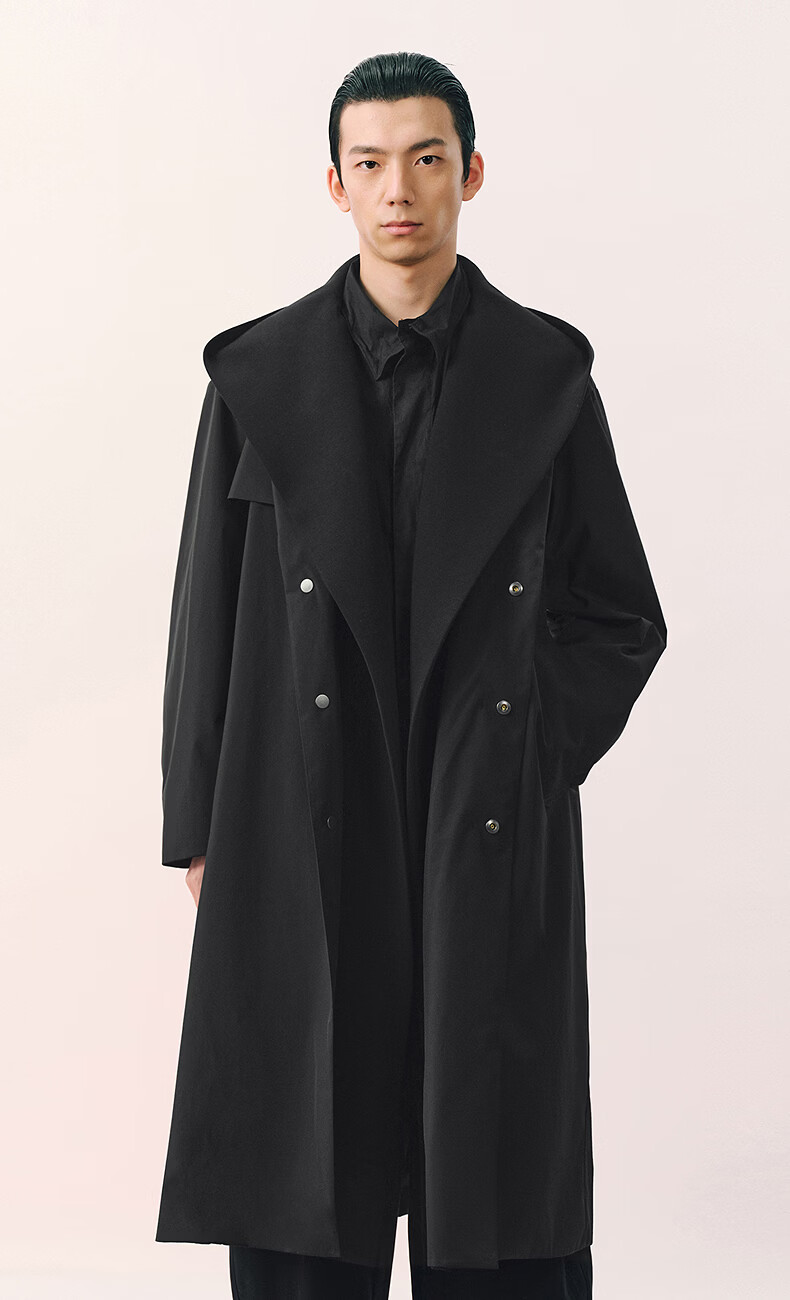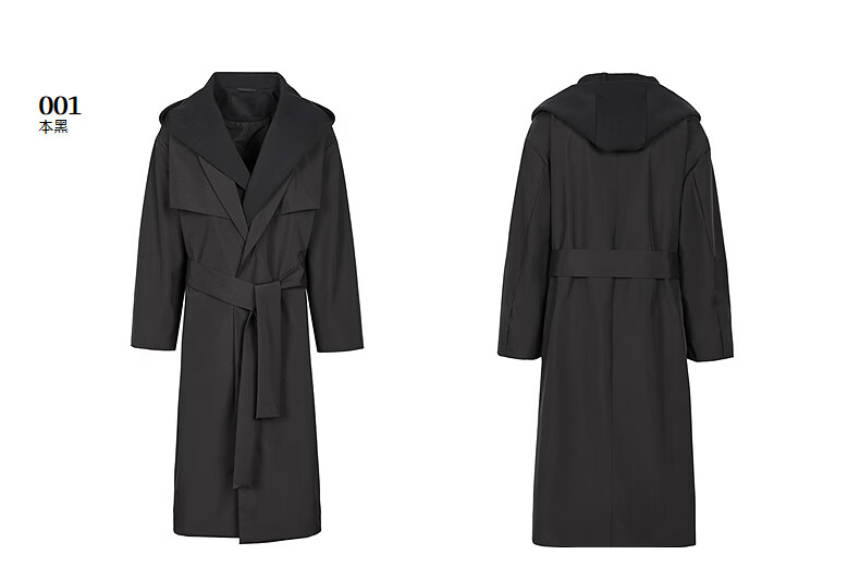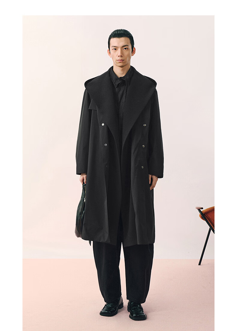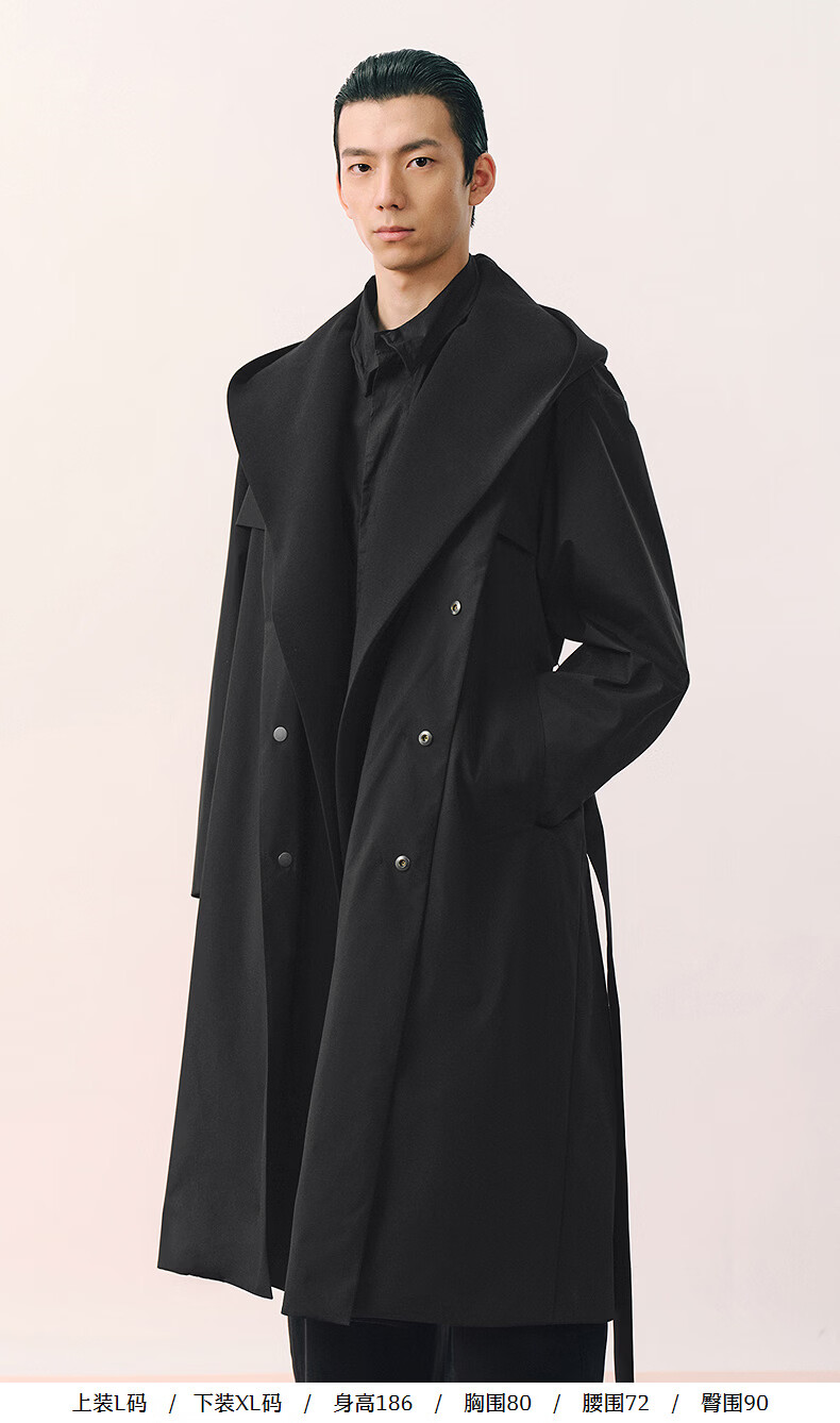 速写男装2026春新品风衣H型连帽oversize长款9Q1913680 001本黑 M